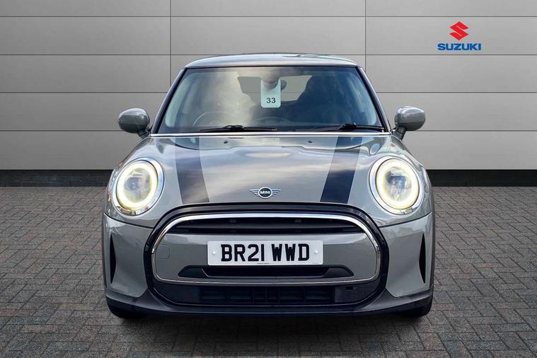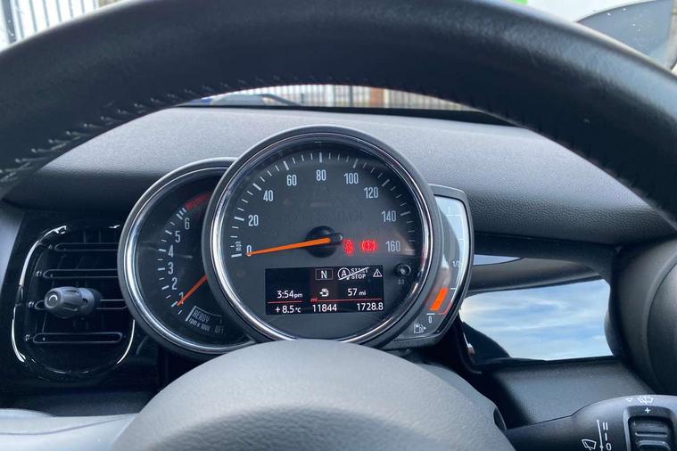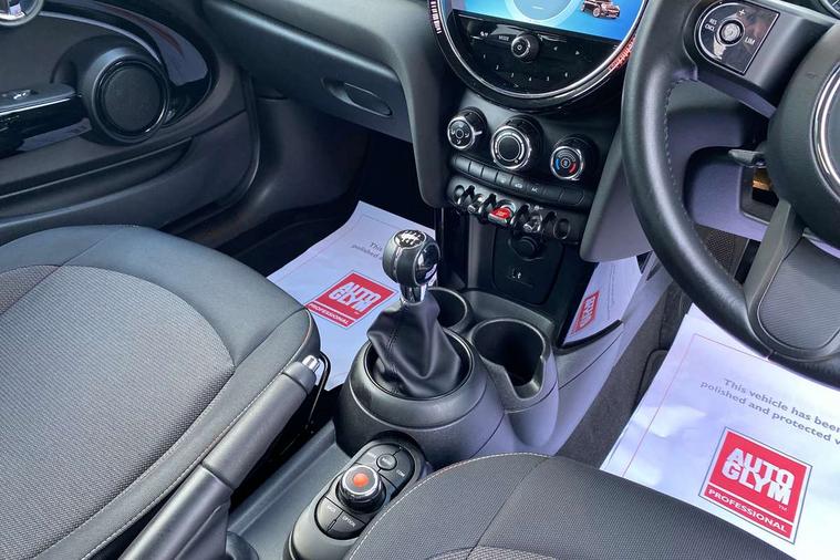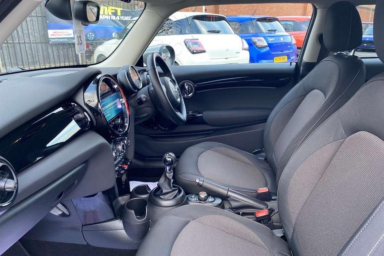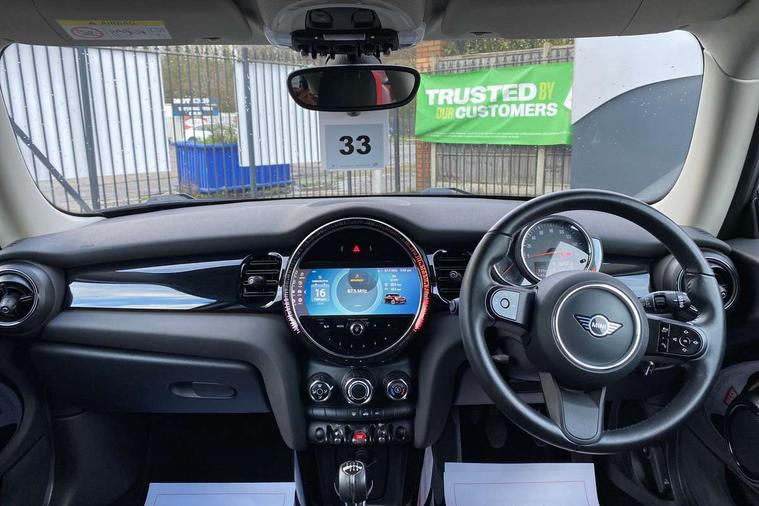 Automatic start/stop function with brake energy recuperation, Compatible mobile phone bluetooth with audio streaming, Cruise control with brake assist, Electro-mechanical speed dependant steering assistance, Flexible car sharing preparation, Instrument cluster, Mini E-call, MINI TeleServices, On board computer, Service interval indicator, 6 Speed manual transmission including gear change indicator display, Double Vanos system, Fully variable valve control, High precision injection, Performance Control, 4 speakers in front door trims and underneath front seats, 8.8" touchscreen with LED ring, FM tuner and DAB digital radio, Automatic headlight activation switch, Body colour fuel filler cap, Body colour roof and mirror caps, Chrome border high gloss black slats radiator grille, Dynamic brake lights, Electric front windows, Exhaust tailpipe, Heated rear window, Heated windscreen washer jets, LED headlight with closed ring and daytime driving lights, Metal door sill strips with MINI imprint, Rain sensor window wipers, Rear fog lights, Rear LED lights with union jack design, Rear window wiper, Side scuttle panel with integrated indicator, Sun/heat protection glass, White indicator lenses, 12V Accessory socket in centre console, 4 lashing eyes in luggage compartment, 60/40 split folding rear seat, Ambient lighting, Carbon black colour line - Knee roll and door armrest, Chrome interior highlights, Cupholders, Front and rear head restraints, Front and rear isofix with front passenger airbag deactivation, Glove compartment, Height and length steering column adjustment, Interior lighting with 12 different colours across the dashboard, underneath door bezel with illuminated laser-engraved design on central display, Leatherette gearshift lever and handbrake gaiters, LED reading lights, vanity mirror lights, front foot well light and spotlight on front seats, Manual air conditioning, Mechanical seat adjustment - forward/back & backrest for front seats and driver seat height adjust, Multifunction steering wheel, Passenger seat height adjuster, Satellite grey headlining including grab handles and clothes hooks, Sport leather steering wheel with speed limiter and audio/communication controls, Storage compartments in doors, Sunvisors with vanity mirrors, Velour floor mats, 3 point seatbelts on all four seats, 6 Airbags - front, side, head and seat belt tensioners, Anti-lock braking system (ABS), DSC - Dynamic Stability Control, Front and rear disc brakes, Single tone fanfare horn, Tyre pressure monitoring system, Alarm system with tilt sensor, monitoring doors, bonnet interior and tailgate, Electronic vehicle immobiliser, Start/stop toggle with keyless go, Piano black interior trim, Tool kit, Tyre repair kit,