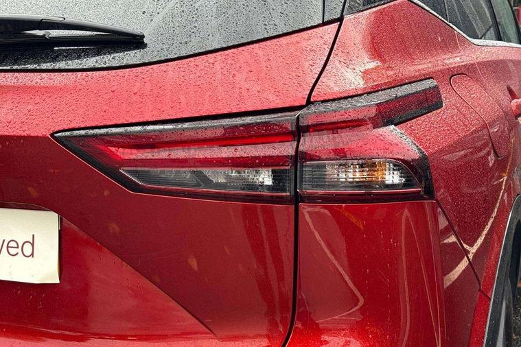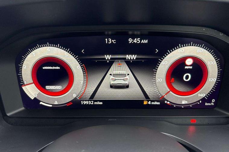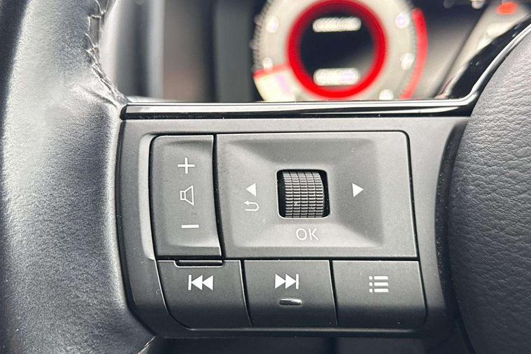 Android auto/Apple CarPlay (Wired), Blind spot warning, Drive modes (sport, normal, eco), Electric speed sensitive power steering, Emergency and breakdown call, Front and rear parking sensors, Full Digital 12.3" TFT Digital Combimeter, Google maps services - search, weather, 3D maps and Google street view, Idle stop/start system, Intelligent around view monitor, Intelligent Cruise control (ICC), Intelligent driver alert system, Intelligent forward collision warning, Intelligent lane intervention, Lane departure prevention, Lane departure warning system, Maximum speed limiter, Moving object detection, Nissan connect 12.3 inch touchscreen infotainment system, Nissan connect navigation, Push button starter, Rear cross traffic alert, Rear view camera, Remote control services - door locks, lights, horn and car locator, Telematics - notifications and connectivity services, TomTom live traffic services, Traffic sign recognition with legal speed adjustment, Trip computer, Virtual personal assistant and firmware over the air capability, Wireless apple carplay, 6 speakers, AM/FM audio system with DAB, Bluetooth audio streaming, Front USB connections (Type-A and Type-C), Rear USB charging only ports (Type-A and Type-C), 3rd brake light, Auto dimming rear view mirror, Auto rear wiper when reversing, Automatic hazard signal with emergency stop signal, Body colour mirror caps, Body coloured door handles, Bodyside mouldings, Chrome side window finisher, Door handle with button, Electric auto folding door mirrors, Electrically adjustable and heated door mirrors with LED turn indicator, Follow me home headlights, High beam assist, Intelligent auto headlights, LED daytime running lights, LED Headlights, LED rear lights, One touch front and rear electric windows with remote opening and closing, Partially body coloured bumpers, Privacy glass, Rear bumper with graphite insert, Rear reversing light (bulb lighting), Rear roof spoiler, Rear side wing doors, Rear styling plate, Shark fin antenna, Splash free rain sensing wipers, Super UV and infrared cut glass, Three blink turn signal, 12v power socket in dashboard and luggage, 2x Rear coat hooks, 3 bench rear seats in 2nd row, 3 rear headrests, 4 folding assist grip, 6 Luggage hooks - 4 on floor, 2 on side, 6-way manually adjustable driver's seat, 60/40 split folding rear seat bench, Ambient lighting around centre console, Centre console storage tray, Chrome interior door handles, Cloth monoform upholstery, Driver and front passenger sunvisors with illuminated vanity mirrors, Driver seat back pocket, Dual zone automatic climate control with pollen filter, Electrically adjustable lumbar support for driver, Front and rear door storage, Front centre console and armrest, Front cupholders x 2, Front door with bottle holders, Glovebox with light, Hard trunk cover, Height adjustable driver's seat, Height adjustable front headrests, Height adjustable passenger seat, Leather shift knob, Leather steering wheel, Luggage board system, Luggage space lighting, Manually adjustable passenger (slide recline + lifter), Multifunction steering wheel, Passenger seat back pocket, Rear armrest with 2 cupholders, Rear door bottle holders, Single front passenger seat, Soft PVC kneepad, Steering wheel switches, Sunglasses holder, Tilt/telescopic adjustable steering wheel, Two rear isofix child seat anchorage points with top tether, Welcome light and console tray ambient lighting, 3x3 point rear seatbelt pretensioners + load limiters, ABS with EBD and brake assist, Active brake limited slip, Auto hold function, Child locks on rear doors, Curtain and front side, far side airbags, Driver and passenger airbags, Driver, passenger and 2nd row rear seat belt reminder, Electronic parking brake, Front seatbelt pretensioners + load limiters, Height adjustable front seatbelts, Hill start assist, Intelligent blind spot intervention, Intelligent front emergency braking with pedestrian, cyclist recognition and junction assist, Intelligent rear automatic braking, Tyre pressure monitoring system, Vehicle dynamic control, Capless fuel filler, Engine immobiliser, Intelligent Key, Remote central door locking with deadlocking, Thatcham Cat.1 alarm, Interior instrumental panel B finisher, 18" Diamond cut alloy wheels, Tyre puncture repair kit,