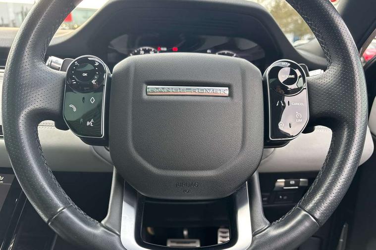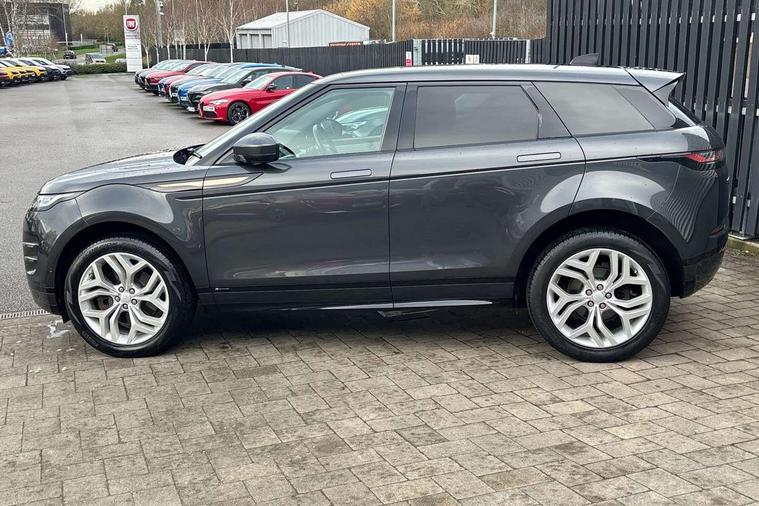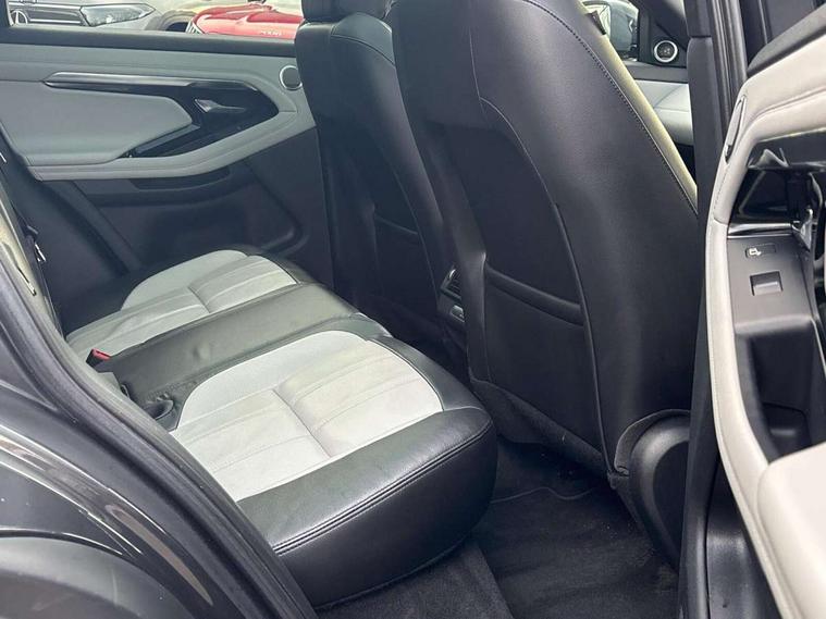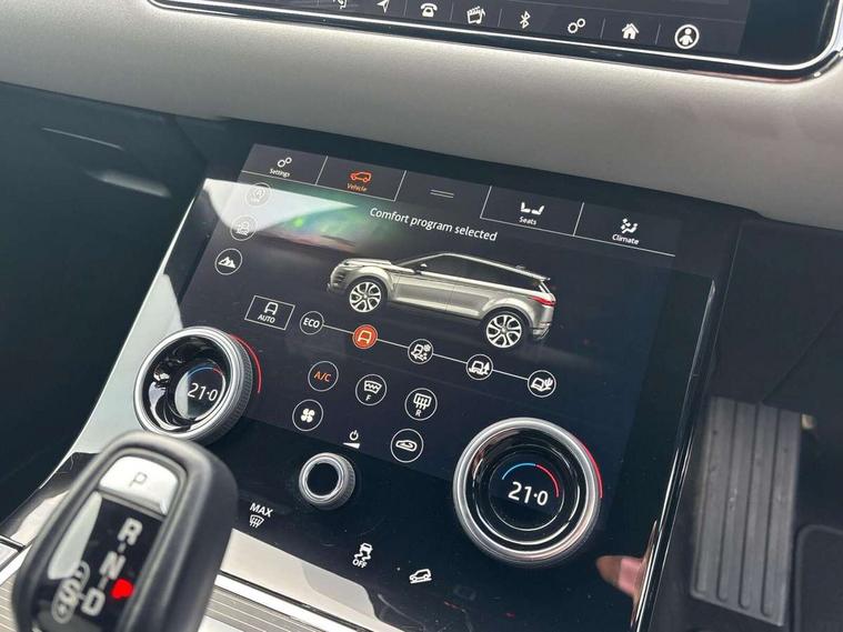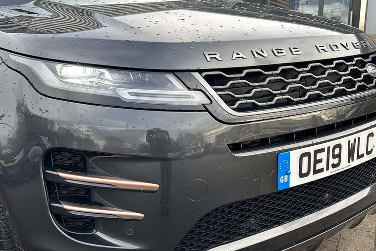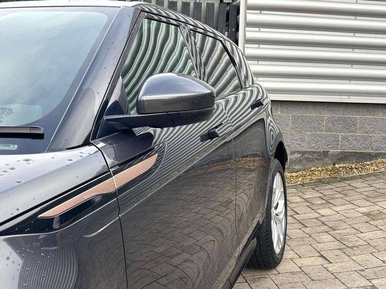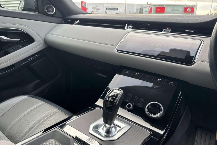 360 degree parking aid, Android Auto, Apple car play, Bluetooth connectivity, Brake pad wear indicator warning light, Clear exit monitor, Driver condition monitor, Duo touch pro, Electronic power assisted steering (EPAS), InControl remote, Interactive Driver display instrument cluster, Land Rover InControl apps, Lane keep assist, Navigation pro system, Park assist - Parallel, perpendicular and parking exit, Pro services and wifi hotspot, Push button starter, Rear traffic monitor, Smart settings, Traffic sign recognition with adaptive speed limiter, Voice control system, All terrain progress control, Efficient Driveline, Passive suspension, Terrain Response 2 Auto, Digital Audio Broadcast radio-DAB, Steering wheel mounted controls, Automatic headlight levelling, Electric windows with one touch open/close and anti trap, Evoque and R-Dynamic badge, Flush deployable exterior door handles, Heated rear window with timer, Heated washer jets, Heated windscreen, Power fold, auto-dimming, heated door mirrors with memory and approach lights, Rain sensing windscreen wipers, Rear fog lights, Shadow atlas bonnet and tailgate script, Tailgate spoiler, 40:20:40 split folding rear seats, Black gearshift paddles, Bright metal pedals, Isofix system on outer rear seats, Overhead lighting console, Overhead stowage for sunglasses, Passive front head restraints, Rear air vents, Rear centre headrest, Sunvisors with illuminated vanity mirrors, Twin front cupholders with cover, Twin sliding front centre armrest, Two zone climate control, Anti-lock braking system (ABS), Customer configurable autolock, DSC - Dynamic Stability Control, Electronic brake force distribution, Electronic parking brake, Electronic traction control, Front and rear seatbelt reminder, Hill descent control, Hill launch assist, Low traction launch, Power operated child locks, Roll stability control, Six airbags - Driver and passenger airbags/driver knee airbag/front side airbag and curtain airbags, Torque vectoring brake, Tyre pressure monitoring system, Alarm, Immobiliser, Intrusion sensor, Locking wheel nuts,