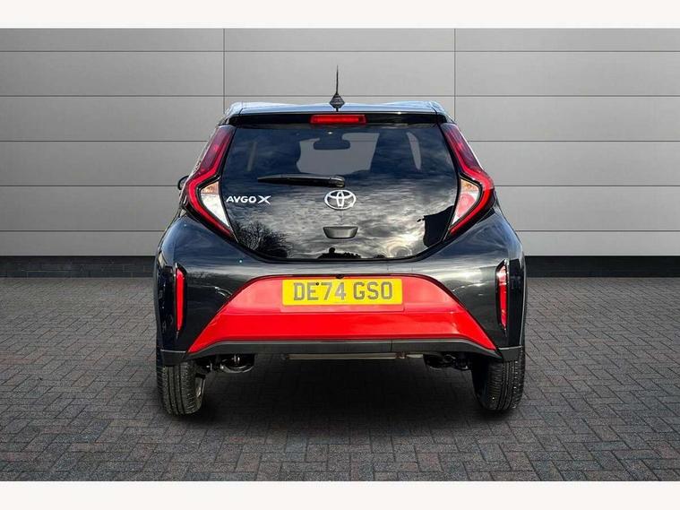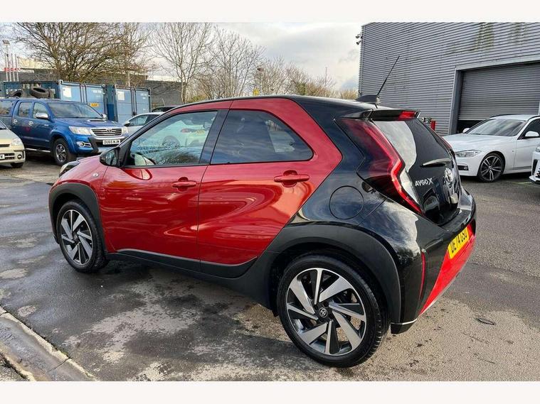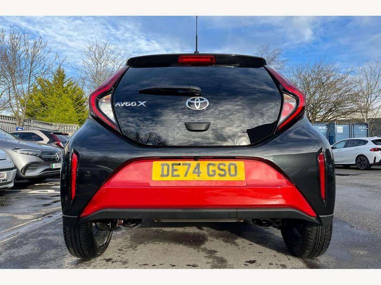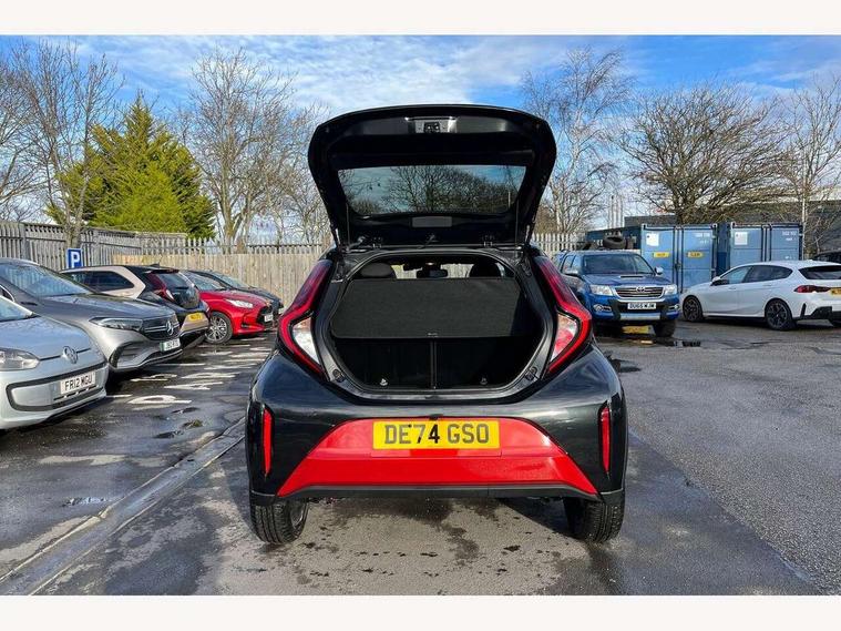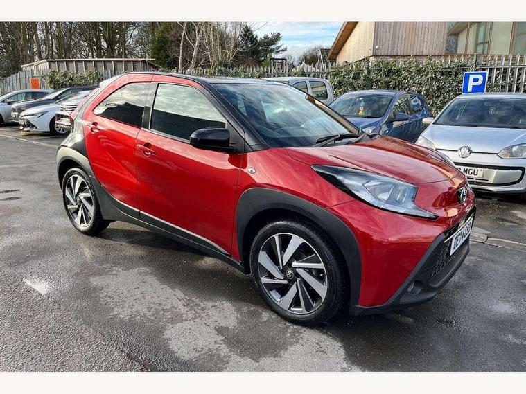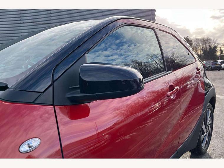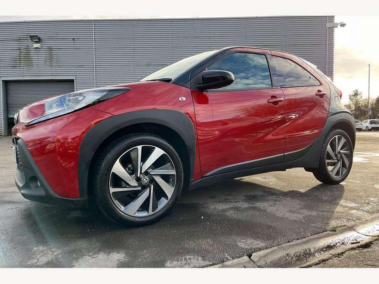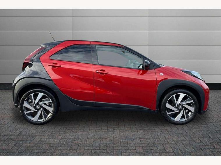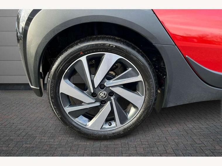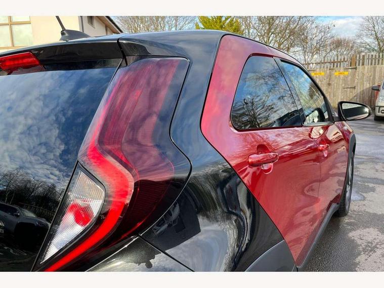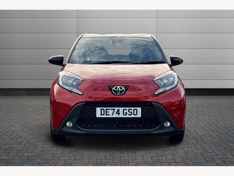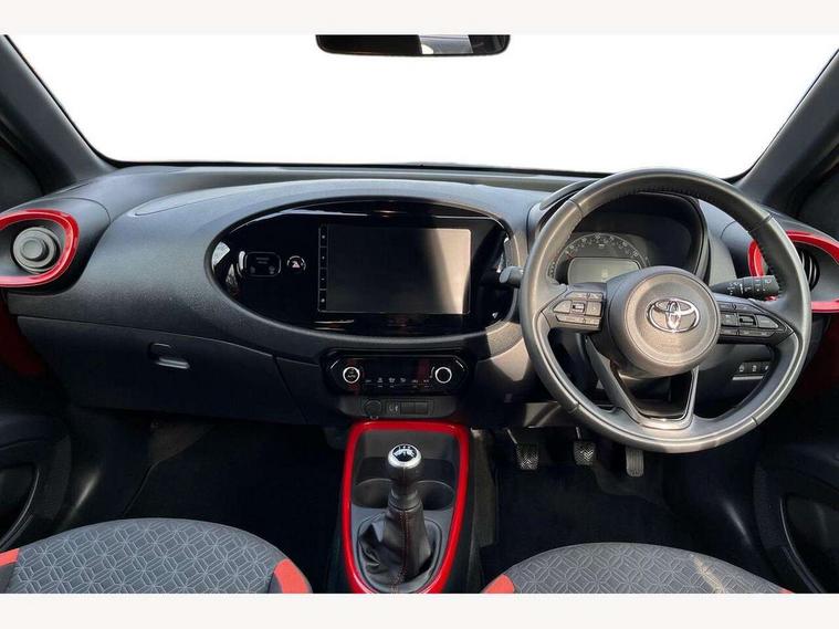 4.2" TFT colour screen, Adjustable speed limiter, Analogue speedometer, Bluetooth connectivity, Digital tachograph, Driver attention alert system, eCall emergency call system, Electric power steering, Intersection turn assist, Key reminder warning, Noise reduction kit, Pre collision system with emergency steering assist, Reversing camera with static guide lines, Smart phone integration with Apple car play/Android Auto, Speed limit display, Start and stop, Vehicle Stability Control (VSC), 4 speakers, 9" HD multimedia display touch screen with Toyota smart connect, DAB digital audio broadcast, USB connector, Auto headlights, Auto wipers, Automatic headlights cut-off, Bicycle towing hook, Black contrast roof, Black side protection mouldings, Black wheel arch mouldings, Body colour door handles, Body coloured front bumper, Boot door scuff plate, Eclipse black rear bumper, Electric heated door mirrors, Follow me home headlights, Front fog lights, Front power windows, Gloss black door mirrors, Gloss black upper front grille, Headlight cut-off reminder, LED daytime running lights, LED front light guide, LED High mounted stop lamp, Manual day/night rear view mirror, Manual headlight levelling, Pagoda roof, Power adjustable door mirrors, Power back door, Privacy glass, Projector halogen headlights, Rain sensor, Rear combination lights LED bulb type, Rear side wing doors, Rear windscreen defogger, Rear windscreen wiper, Short antenna, Variable intermittent windscreen wipers, 12v power outlet - front, 2 seat bench in 2nd row, 3 spoke leather steering wheel, 50/50 split folding rear seat, Adhesive roof headlining, Adjustable speed limiter switch on steering wheel, Audio and telephone switches on steering wheel, Auto air conditioning, Black insert on steering wheel, Black roof lining, Boot light, Centre room light, Chrome interior door handles, Chrome surround on air conditioning buttons, Clean air filter, Console box storage in body color, Fabric upholstery, Floor mats, Front and rear cup holders, Front head rest deco art, Front head restraints, Height adjustable driver seat, Intelligent adaptive cruise control switch on steering wheel, ISOFIX child restraint system on rear seats, Lane departure alert switch on steering wheel, Leather gearshift knob, Manual tilt steering wheel, Manually reclining and sliding driver seat, Manually reclining and sliding front passenger seat, Multimedia switches on steering wheel, Pollen filter, Rear door pockets, Rear head restraints, Satin silver insert on gear shift knob, Single compartment glovebox with lights, Single front passenger seat, Soft tonneau cover, Sun visors with mirror on driver and passenger side, Voice recognition switch on steering wheel, Toyota safety sense pack - Aygo X, Anti lock braking system + Electronic brake force distribution, Child safety door lock, Emergency brake light signal (EBS), Hill start assist control (HAC), Passenger airbag on/off switch, Seat belt reminder for front and rear seats, Supplement restraints system (SRS) - 6 airbags, Traction control, Tyre pressure warning system, Immobiliser, Remote power door locks, Black wheel centre caps, Tyre repair kit,