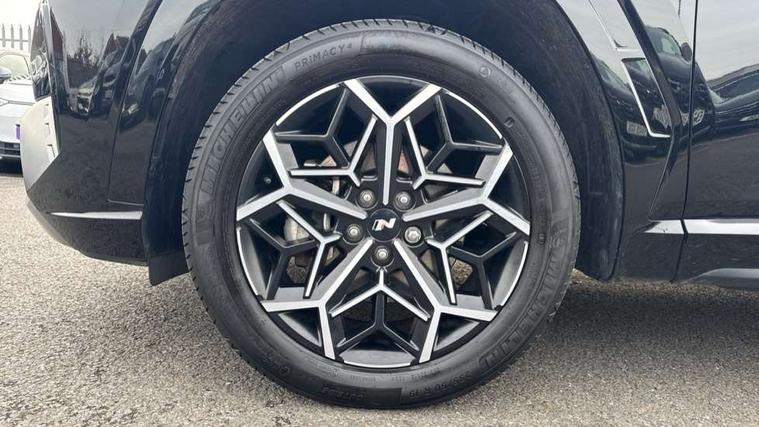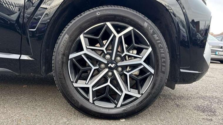 10.25" super vision instrument cluster, 10.25" touchscreen satellite navigation with mapcare and live services, Apple car play/Android Auto, Bluetooth system, Cruise control, Digital clock, Drive mode selector, Driver attention warning, E-call, Emergency stop signalling system, Forward Collision Avoidance Assist (FCA) - Car, Pedestrian and Cycle, Front and rear parking sensors, Intelligent speed limit assist, Lane follow assist, Lane keep assist, PAS, Rev counter, Reversing camera, Tailgate open warning light, Trip computer, Trip odometer, Voice recognition, Water temperature gauge, Windscreen washer fluid sensor and warning indicator, Wireless phone charging pad, Shift by Wire Gear Selector (SBW), 2 front and 2 rear speakers with 2 tweeters, DAB Digital radio, Steering wheel mounted audio/phone controls, USB connections in front and rear, Adjustable intermittent front windscreen wipers with aero wiper blade, Auto dimming rear view mirror, Automatic defog system, Automatic headlights with dusk sensor, Automatic windscreen wipers with rain sensor, Black headlamp bezels, Body colour bumpers, Body colour door mirrors with integrated indicators, Body colour exterior door handles, Body coloured wheel arches, Dark chrome effect radiator grille, Electrically adjustable, heated and power folding door mirrors, Follow me home headlights, Front and rear electric windows with anti-trap mechanism and one touch control, Front fog lights, Gloss black door frame moulding, High beam assist, High level third brake light, LED daytime running lights, LED rear lights, MFR - LED headlight with static bending light, N Line body coloured side mouldings, N Line design front grille, N Line Exclusive front and rear bumpers, N Line rear spoiler with fins, Positioning Lights - LED, Privacy glass - Rear windows and tailgate, Rear side wing doors, Rear wash/wipe with intermittent wipe setting, Roof rails, Silver front and rear skid plate, Sports twin tip exhaust and diffuser, Tinted glass with windscreen shade band, Trailer stability assist, 12V power outlets in front console and luggage compartment, 3 seat bench in 2nd row, 40/20/40 split folding rear seat, Adjustable head restraints (Up and down), Alloy pedals, Ambient lighting, Black headliner, Cupholders in rear armrest, Door courtesy lights, Driver and passenger sunvisors with illuminated LED vanity mirrors, Driver's seat electric lumbar support, Driver's seat manual height adjust, Dual zone climate control, Front and rear door pockets, Front armrest with storage box, Front door pocket bottle holders, Front passenger seat lumbar adjustment, Heated front seats, Height/reach adjustable steering column, Illuminated/air conditioned glove compartment, ISOFIX child seat anchorage points attached on outer rear seats, Leather wrapped steering wheel, Leather/suede upholstery, Luggage area underfloor compartment, Luggage compartment lighting, Luggage cover, Luggage hooks, Manual height adjustable front passenger seat, Map and reading lights, N Line logo on steering wheel, Reclining rear seats, Retractable load cover, Single front passenger seat, Sunglasses holder, 3x3 point rear seatbelts, Active bonnet, Airbag - Front, front side, curtain and centre front airbags, Anti-lock brake system (ABS), Brake assist function, Childproof rear door locks, Curtain airbag roll over sensor, Downhill brake control, Electric parking brake with auto hold function, Electronic stability control, Front and rear seatbelt reminder, Front passenger airbag deactivation switch, Front seatbelt pretensioners, Hill start assist control (HAC), Multi-Collision braking, Outer rear seatbelt height adjustment, Seatbelt height adjustment for front seats, Traction control, Tyre pressure monitoring system with individual tyre pressure display - TPMS, Vehicle stability management, Alarm, Deadlocks, Immobiliser, Locking wheel nuts, Remote control central locking, Smart key with keyless entry and engine start/stop button, Speed sensitive auto door locking, 19" Alloy wheels, Tyre repair kit,