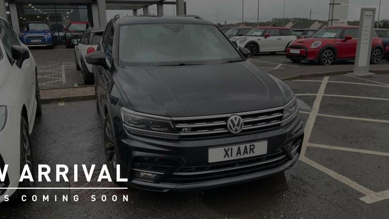Active information display, Adaptive cruise control, App-Connect, Area view with park assist steering and front and rear parking sensors, Bluetooth phone integration system, Car-Net Security and Service, Distance control assist, Driver profile selection, Fatigue detection system, Front assist, radar sensor controlled distance monitor, city emergency braking + predictive pedestrian protection, Fully electric tailgate + keyless entry and start, Instrument cluster, Lane assist, Low washer fluid warning light, Multifunction colour display, Outside temperature display, Progressive power assisted steering, Remote tailgate release, Service interval indicator, Speed limiter, Start/Stop function, Warning lights, Diesel particulate filter, Misfuel prevention device for diesel engine, XDS electronic differential lock, 2x USB sockets in front, 4 X 20 watt output, DAB Digital radio, MP3 compatible single CD player, SD card slot, Simultaneous pairing of 2 compatible mobile devices, SMS functionality - read, compose and send SMS messages using touch-screen display, Title and cover art display, 3D effect cherry red LED rear tail lights, Auto dimming interior mirror, Automatic activation of hazard warning lights, Body colour door handles, Body colour door mirrors, Body colour rear spoiler, Body colour side skirt, Body coloured bumpers, Chrome side window surrounds, Chrome trimmed radiator grille, Coming/leaving home lighting function, Dusk sensor + auto driving lights, Electric folding door mirrors, Electric heated + adjustable door mirrors, Electric panoramic sunroof with sunblind, Front air intake with chrome strip, Front and rear electric windows, Halogen clear headlights with integrated indicators and range adjustable, Heated rear window, Heated windscreen washer jets, High level 3rd brake light, LED headlights with dynamic light assist daytime running lights and cornering front fog lights, LED rear number plate lights, Piano black rear diffuser, R Line body kit, R Line side sills, Rain sensor windscreen wipers, Rear windscreen washer and wiper with interval delay, Side skirts and rear bumper with chrome insert, Silver roof rails, Silver under body guard, Tinted windows (B pillar backwards), Trailer Stability Programme, Windscreen wipers/ intermittent wipe + 4 position delay, 12V Accessory socket in centre console, 3 rear headrests, 3 zone climate control, 4 load lashing points, 40:20:40 split folding rear seats, Bag hook in luggage compartment, Black headlining, Driver + front passenger lumbar support, Foldable passenger seatback, Front + rear carpet mats, Front centre armrest with 12v socket, Front centre armrest with storage + rear 2 air vents + cupholders, Front seat back storage pockets, Front seatback folding tables, Height/reach adjust steering wheel, Illuminated driver/passenger vanity mirrors, Illuminated scuff plates, Instrument lighting white adjustable panel illumination, Interior light with delay, Isofix Preparation 2 Rear child seats, Leather gear knob, Leather multifunction steering wheel, Load through provision with 2 cupholders when folded, Lockable cooled glovebox, Luggage compartment lighting, Luggage compartment side storage, Map pockets on front seats, Passenger seat height adjuster, Rear cupholders, Removable luggage cover, Sliding/reclining rear seats, Stainless steel pedals, Storage compartment in driver's door, Storage compartment in passenger's door, Storage compartment in rear doors, Storage tray on dashboard, Sunglasses storage, Unique R Line door sill protectors, Variable boot floor, Ambient lighting pack - Tiguan, 3 rear 3 point seatbelts, ABS+EBD+Brake assist, Active bonnet, Active pedestrian safety system, Curtain airbags, Driver/Front Passenger airbags, Driver/Passenger whiplash optimised head restraints, Drivers knee airbag, DTC - Drag torque control, Electronic parking brake with auto hold, ESP with EDL + ASR, First aid kit, Front side airbags, Front ventilated disc brakes and rear disc brakes, Head airbag system, Height adjustable front 3 point seatbelts + pretensioners, Hill hold control, Passenger airbag deactivate switch, Passenger knee airbag, Pre crash system, Rear side airbags, Rigid safety cell with front and rear crumple zones, Seatbelt warning lamp and buzzer, Two tone horn, Warning triangle, Alarm with interior protection, Electronic engine immobiliser, Remote central locking with 2 remote folding keys, Aluminium decorative inserts, Chrome door trim inserts, 20" Suzuka alloy wheels + anti theft wheel bolts, Steel space saver spare wheel,