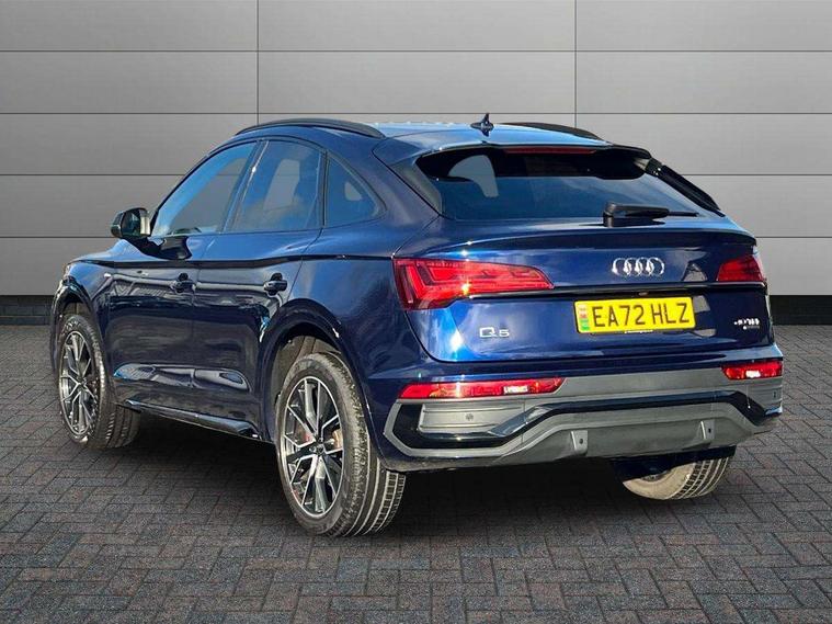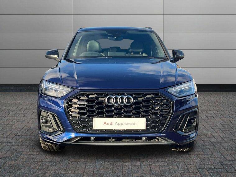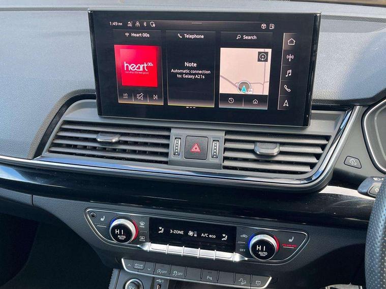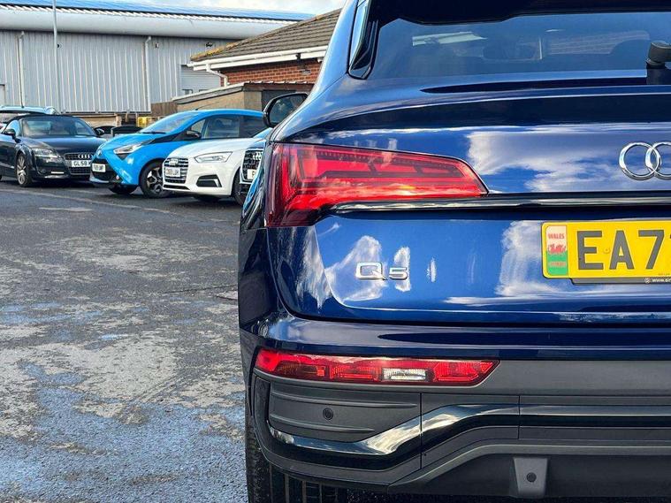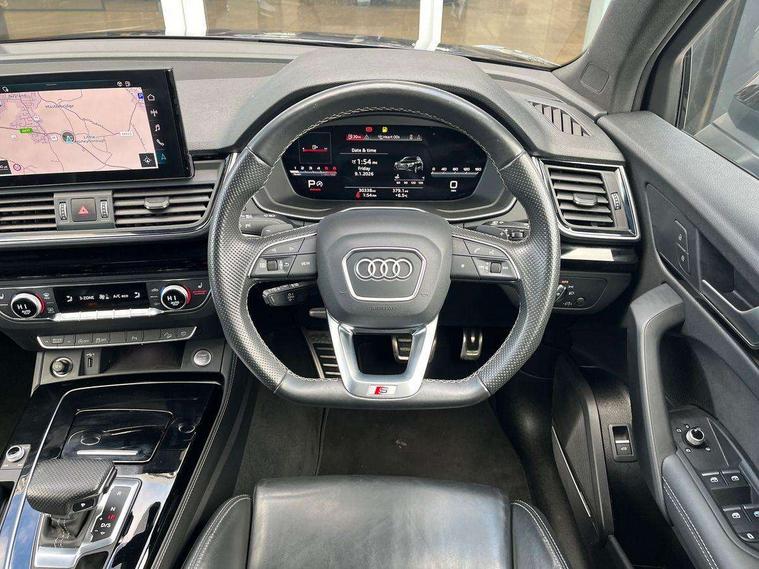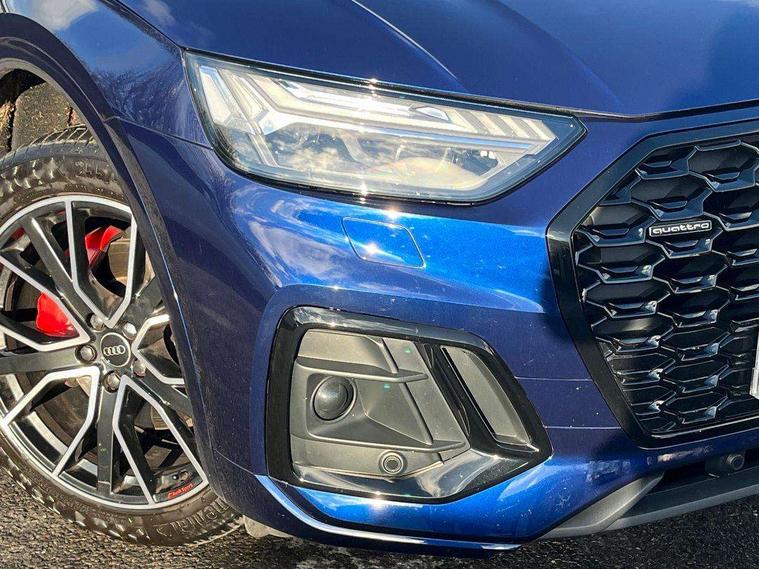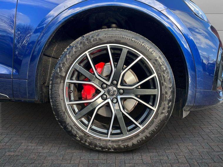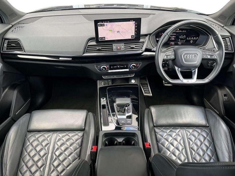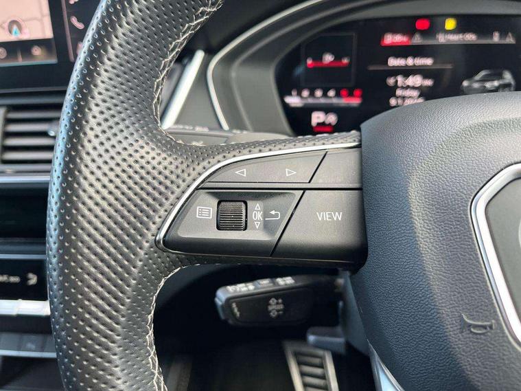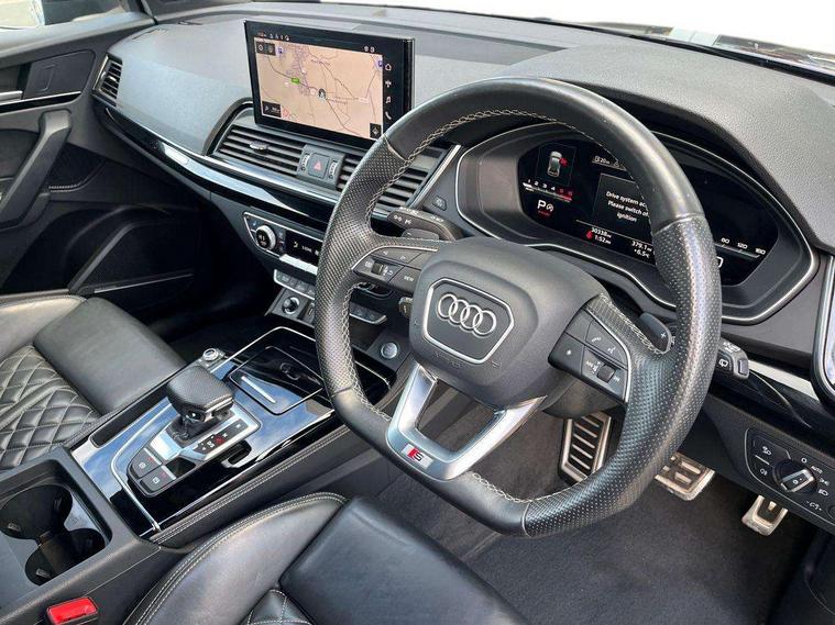 Audi connect safety and service (e-call), Audi connect with Amazon Alexa Integration, Audi drive select, Audi virtual cockpit plus with 12.3" screen and three different layout designs, Audi wireless smartphone interface, Automatic start-stop system with coasting functionality and efficiency programme, Bluetooth interface, Electro - mechanical power assisted steering, MMI navigation plus with 10.1" touch screen, Power tailgate, Reversing camera, Service interval indicator, Voice control system with Audi hotword activation "Hey Audi", Diesel particulate filter, Quattro on demand, S line sports suspension, DAB Digital radio, Acoustic windscreen, Audi beam with Audi rings logo, Audi matrix LED headlights with dynamic front and rear indicators, Audi rings at front and rear in black, Audi rings decal on rear doors, Auto dimming door mirrors, Auto dimming rear view mirror, Automatic headlight adjustment, Automatic headlights and windscreen wipers, Black roof rails, Body colour underbody protection, Chrome plated exhaust trims, Daytime running lights, Door sills in Selenite silver, Electric adjustable/heated/folding door mirrors, Front air inlet surrounds in aluminium, Front and rear electric windows, Headlight washers, High gloss black B pillar trims and triangular rear door trim, High level LED brake light, Rear chrome trim strip below lights, Rear privacy glass and rear side windows, Rear side wing doors, Rear spoiler, Rear wiper, Roof bars, Without model and engine badging at rear, 2 x USB charging port with aux input socket, 3 rear headrests, 4 way electric lumbar support for driver and front passenger, 40:20:40 split folding 3 rear bench seat in 2nd row with rear centre armrest, Black cloth headlining, Comfort front centre armrest, Contrast stitching on seats, steering wheel and gear lever gaiter, Deluxe 3 zone electronic climate control, Electrically adjustable front seats, Fine Nappa leather upholstery with diamond pattern contrast stitching + front sport seats with S embossed logo, Front head restraints, Front/rear floor mats, Gear lever in black leather, Heated front seats, Height/reach adjustable steering column, Illuminated door sill trims with S logo, ISOFIX child seat mounting and top tether, Rear seat bench plus, Removable luggage compartment floor, Single front passenger seat, Stainless steel pedals, Sunvisors with vanity mirrors, Trunk roller cover, Artificial leather pack - Q5, Black styling package - Q5 Edition 1, Extended LED Interior multi coloured Lighting Pack - Q5, 3 point seatbelts on all seats, 6 airbags - Driver, front passenger, curtain and side airbags, Electrically operated child locks on rear doors, Electromechanical parking brake, Electronic stabilisation control including ABS, ASR and EDL, Front and rear brake calipers painted in red, Front passenger airbag deactivation, Hill descent control, Hill hold assist, Multi collision brake assist, Pop-up bonnet for pedestrian protection, Pre sense city, Seat belt force limiter, Seatbelt monitoring, Tyre pressure warning, Warning triangle and first aid kit, Anti theft alarm, Anti-theft wheel bolts, Keyless Go access/ignition system, Remote central locking, Piano black finish inlay,