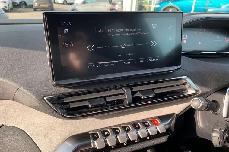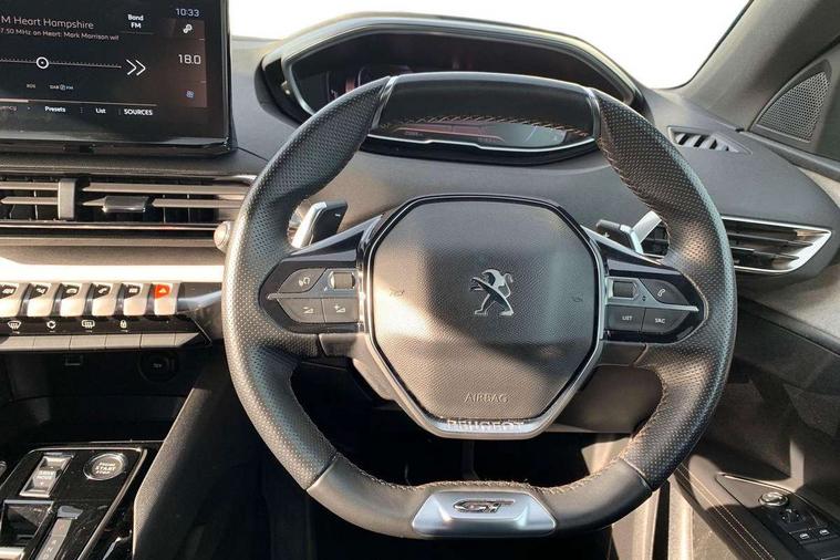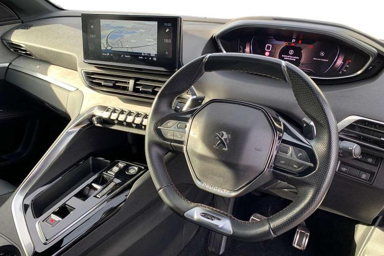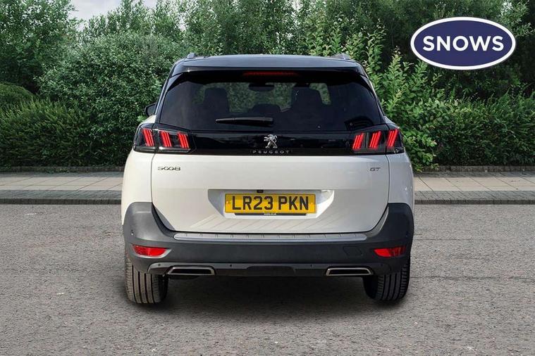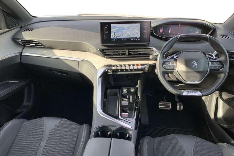 3D connected navigation with 10" HD touchscreen + voice recognition system, Apple car play and Android auto, Bluetooth telephone connection, Drive mode selector (Eco, Normal and Power), Driving timer alert system, Emergency services call system, Extended traffic sign recognition, Exterior temperature indicator with ice warning, Front and rear parking sensors, Lane departure warning system, Multi function trip computer, Peugeot i-cockpit with configurable 12.3" headup digital instrumental panel and compact sports steering wheel, Rear passenger USB charging sockets (x2) (type A), Speed limit recognition and recommendation, Dynamic stability control and electronic anti-skid system, Bi Tuner radio including DAB, USB socket, Aluminium front door sills, Auto self levelling headlights, Automatic activation of hazard warning lights, Black diamond door mirror covers, Black diamond roof, Body colour door handles, Body protectors in black, Dark tinted rear side and tailgate windows, Dynamic frameless design in front radiator grille, Electric adjustable heated door mirrors, Front windscreen wiper with magic wash cleaning system, Full LED headlights with fog mode, Gloss black B and C pillar and aerodynamic deflector trim, Gloss black rear cluster connecting strip, Gloss black windscreen trim, GT emblem (front wings and tailgate), Headlights left on audible warning, Heated rear windscreen with integrated antenna, LED daytime running lights in fang style, LED front indicator, LED rear number plate lighting, LED side indicator lights integrated into door mirrors, LED third brake light, One touch electric front/rear windows with pinch protection, Power folding door mirrors, Rear LED PEUGEOT signature Claw Effect lights (with daylight function) with clear lens and scrolling LED direction indicators, Rear side wing doors, Rear windscreen wiper with auto activation when reversing, Stainless steel door sill scuff plates, Twin exhaust effect trim, 2 cupholders in front centre console, 2 rear reading spotlights, 2 separate seats in 3rd row, 2nd row window blinds, 3 bench rear seats in 2nd row, 3 x 12V power sockets, 4 Grab handles retractable and damped, Aikinite stitching in armrest, gear lever and dashboard facia, Aluminium pedals, Automatic dual zone climate control, Aviation tables on seat back of first row, Blue ambient lighting for connecting zone, Blue ambient lighting for front cupholders, Blue ambient lighting to front door panels, Blue ambient lighting to head up instrument panel, Brumeo fabric trimmed door armrests, Central front armrest with butterfly wing opening and illuminated storage compartment, Electric power steering with reach and rake adjustable steering column, Flocked front door pocket interior with blue ambient lighting, Flocked glovebox interior, Fold flat front passenger seat with picnic table, Footwell lighting, Front interior light with 2 reading spotlights and rear interior light with timer, Front passenger seat manual adjustment (longitudinal and back rest angle), Height adjustable passenger seat, Illuminated glove box, central storage area and load area, Illuminated vanity mirror, Isofix child seat fittings x 3 in the second row, LED interior lighting, Map pocket on front seat backs, Mistral floor mats with Aikinite contrast stitching, Mistral full grain perforated leather steering wheel with aikinite stitch detail and satin chrome 'GT' emblem, Rear ventilation system, Retractable parcel shelf, Roof lining and windscreen pillars in Mistral black, Satin chrome digital instrument panel and touchscreen trim, Satin chrome front door panel recess trim, Satin chrome interior door handles, Satin chrome scorpion's tail and toggle switch trim, Seatbelt not fastened audible and visual alert for front seats, Seatbelt unfastened on the move audible and visual alert for front and rear seats, Second row underfloor storage, Single front passenger seat, Third row seats (can be stored under bootfloor or removed completely), Twin rear coat hooks, Drive assist plus package - 5008, Visibility pack - 5008 GT, ABS + EBD + EBA, Adaptive driver and front passenger airbags including passenger airbag deactivation function, Electric child locking functionality on rear windows and doors, Electronic parking brake + Hill assist, ESP and ASR traction control with deactivation switch, Five 3 point rear safety belts, Front and rear curtain airbags, Front optimised safety headrests and rear retractable headrests (x3), height adjustable, Front side airbags, Front three point retractable seatbelts height adjustable with pre tensioners and force limiters, Front ventilated disc brakes, Rear disc brakes, Rear three-point retractable seatbelts (x3) with pre-tensioners and force limiters in the outer rear seats, Single tone horn, Automatic door locking when moving off, Electronic code immobiliser, Perimetric and volumetric alarm with lift and tilt sensor, Peugeot Open and Go System, Remote control central locking with two plip keys,