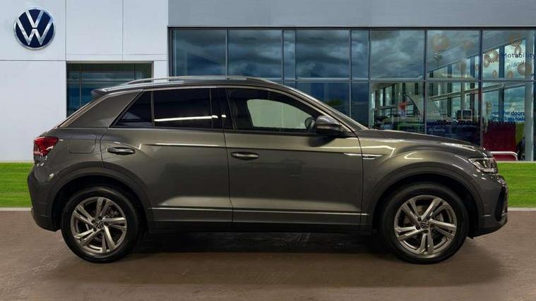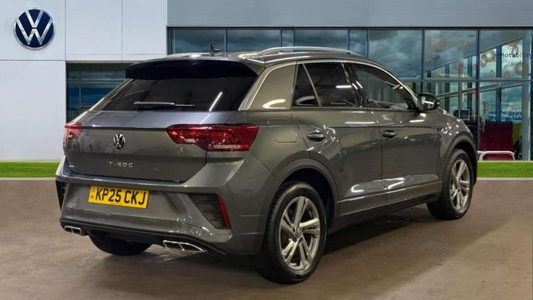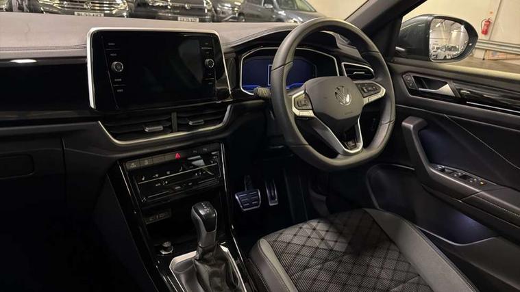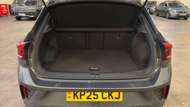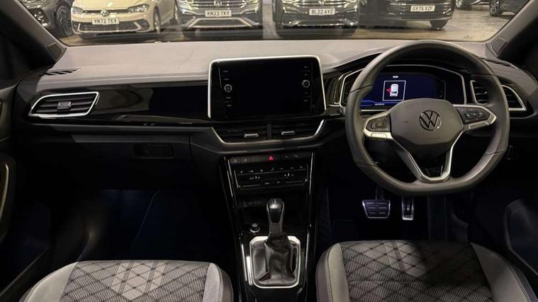 10.25" Digital cockpit pro, Advanced driver attention and drowsiness monitor, Emergency call service, Lane keeping system Lane Assist, Mobile phone interface, Modified key software - reduce switch off time for key status change to Long no motion, Online services, Park assist including front and rear parking sensors, Service interval indicator, Tailgate/trunk lid release from outside, Think blue trainer driver tips and journey analysis, Warning sound and light for front seatbelts unfastened, Wireless app connect, Battery regeneration during braking, Start/stop function with battery regeneration, DAB Digital radio, Diversity antenna for FM reception, Front and rear 6 speakers, Music playback - MP3, WMA and AAC files, Premium USB cable in choice of either Apple or Android smartphone compatibility, SD card slot, Simultaneous pairing of 2 compatible mobile devices, Title and cover art display, We Connect and We Connect Plus functionality, Auto dimming interior rear view mirror, Automatic hazard lights activation under emergency braking, Automatic headlight control with LED separate daytime running lights with coming/leaving home function, Body coloured exterior mirror housings and door handles, Electrically adjustable and heated door mirrors, Extended roof spoiler, Exterior mirrors aspherical on driver side, convex on front passenger side, External USB type C socket and charging sockets, Front windscreen wiper with intermittent wipe and 4 position delay, Heated rear window, LED 3rd brake light, LED rear combination lamps, LED rear number plate lights, Power windows with comfort operation and circuit breaker, Privacy glass for rear side windows and rear window, R-Line design body coloured bumpers, Rain sensor, Rear exhaust tailpipe, Rear fog light on one side and reversing lights on both sides, Rear side wing doors, Rear wash/wipe with intermittent wipe setting, Remote electrically foldable door mirrors, puddle lights and reverse activated passenger's door mirror, 12V power socket in centre console, 3 rear head restraints, 3 seat bench in 2nd row, 4 load lashing points in luggage compartment, Air care climatronic air conditoning system with active combination filter and 2-zone temperature control, Black roof lining, Chrome plated decorative trims, Chrome plated radiator grille inserts, air vent surrounds and light switch surrounds, Door and side trim panel with leatherette insert, Front + rear carpet mats, Front centre armrest, Front cupholders x 2, Front footwell illumination, Front reading light, Front scuff plates with R Line logo, Front seat back storage pockets, Glove compartment door with light, Instrument lighting, white adjustable panel illumination, Interior ambient lighting and surround lighting, Interior light delay, Isofix child seat preparation, Leather gearshift handle, Load-through provision with cup holder when folded down ('Unsplit rear seat bench, split folding backrest, with centre armrest), Luggage compartment lighting, Single front passenger seat, Stainless steel pedals, Storage compartment in left and right luggage area, Storage compartment in rear doors, Storage compartments in driver and front passenger doors, Sunvisors with illuminated vanity mirrors, Variable boot floor, height adjustable and removable, Driver assistance pack without proactive passenger protection - T-Roc, 3 point height adj front seatbelts + pretensioners, 3 point seatbelts in outer rear with ECE label, ABS, Child locks on rear doors, City emergency braking and pedestrian monitoring, Driver and front passenger airbag with front passenger airbag deactivation, Driver and front passenger safety-optimised head restraints, Drivers seatbelt reminder, Electronic parking brake, Electronic Stability Control (ESC) inc EDL (Electronic Differential Lock) and ASR (Traction Control), Front and rear passengers curtain airbag system including front side airbags, Hill start assist, Predictive pedestrian protection, Rear disc brakes, Two tone horn, Tyre pressure loss indicator, Volkswagen roadside assistance, Piano black decorative inserts in dashboard and front door trim panels, Trims for alloy wheels,