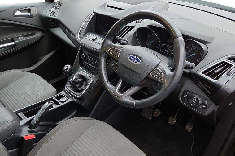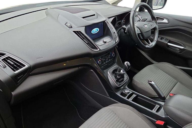 Driver's information system, Easy fuel capless refuelling system, Electric power steering, Engine start button, Multi function display colour screen, SYNC 3 DAB radio/CD, 8" colour touch screen, emergency assistance, Bluetooth connection and advanced voice control, Trip computer, Steering wheel mounted audio controls, USB connection, 'Global' closing of front/rear windows, Auto dimming rear view mirror, Automatic headlights, Automatic rain sensing wipers, Body colour bumpers with black rubbing strip, Body colour door handles, Body colour door mirrors with integral indicators, Chrome finish on upper door line, Chrome surround for front fog lights, Electric folding door mirrors, Electric front windows + drivers one touch, Electric heated door mirrors, Electric rear windows, Front fog lamps, Intermittent rear wash/wipe, LED daytime running lights, Quickclear heated windscreen, 12V accessory sockets - front and rear, 3 spoke steering wheel, Aluminium scuff plates, Ambient interior lighting, Auxiliary power socket, Centre armrest with storage box, Child observation mirror, Cloth upholstery, Courtesy light in luggage compartment, Driver's seat manual height adjust, Driver/passenger lumbar adjustment, Dual zone electronic climate control, Footwell illumination, Front + rear carpet mats, Front/rear courtesy lights, Fully adjustable front headrests, Isofix child seat attachment, Leather gearknob, Passenger seat height adjuster, Premium centre console, Rake/reach adjustable steering wheel, Rear parcel shelf, Satin chrome interior door handles, Sports style front seats, Three height adjustable rear head restraints, Versatile split folding rear seat - 40/20/40, 3x3 point rear seatbelts, ABS + traction control, Driver and passenger airbags, Driver and passenger side airbags, Electronic brake force distribution, Emergency brake assist, ESP, Fasten seatbelt reminder, Front and rear curtain airbags, Height adjustable front seatbelts, Hill start assist, Intelligent Protection System (IPS), Power child locks, Tyre pressure monitoring system, Anti-theft immobiliser, Keyless entry, Locking wheel nuts, MyKey system, Remote central double locking, Thatcham 1 volume sensing alarm, Satin black trim, Mini steel spare wheel,