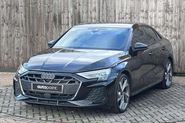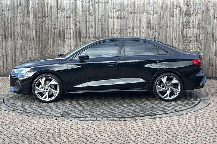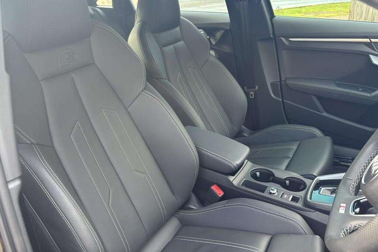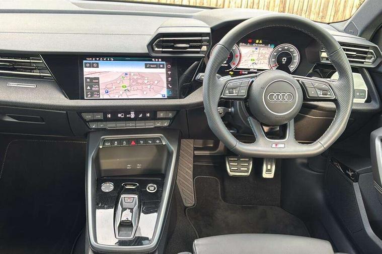 Adjustable speed limiter, Audi drive select, Audi smartphone interface with app store includes wireless Apple carplay, Android auto and Amazon alexa integration, Audi virtual cockpit plus - 12.3" full HD resolution dynamic digital instrument cluster, Automatic start/stop system with recuperation, Bluetooth interface, Camera based traffic sign recognition, Collision avoidance assistant, Cruise control, Distraction and Fatigue warning, e-Call (emergency call), Electromechanical power speed sensitive steering, Lane departure warning system, MMI Navigation Plus with high resolution 10.1" colour touch screen display, Park Assist with parking system Plus, Service indicator, Trip computer, Voice control system with natural language interaction, Diesel particulate filter, Sports suspension, Audi Phonebox light with wireless charging, Audi sound system - 10 loudspeakers including centre loudspeaker and subwoofer, DAB Digital radio, USB ports with charging function in the rear, Acoustic glass windscreen, Anthracite grey Audi rings (front and rear), Audi beam uses LEDs to project the Audi logo onto the ground as you exit your A3, Auto dimming frameless rear view mirror, Black accents front and rear bumpers, Black accents in the area of the Audi single frame grille, Black accents window trims strips, Electrically adjustable/heated/folding/dimming door mirrors with kerb view includes integrated LED indications + kerb view function for passenger side, Exterior model badging, Front electric windows, Heat insulating glass windscreen, Illuminated door sills with aluminium inserts at the front with S logo, LED 3rd brake light, LED daytime running lights, LED headlights with LED rear lights and dynamic rear indicators, Light and rain sensors, Privacy glass - dark tinted rear window, rear door and side windows, Rear boot, Rear electric windows, Rear side wing doors, 12V socket and storage compartment in front centre console, 3 seat bench in 2nd row, 3 spoke flat bottomed leather multifunction sport steering wheel with gear shift paddles, 3-zone deluxe automatic air conditioning, 4 way electrically adjustable lumbar support for driver and front passenger, 40/20/40 split folding rear seat bench, Black cloth headlining, Front and rear centre armrest in artificial leather, Front and rear centre armrest in artificial leather with contrasting stitching on armrests and instrument panel, Front and rear headrests, Front/rear floor mats, Heated front seats, Height and reach adjustable steering wheel, Manual boot compartment lid, Manually adjustable front seats, Rear cup holders, S badging on the steering wheel, Seat side bolsters, Single front passenger seat, Stainless steel pedals and front footrest in black, Twin leather upholstery with front sports seats S embossed logo, Aluminium interior elements pack - A3 Saloon, Multi-coloured LED interior lighting package - A3 Black Edition, 3x3 point rear seat belts, Driver and front passenger airbag with passenger airbag deactivation, Electronic Stabilisation Control (ESC) including ABS, ASR and EDL, First aid kit with warning triangle and 2 safety vests, Front side airbags with head airbags and interaction airbag, Hill hold assist, Pre-sense front with pedestrian and cyclist detection, Seatbelt monitoring, Tyre pressure loss indicator, Anti theft alarm, Anti-theft wheel bolts, Electronically operated child locks, Immobiliser, Remote central locking with safelock, Inlays in black Impressum woven textile,