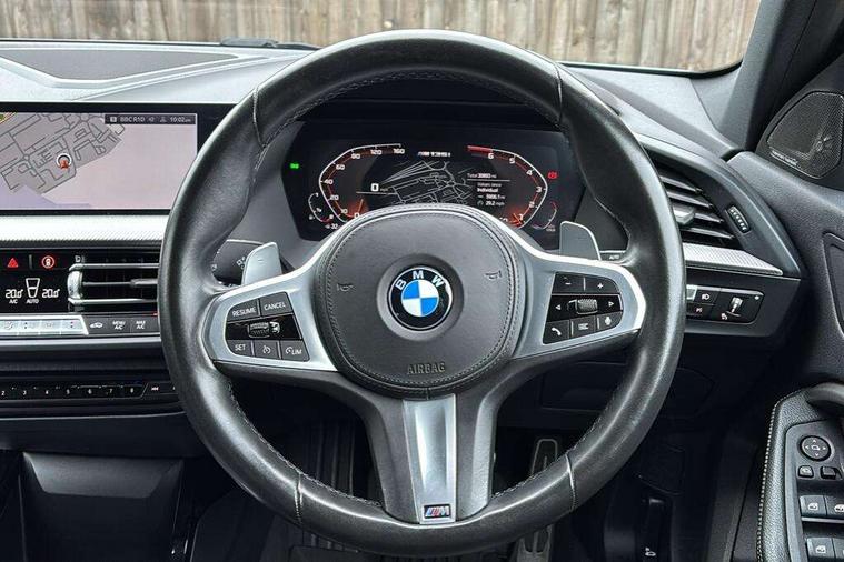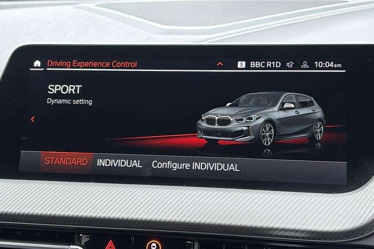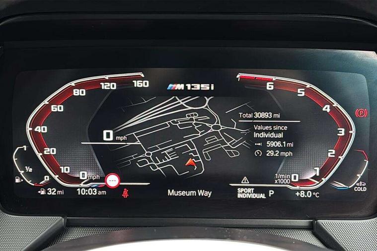 Active guard plus, Attentiveness assist, Bluetooth / WiFi interface for wireless connection of mobile terminal devices and audio streaming, BMW ConnectedDrive online services, BMW Teleservices, Check Control warning system for monitoring of lights and door/luggage compartment open warning, Cruise control with brake assist, Eco pro mode, Electric power steering, Electro hydraulically controlled multi-plate clutch transfers drive to rear axle and with power take-off device located on the front differential., Energy efficient operating strategy, Front axle single joint with specific axle kinematics to minimise drive influences on steering + provide increased rigidity agile driving behaviour, Gearshift time display in manual mode, Integrated owners handbook, Lane departure warning system, M Sports steering with M135i xDrive specific settings, Oil sensor for level and grade, On board computer, Optimum shift indicator, Personal Profile, Pull away assistant, Rigidly mounted rear subframe - Multi link construction with separate spring / damper configuration and excellent driving characteristics, Speed limit Info including no-overtaking indicator, Speed limiter, Sporty fast gear shifting in sport mode, Aluminium lightweight construction, Anti roll bar front and rear, Balancer shaft, Double VANOS, Drive Performance Control, Eight speed sport automatic transmission with gearshift paddle switches, Electronic differential lock, Electronic selector lever, Engine cover with M performance designation, High precision injection, Larger fuel tank capacity (50 litres), Launch control, M135i specific heavily de-throttled engine intake air guide, M135i specific high-performance cooling package, M135i specific larger turbocharger with integrated divert-air valve, Petrol Particulate Filter, Twin tube gas filled shock absorbers with degressive characteristic curve, VALVETRONIC engine management, Variable, stepless and infinitely adjustable distribution of drive torque between the front and rear axles, xDrive intelligent all wheel drive with M135i specific reinforced components, DAB Digital radio, Auto dimming rear view mirror, Automatic headlight beam throw control, Automatic windscreen wipers and automatic headlight, Body colour door handles, Body colour roof trims, Cerium grey exterior mirror caps, Direction indicator side lights in exterior mirrors, Exhaust tailpipe, Cerium Grey with bevelled finish - twin, round 100mm, left and right split, Fading support, Folding side mirrors with auto dimming/folding wing mirrors with auto dimming, Follow me home headlights, Front and rear bumper system with replaceable deformation elements, Front and rear electric windows with open and close fingertip control, anti trap facility and comfort closing, Front door sill finishers with M135i designation, Green tinted heat protection glazing, Heated, electrically adjustable exterior mirror aspheric on driver side, convex on passenger side, High gloss shadowline window frame, Recess cover mirror frames and B/C pillar embelisher trim, High level third brake light, Integrated front windscreen with washer jets, Kidney grille frame in Cerium Grey with Mesh design, LED daytime running lights, LED eyebrow turn indicators, LED front fog lights, Lightweight engineering, M logo designation side in cerium grey, M Performance exhaust system with valve control and minimised exhaust back pressure, M Performance specific setup, M Sport spoiler, Matt black air guide grilles, Matt black wheel arch trim, Model designation on electric bootlid includes xDrive designation for M135i xDrive, Nearside reverse light in rear light cluster, Preparation for high beam assistant, Rear fog lights, Rear side wing doors, Rear window wiper, Reinforced crank drive, new pistons and adapted con rods, Shark fin antenna, Trailer stabilisation logic, Visible VIN plate, Welcome lighting, 12V power socket in front centre console with blanking plug, 3 rear seat head restraints, 3 seat bench in 2nd row, 3 spoke sports leather steering wheel with black leather and stitching, pearl chrome decorative finish, specific M Badge, Ambient interior lighting, Anthracite headlining, Child seat ISOFIX attachment for two outer rear seats and front passenger seat with anchorage points, Conditioned based service, Driver and front passenger seat heating, Floor mats in anthracite velour with contrasting colour seam to match contrast stitching on instrument panel, Folding rear clothes hook, Four grab handles integrated in roof lining, Front and rear door pockets with bottle holders, Front and rear side armrest integrated into door trim, Front armrest, Front integrated head restraints, Front M sports seats, Glove compartment, Luggage compartment for bag hooks on left and right, foldable luggage compartment liner and two lashing eyelets, Manual adjust steering wheel, Multi-function controls for steering wheel, Single front passenger seat, Storage compartment in centre console, Sun visors with vanity mirrors and insert tab, Two front centre console cupholders, Two zone automatic air conditioning, Additional interior lighting pack - 1 Series M135i, Additional storage compartment pack with code 493 -1 series, BMW live cockpit professional pack- 1 Series, Connected pack professional - 1 Series, Interior lights pack - 1 Series, M Sport exterior styling aerodynamics pack - 1 Series 135i, 2 tone horn, 3 point seatbelts on all seats, front pyrotechnic belt tensioners, stopper and belt force limiters, rear coded belt buckles, Airbags - Front driver/passenger, front and rear curtain head protection, front side, manual deactivation of front passenger airbag, Anti lock braking system (ABS) with brake assist, BMW emergency call, Brake drying, Braking readiness, Child proof locking system in rear door, City braking function, Comfort modes, Cornering brake control, Crash sensor activating central locking release, hazard warning lights, fuel cut off, interior lighting + activation of safety battery terminal
