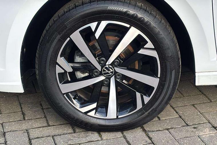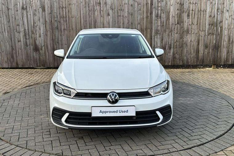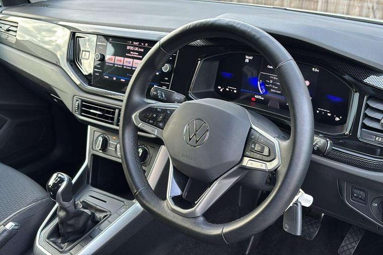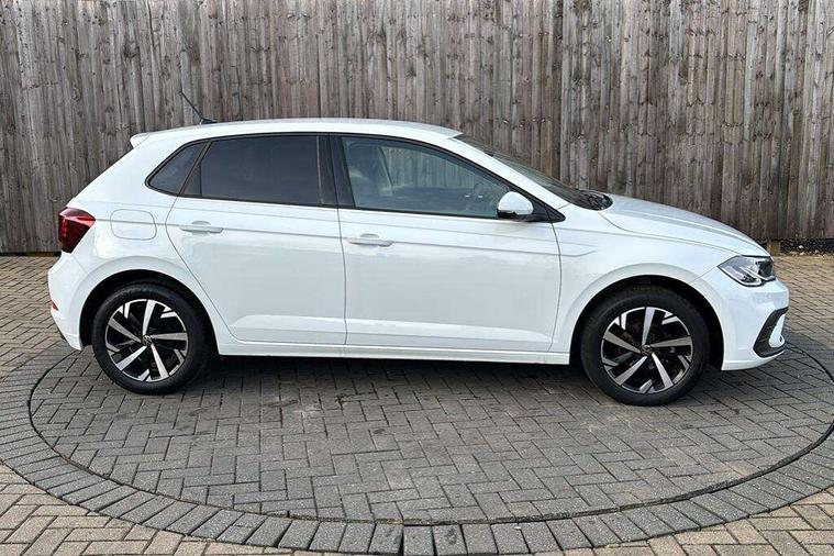 Adaptive cruise control without follow-to-stop and speed limiter, Advanced driver attention and drowsiness monitor, Bluetooth mobile phone interface, Dynamic road sign display, Emergency call service, Multifunction front facing camera for distance control, Park distance control, Power assisted speed sensitive steering, Preparation for navigation system with media and internet package, Preparation for We connect and We connect plus, Rear view camera, Speedo and rev counter, electronic odometer, trip, service interval display and exterior temperature gauge, Standard rear axle, Travel Assist - Lane keeping system and traffic jam assist, Travel assist including emergency assist, Trip computer, Warning signal and warning light for front and rear seatbelts not fastened, Washer fluid level indicator, Wireless app connect, Front wheel drive, Rear shock absorpion, Start-stop system with battery regeneration (recuperation - energy recovery during braking), DAB Digital radio, Diversity antenna for FM reception, Front and rear 6 speakers, Automatic dimming interior rear view mirror, Automatic headlight control with LED separate daytime running lights with coming/leaving home function, Body colour bumpers with chrome inserts, Body colour door handles, Body colour door mirrors, Electric front windows, Engine badge deletion, Headlight range adjustment, Heat insulating and laminated safety glass windshield, LED Headlights, LED rear combination lamps, Power folding adjustable/heated exterior mirrors and front passenger exterior mirror lowering function, Rain sensor, Rear electric windows, Rear fog light, Rear side wing doors, Rear tinted glass from B-pillar backwards approx 65% tinted, Rear windscreen washer and wiper with interval delay, Third brake light, 12V power socket in centre console, 2 front and 2 rear reading lights with switch off delay and dimmer, 2 USB-C ports in the front, 2 USB-C charging sockets on the center console in the rear, 3 rear head restraints, 60/40 split folding rear seat and rear seat bench not split, Ceramique roof lining, Chrome plated radiator grille inserts, air vent surrounds and light switch surrounds, Door and side trim panel, Driver and front passenger seat height adjustment, Driver/passenger sunvisors with illuminated vanity mirrors, Front centre armrest, Front seat backrest storage pockets, Front standard seats, Handbrake lever handle in leather, Hartley/Thomas cloth upholstery, Headliner in recycled material, Isofix child seat preparation easy-fit (for two outer rear seats, and front passenger seat) compatible with I-size, Leather trimmed gear knob, Luggage compartment cover, Luggage compartment lighting, Removable luggage compartment floor, Single front passenger seat, Standard climatic zones, Standard pedal cluster, Three spoke leather wrapped multifunction steering wheel, Light and vision pack - Polo, 3 point height adj front seatbelts + pretensioners, 3 point seat belt for centre rear seat, 3 point seatbelts, outer rear with ECE lable, ABS, Driver and front passenger airbag with front passenger airbag deactivation, Drivers and front passengers safety optimised head restraints, ESC (Electronic stability control) + EDL (Electronic Differntial lock) and ASR (Traction control), Extended and predictive pedestrian/ cyclist protection, Front assist with autonomous emergency braking (for Adaptive Cruise Control ACC up to 130 mph), Front curtain and side airbags with center airbag, Front disc brakes, Hill hold control, Manual child lock in rear doors, Rear drum brakes, Single tone horn, Tyre pressure loss indicator, Alarm with interior protection, Anti-theft alarm system with interior monitoring, backup horn, and towing protection, Anti-theft wheel bolts, Electronic engine immobiliser, Lava stone black gloss/matt decorative inserts in dash and front door panels, 16" Torsby alloy wheels, Low rolling resistance tyres,