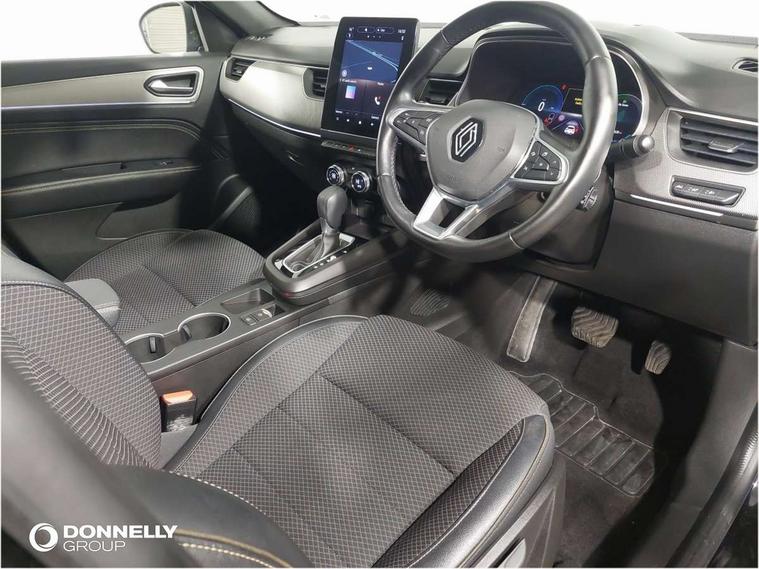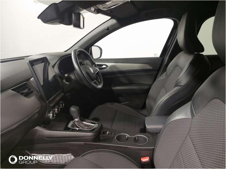 10" TFT Driver information display, Adaptive cruise control with Stop and Go, Blind spot warning, Bluetooth system, Driver drowsiness alert system, EASY LINK 9.3" portrait touchscreen with 3D navigation, hybrid voice recoginition and applications store, Eco mode, EV button to activate pure mode, Fixed speed limiter 180km/h, Front and rear parking sensors, Gear change indicator, Lane departure warning, Lane keep assist, Multi-sense - 3 driving modes and 8 ambient lighting, Rear cross traffic alert, Rear view camera, Renault automatic emergency assist, Start/stop system, Traffic sign recognition with over speed prevention, Trip computer, Variable assistance electric power steering, Wireless phone charger, Wireless Smartphone Integration includes Apple CarPlay and Android auto, Arkamys classic sound system with 6 speakers, DAB radio, USB port, 3rd brake light, Auto dimming rear view mirror, Automatic full LED headlights, Automatic high / low beam, Automatic windscreen wipers with rain sensor, Black side door protection with chrome insert, Body colour door mirrors, Body colour rear boot spoiler, C-shaped LED front signature lighting (333 high), Chrome decopart on wing (fender molding), Chrome window lower lining, Electrically adjustable and foldable door mirrors with defrosting, temperature sensor and automatically fold when vehicle closure, Exterior chrome enhancement, Extra tinted rear windows and tailgate, F1 blade style body coloured bumper, Front and rear electric windows, Front driver window with one touch facility and anti-pinch function, Front grille with chrome on upper part, Grey front and rear skid plates, Heated rear window, Rear windscreen wiper, Shiny black shark fin antenna, Variable front intermittent wipers, 1/3-2/3 foldable fixed bench, 3 seat bench in 2nd row, Automatic climate control with combined filter, humidity sensor and AQS, Black interior roof lining, Central console with storage, Cloth/TEP artificial leather upholstery, Driver and front passenger seat height adjustment, Foldable armrest with 2 cup holder in rear passenger seats, Front and rear head restraints, Height and reach adjustable steering wheel, ISOFIX child seat fixing points on rear outermost seats, LED front and rear roof lights, Rear air vents, Single front passenger seat, Sun visor with enlighted vanity mirror, Synthetic leather steering wheel, Variable boot floor, 3x3 point rear seat belts, Active emergency braking system, Anti-lock braking system (ABS), B Brake Mode - One pedal driving with increased regenerative braking, Distance warning alert, Driver airbag, Driver and passenger front and side airbag deactivation, Driver and passenger side airbags, Driver height adjustable seat belt, Electronic brake distribution, Electronic parking brake with auto hold, ESC (Electronic Stability Control), Front and rear no seatbelt warning sound, Front curtain airbags, Front head airbags, Front seatbelt pretensioner, Hill start assist, Passenger airbag, Sound for pedestrian (1 to 30 kph), Tyre pressure warning light, Anti drill door locks and locking fuel cap, Central door locking, Deadlocking system, Hands free keycard with Keyless access and start, RAID (Renault Anti-Intruder Device) automatic door locking, Rear side wing door and window child locking function (front driver door control panel), Thatcham alarm, 18" Silverstone alloy wheels,