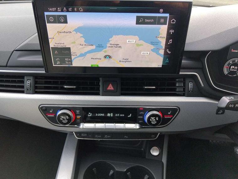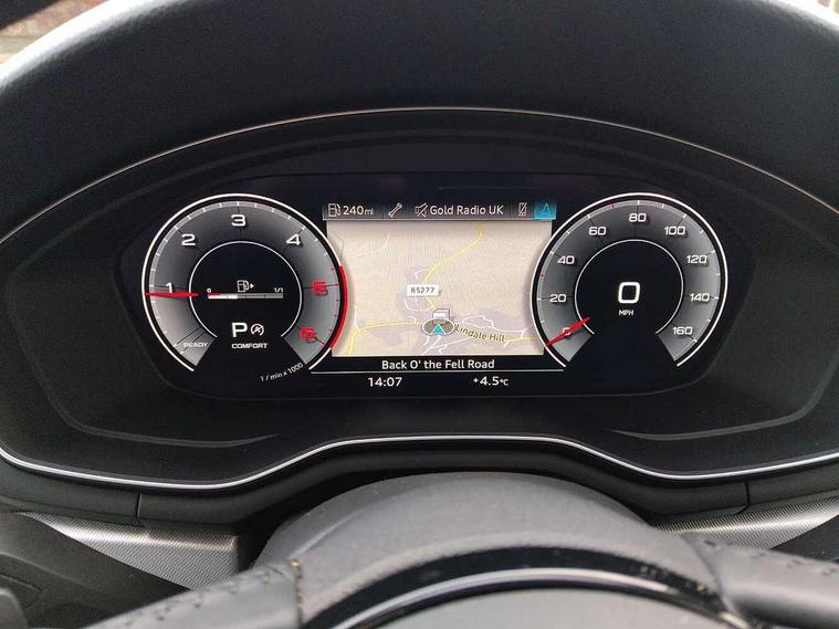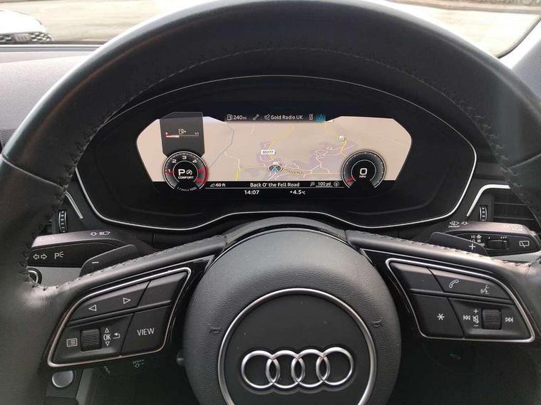 Audi connect safety and service (e-call), Audi drive select, Audi parking system plus with front and rear sensors, Audi smartphone interface, Audi virtual cockpit, Automatic start-stop system with coasting functionality and efficiency programme, Bluetooth interface, Cruise control system with speed limiter, Electromechanical power steering, MMI Navigation plus with MMI touch includes 10.1" high resolution colour MMI display, 3D map, Power operated tailgate, Rear view camera, Voice control system, Comfort dynamic suspension, 2 USB charging ports, 8 passive loudspeakers, DAB digital radio reception, Aluminium roof rails, Auto dimming rear view mirror, Body coloured door mirrors, Electrically folding auto dimming/adjustable/heated door mirrors with LED side indicators and kerb view function for passenger side, LED headlights and rear lights with LED daytime running lights, New design rear diffuser, Rain and light sensors, Windscreen with acoustic glazing, 3 spoke high multi-function leather sports steering wheel with paddle shift, 4 way electric lumbar support for driver and front passenger, 40/20/40 split folding 3 rear seat bench in 3 parts with rear centre armrest, Deluxe 3 zone electronic climate control, Door sill trims with aluminium inlay, Electric load area cover, Front and rear head restraints, Front centre armrest, Heated front seats, Interior lighting, ISOFIX child seat mounting and top tether, Manual seat adjustment, High gloss package - A4, 3 rear seatbelts, 6 airbags - Driver, front passenger, curtain and side windows, Electronic Stabilisation Control (ESC) including ABS, ASR and EDL, Hill hold assist, Multi collision brake assist, Pop-up bonnet for pedestrian protection, Pre sense city, Seatbelt monitoring, Warning triangle and first aid kit, Anti theft alarm, Anti theft wheel bolts, Keyless Go, Tool kit, Tyre repair kit,