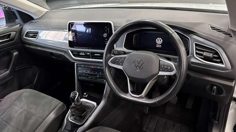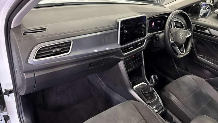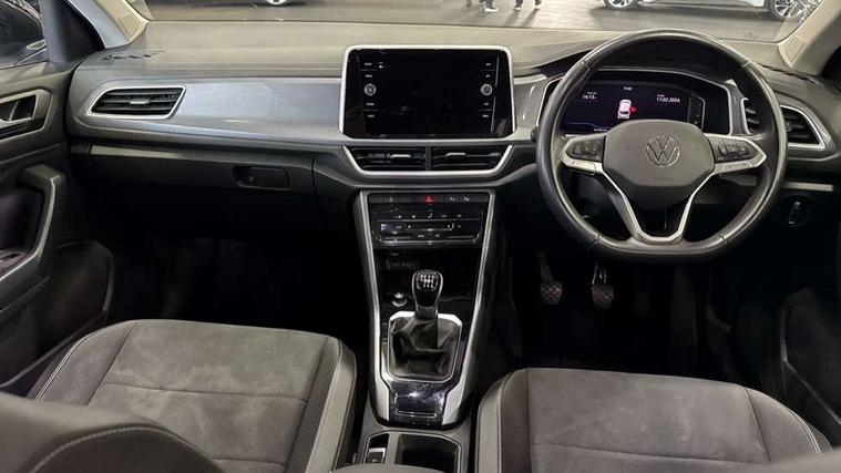 10.25" Digital cockpit pro, Bluetooth mobile phone interface, Driver alert system with fatigue detection, Driver tips and journey analysis, Dynamic road sign display, Emergency call service, Lane keeping system Lane Assist, Modified key software - reduce switch off time for key status change to Long no motion, Online services, Park assist including front and rear parking sensors, Power assisted speed sensitive steering, Service interval indicator, Tailgate/trunk lid release from outside, Think blue trainer driver tips and journey analysis, Warning sound and light for front seatbelts unfastened, Wireless app connect, Battery regeneration during braking, Front shock absorption, Rear shock absorption chassis with increased ride height, Start/stop function with battery regeneration, Diversity antenna for FM reception, Music playback - MP3, WMA and AAC files, Premium USB cable in choice of either Apple or Android smartphone compatibility, SD card slot, Simultaneous pairing of 2 compatible mobile devices, Title and cover art display, We Connect and We Connect Plus functionality, 3rd brake light, Auto dimming interior rear view mirror, Automatic hazard lights activation under emergency braking, Automatic headlight control with LED separate daytime running lights with coming/leaving home function, Body colour sports bumpers with silver metallic underbody fascia, Dynamic headlight range control with self adjusting whilst driving, Extended roof spoiler, Exterior mirrors aspherical on driver side, convex on front passenger side, External USB type C socket and charging sockets, Front windscreen wiper with intermittent wipe and 4 position delay, Heated rear window, LED rear combination lamps, LED rear number plate lights, LED tail lamp rear comination lamps, Light mode for poor weather, rain, fog or snow, Power windows with comfort operation and circuit breaker, Rain sensor, Rear exhaust tailpipe, Rear fog light on one side and reversing lights on both sides, Rear side wing doors, Rear wash/wipe with intermittent wipe setting, Remote electrically foldable door mirrors, puddle lights and reverse activated passenger's door mirror, 12V power socket in centre console, 3 rear head restraints, 3 seat bench in 2nd row, 4 load lashing points in luggage compartment, Air care climatronic air conditoning system with active combination filter and 2-zone temperature control, Chrome plated radiator grille inserts, air vent surrounds and light switch surrounds, Door and side trim panel with leatherette insert, Drawer under drivers seat, Front + rear carpet mats, Front centre armrest, Front comfort sports seats, Front cupholders x 2, Front footwell illumination, Instrument lighting, white adjustable panel illumination, Interior ambient lighting and surround lighting, Interior light delay, Isofix child seat preparation, Leather gearshift handle, LED interior light with switch off delay/dimmer and 2 front/rear LED reading lights, Load-through provision with cup holder when folded down ('Unsplit rear seat bench, split folding backrest, with centre armrest), Luggage compartment lighting, Non-folding front passenger seat backrest, Single front passenger seat, Storage compartment in left and right luggage area, Storage compartment in rear doors, Storage compartments in driver and front passenger doors, Sunvisors with illuminated vanity mirrors, Variable boot floor, height adjustable and removable, Driver assistance pack without proactive passenger protection - T-Roc, 3 point height adj front seatbelts + pretensioners, 3 point seatbelts in outer rear with ECE label, ABS, Child locks on rear doors, Driver and front passenger airbag with front passenger airbag deactivation, Driver and front passenger safety-optimised head restraints, Drivers seatbelt reminder, Electronic parking brake, Electronic Stability Control (ESC) inc EDL (Electronic Differential Lock) and ASR (Traction Control), Front and rear passengers curtain airbag system including front side airbags, Front assist with city emergency braking and pedestrian monitoring, Front disc brakes, Front seat side impact airbags, Predictive pedestrian protection, Rear disc brakes, Single tone horn, Tyre pressure loss indicator, Volkswagen roadside assistance, Anti-theft alarm system with interior monitoring, backup horn, and towing protection, Remote central locking with SAFELOCK, radio remote control with 2 remote control folding keys, Trims for alloy wheels,