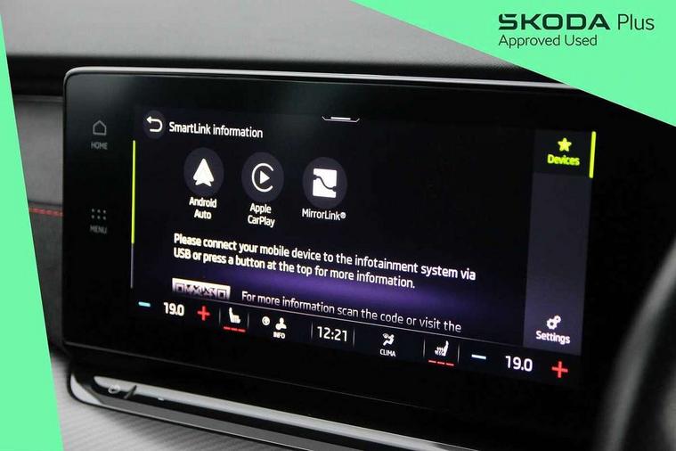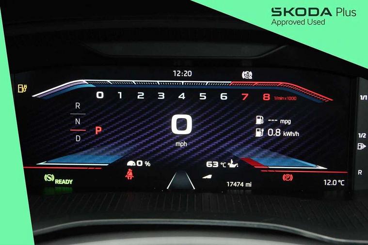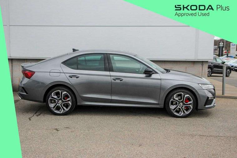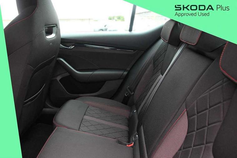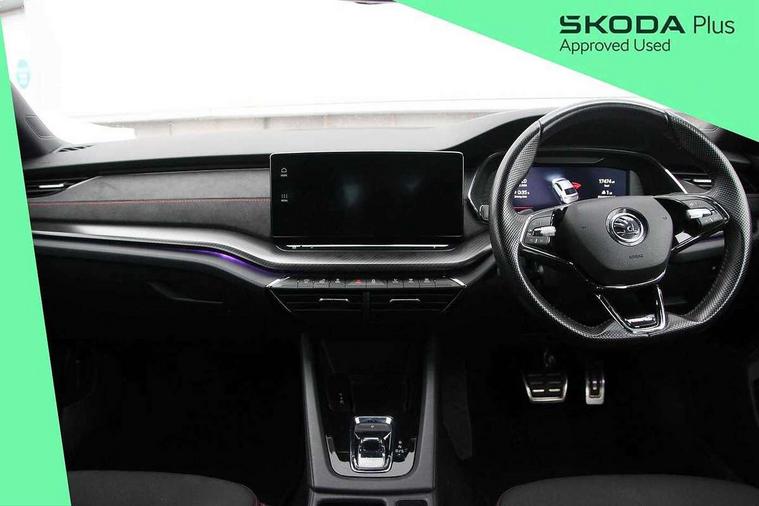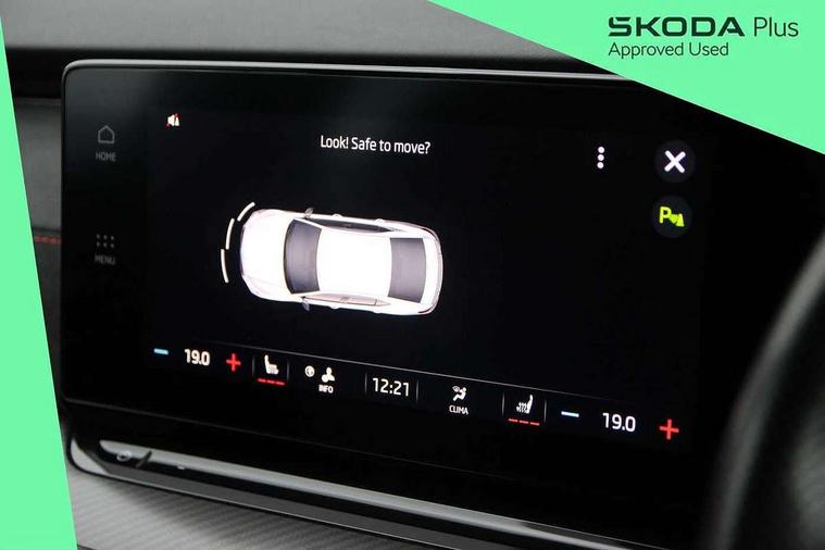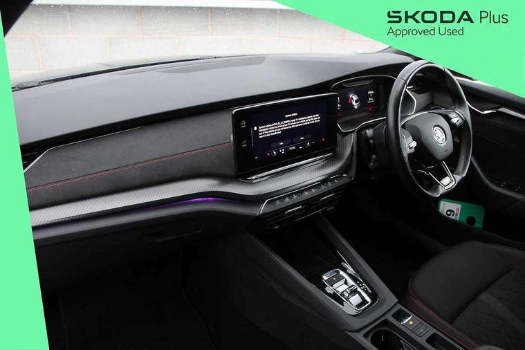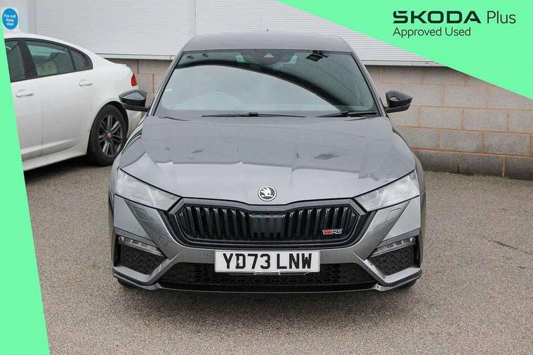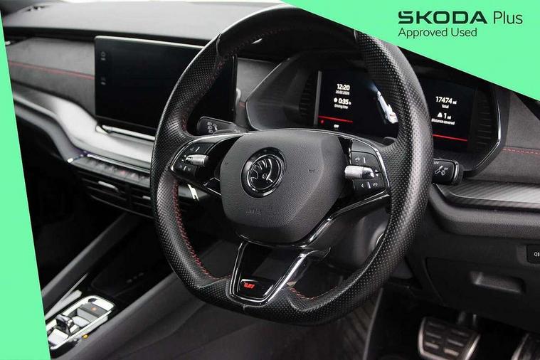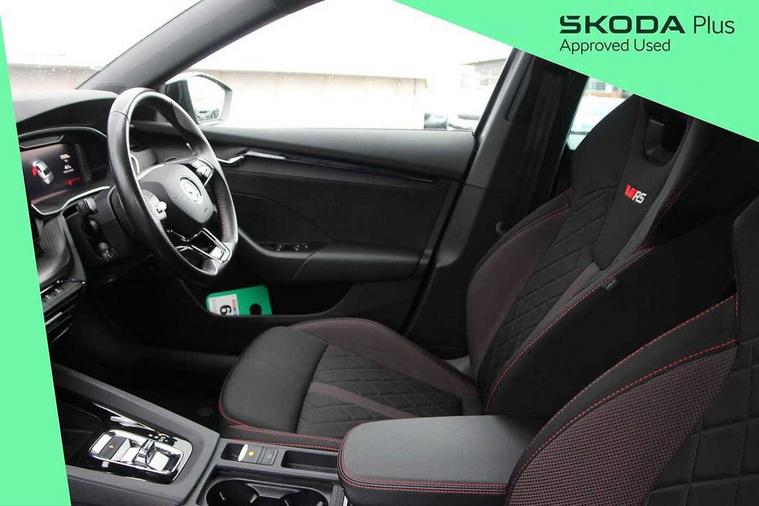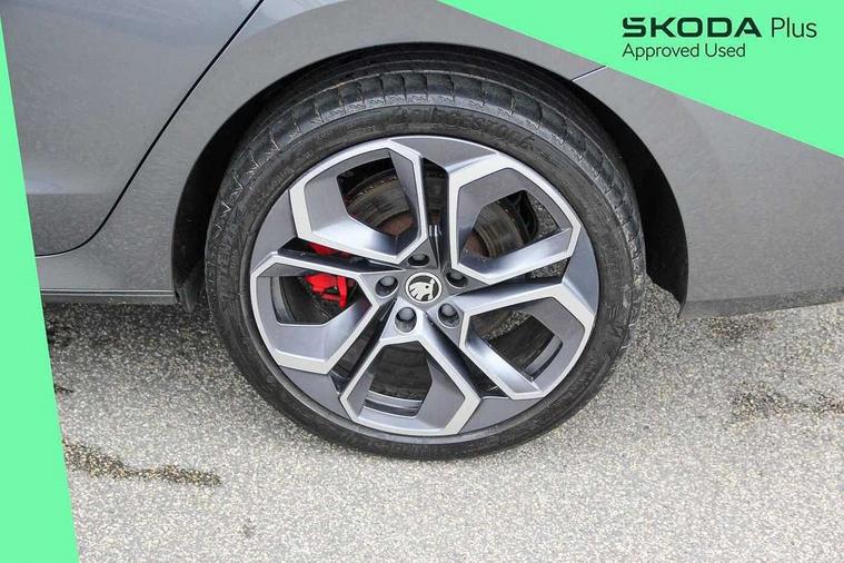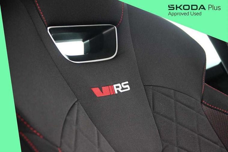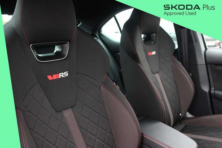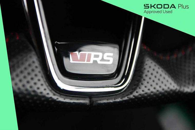 1x USB Type C port in rear view mirror (charging only), 2x USB Type C ports in rear of front centre armrest (charging only), Bluetooth system, Columbus satellite navigation with 10" touchscreen display, Driver fatigue sensor, eCall emergency system, Front and rear parking sensors with manoeuvre assist, Front assist system, Progressive dynamic steering, Speed limiter, Turn Assist, Virtual Cockpit - 10.25" digital display, Virtual pedal with electrically operated boot door (Rear LED lights (high functionality), dynamic indicators, Voice control system, Wireless SmartLink for Apple Car Play, Electronically controlled limited slip differential, Front and rear stabilizers, 2x USB Type C ports (for charging and data transfer), 8 Speakers, DAB Digital radio, Aero front windscreen wipers with intermittent function, Auto dimming rear view mirror, Body colour door handles, Chrome exhaust tailpipes, Door sills with vRS logo, Electric front and rear windows, Exterior gloss black sports styling including front grille, side strip, window surrounds, door mirror and badging, Full LED Matrix headlights with AFS, rear LED lights (high functionality) and dynamic indicators and cornering front fog lights, Headlight washers, Heated rear windscreen, High level third brake light, Ice scraper in fuel cap, LED daytime running lights, Rain and light sensors, Rear fog light on one side, Rear privacy glass, Rear side wing doors, vRS bumpers and lip spoiler, 3 rear headrests, 3 seat bench in 2nd row, 4 foldable roof handles, Aluminium pedals, Black headlining, Black microsuede padded dash panel with red contrast stitching, Chrome inner door handles, Front centre armrest, Front head restraints, Heated front seats, Illuminated glovebox, Leather trimmed gearshift lever, Luggage compartment lighting x1 light, Mechanical rear seat release, Parcel shelf - folding, Single front passenger seat, Sunglasses storage, Textile floor mat set, Three spoke leather sports multifunction steering wheel with paddles, Ticket holder, Umbrella in door panel, Unsplit rear bench seat and split folding backrest, LED interior light pack - Octavia, 3 point front/outer rear seatbelts+pre-tensioners, Alarm with interior monitoring, tilt sensor and back up horn, Automatic door unlocking in case of crash, Automatic fuel cut off in case of crash, Automatic warning lights in case of emergency braking, Curtain airbags and front side airbags, Driver and front passenger airbags, Drivers knee airbag, Electronic parking brake, ESC including ABS, EBV, MSR, ASR, EDS, HBA, DSR, Front and rear disc brakes, Front central airbag, Hill hold control, Hill start assist, ISOFIX on front passenger seat and outer rear seats, Manual rear child locks, Passenger airbag deactivate switch, Pro active services, Red brake calipers, Two tone horn, Tyre pressure monitor, Visual and acoustic seat belt reminder, Warning reflectors in front door, Door locks with immobiliser, Keyless entry and start/stop including rear doors, Remote central locking, Carbon optic decorative inserts, Gloss black air vent surrounds, 19" Altair anthracite alloy wheels,