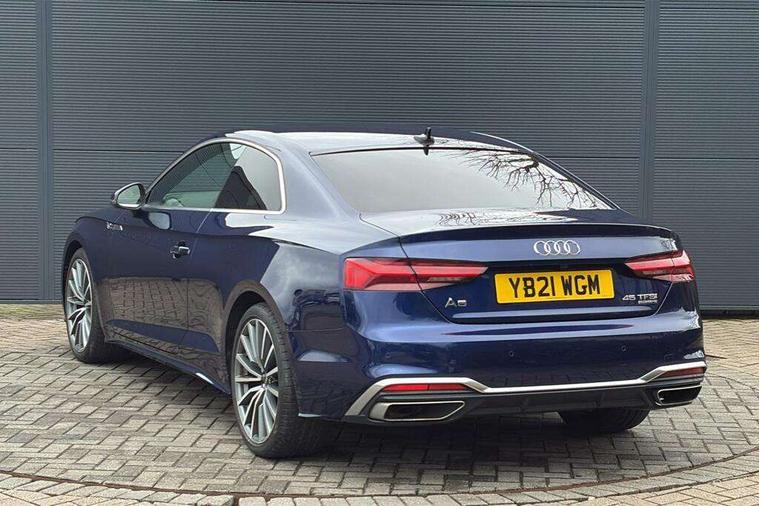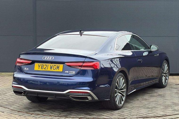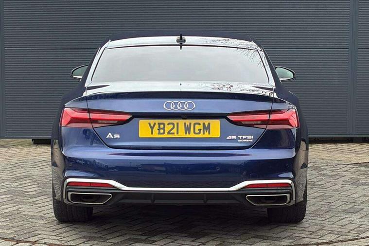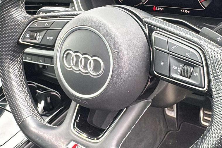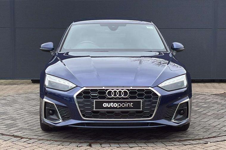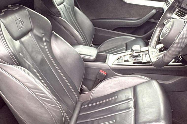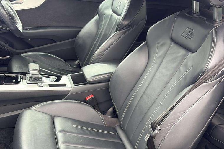 Audi connect safety and service (e-call), Audi drive select (Auto, Comfort, Dynamic, Efficiency and Individual), Audi parking system plus with front and rear sensors, Audi phone box with wireless charging, Audi smartphone interface, Audi virtual cockpit - 12.3" full colour digital instrument cluster, vehicle/engine speed, Radio/media information+Driver assistance systems, Automatic start-stop system with coasting functionality and efficiency programme, Bluetooth interface, Electric boot lid release, Electro-mechanical power steering, Email, calendar and text messages displayed via MMI, MMI nav+ with MMI touch - 10.1" high resolution MMI display, touch sensitive, 3D map, route/country info, dynamic route guide, personal route assist, Rear view camera, Service interval indicator, Voice control system, Sports suspension lowered by 23mm, 8 passive loudspeakers, CD player, DAB digital radio reception, Two additional USB ports for rear passenger in rear centre console, Two SDXC card slots, Audi matrix LED headlights with LED rear lights + dynamic front and rear indicators, Auto dimming rear view mirror, Body colour bumpers, Body colour door handles, Body colour front spoiler lip, Body colour side sill trim, Body coloured door mirrors, Electric adjustable heated door mirrors, Electric folding door mirrors, Electric front windows, Front fog lights, Honeycomb structure radiator grille in grained matt black, Matt aluminium silver tailpipe trim, Privacy glass, Rain and light sensors, S line badges on front wings, S line front and rear bumpers with side skirts, S Line rear diffuser in matt titanium black with trim strip in matt aluminium silver, Side air inlets in grained matt black with matt aluminium silver inlay, Towbar preparation, Windscreen with acoustic glazing, 4 way electric lumbar support for driver and front passenger, 40/20/40 split folding 2 seater rear seat bench with rear centre armrest, Adjustable steering column, Black cloth headlining, Black perforated leather gearknob, Contrast stitching on seats, steering wheel and gear lever gaiter, Deluxe 3 zone electronic climate control, Front centre armrest, Front head restraints, Front/rear floor mats, Heated front seats, Illuminated door sill trim with S logo, ISOFIX child seat mounting and top tether, Luggage compartment mat, Manual seat adjustment, Rear headrests, Stainless steel pedals, Sunvisors with vanity mirrors, Tool kit, LED interior light pack - A5/RS5, 2 x 3-point rear seat belts, 6 airbags - Driver, front passenger, curtain and side airbags, Electromechanical parking brake, Electronic Stabilisation Control (ESC) including ABS, ASR and EDL, Front passenger airbag deactivation, Height adjustable front seatbelts, Hill hold assist, Multi collision brake assist, Pop-up bonnet for pedestrian protection, Seatbelt monitoring, Tyre pressure warning, Variable restraint system, Warning triangle and first aid kit, Anti theft alarm system, Anti theft wheel bolts, Immobiliser, Keyless Go, Remote central locking, Matt brushed aluminium inlays, Tyre repair kit,