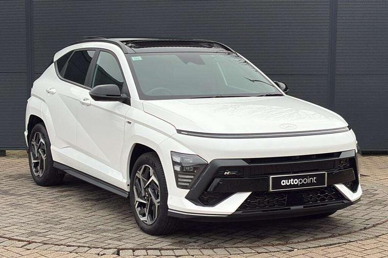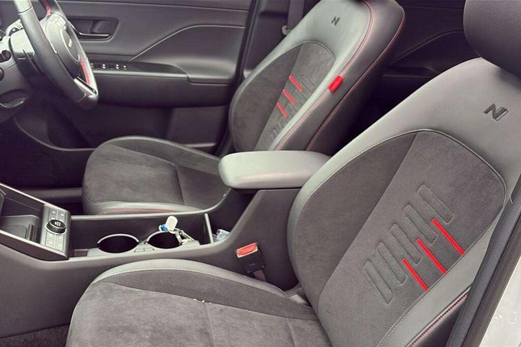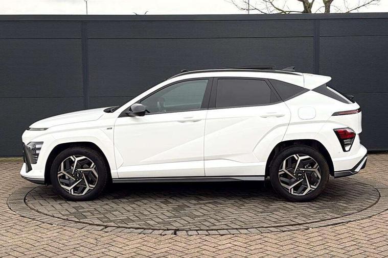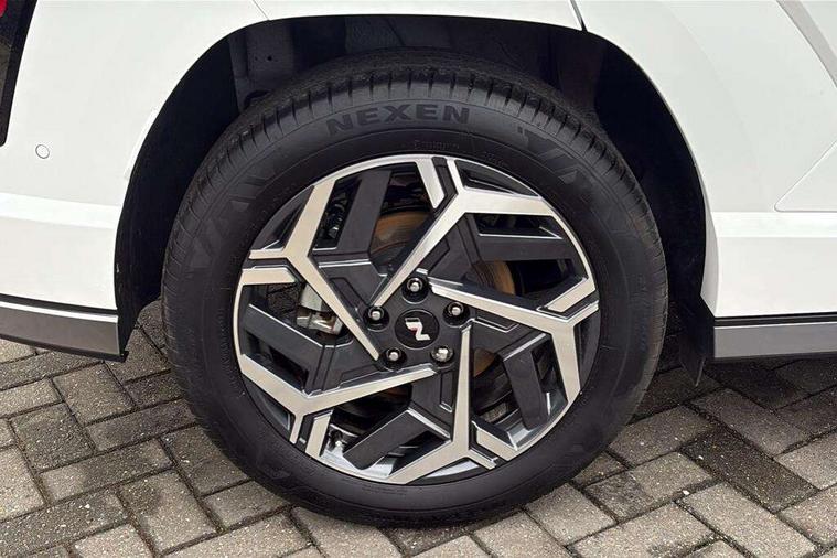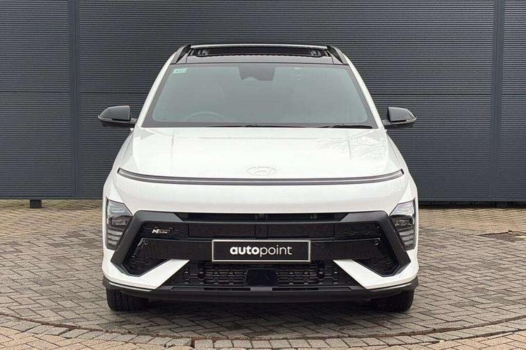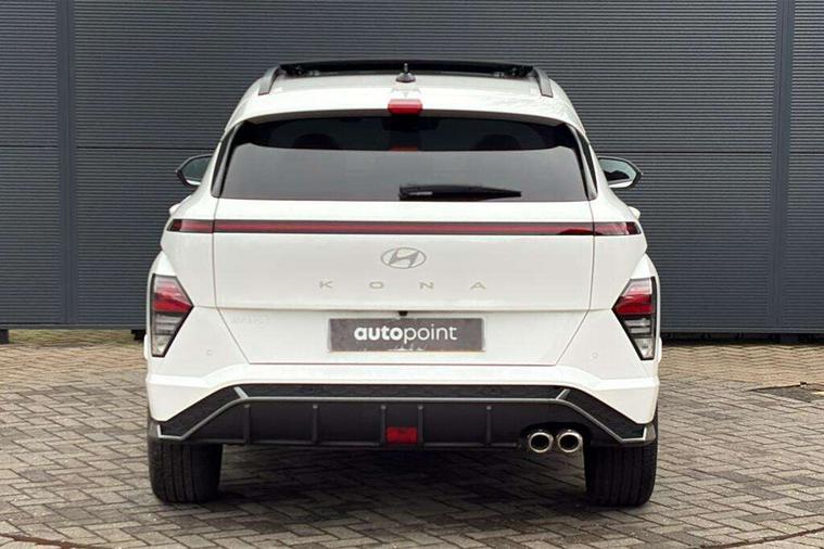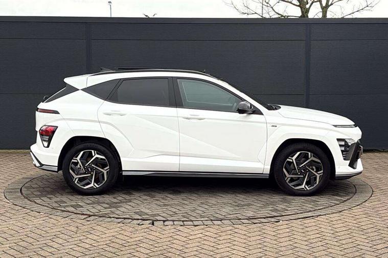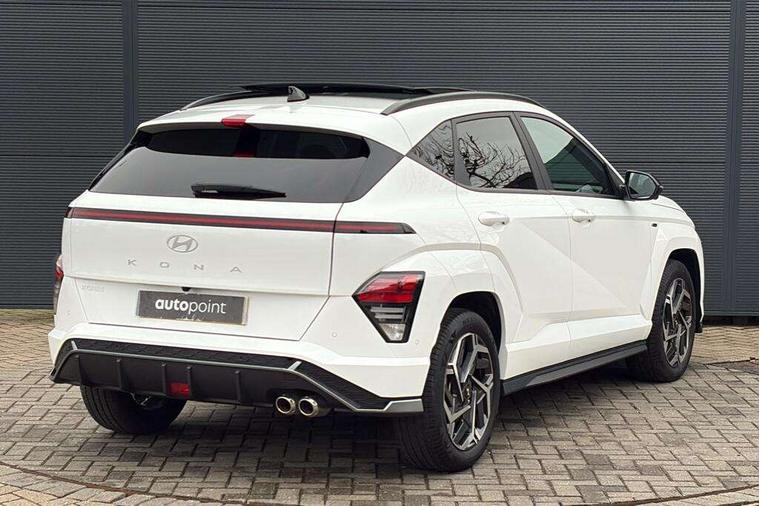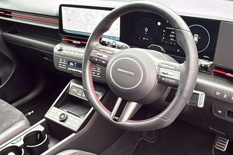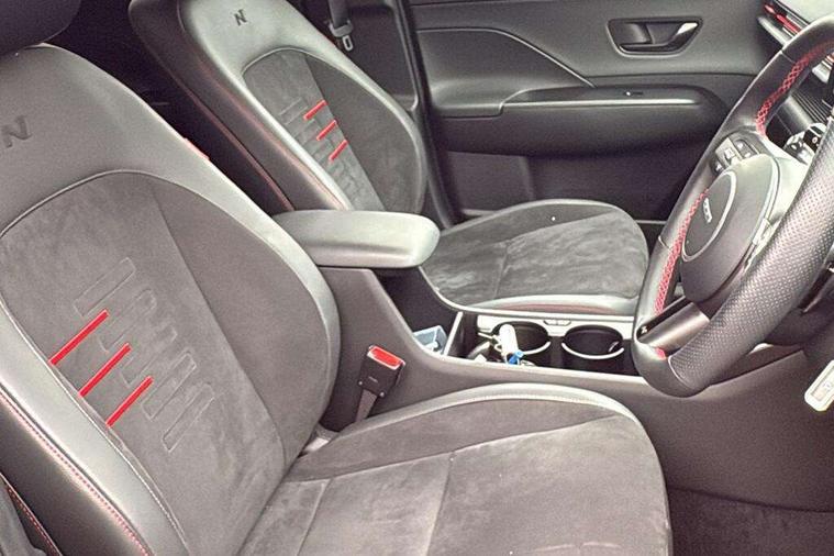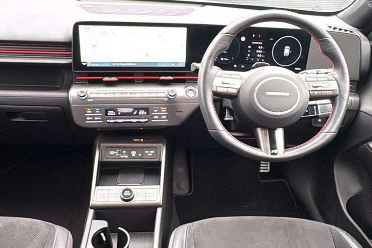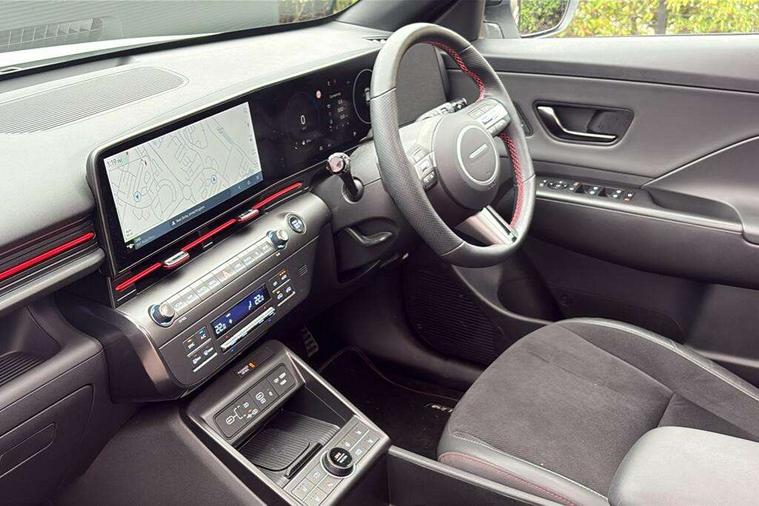 12.3" touchscreen centre console display satellite navigation with bluelink, live services and mapcare, Blind spot collision avoidance assist, Blind spot view monitor, Bluetooth connectivity with voice recognition, Digital clock, Driver status monitor (DSM), Driver supervision instrument cluster with 12.3" LCD display, eCall emergency call system, Feature on demand - Enabled, Forward collision avoidance assist (FCA 1.5) - Car, pededstrian, cycle and junction turning, Front parking sensor, HDA - Highway Drive Assist Level 1.5, Height adjustable power tailgate, Intelligent speed limit assist, Lane follow assist, Lane keep assist, Leading vehicle departure alert (LVDA), Parking Collision Avoidance Assist-Reverse (PCA-R), Parking distance warning - side, Parking system with rear camera and guidance system, PAS, Rear cross traffic collision avoidance (RCCA), Rear parking sensor, Roadside assistance, Safe exit warning (SEW), Smart cruise control with stop and go functionality, Surround view monitor, Windscreen washer fluid sensor and warning indicator, Wireless phone charging pad, Wireless Smartphone Integration includes Apple CarPlay and Android auto, 2 front USB C and 2 rear USB C charging points, Bose Premium Audio system with 7 premium speakers + subwoofer, DAB Digital radio, Steering wheel audio, phone and cruise controls, Auto dimming rear view mirror, Automatic headlights with dusk sensor, Automatic windscreen wipers with rain sensor, Body colour bumpers, Body colour exterior door handles, Body coloured wheel arch inserts, Door mirror LED indicator lights, Electric front windows with anti-trap mechanism and one touch control, Electric rear windows, Electrically adjustable and heated door mirrors, Gloss black door mirrors, Horizon centre LED DRL, LED projector headlights, LED upper and lower rear lights, Power folding door mirrors, Privacy glass - Rear windows and tailgate, Rear roof spoiler with integrated LED brake light, Rear side wing doors, Rear wiper, Roof rails, Solar glass with front door glass and windscreen, Tinted glass in front and rear doors, Windscreen auto defog function, 12V power outlet in front console, 2 zone climate control, 3 seat bench in 2nd row, 40/20/40 split folding rear seat, Adjustable head restraints, Aluminium pedals, Ambient lighting, Driver and passenger front seat pockets, Driver's seat electric adjustments, Driver's seat lumbar support, Driver/passenger sunvisors and illuminated vanity mirrors, Floor mats, Front passenger's seat electric adjustments, Heated front seats, Heated rear seats, Heated steering wheel, Height/reach adjustable steering column, Isofix rear child seat fastenings, Leather wrapped steering wheel, LED centre interior light, LED front interior light, Luggage compartment LED lighting, Luggage net, Luggage shelf, Metal paint effect interior door handles, N Line Alcantara/leather upholstery, Parcel shelf, Rear centre armrest, Rear centre console with air vents, Shift by wire SBW, Single front passenger seat, Ventilated front seats, Vertical adjustment rear head restraints, N Line exterior design pack - Kona, Trailer wiring package - Kona, Airbag - front, front side, curtain and centre front airbag, Anti-lock brake system (ABS), Childproof rear door locks, Downhill brake control, EBD + Brake Assist, Electric parking brake, Electronic stability control, Fasten seatbelt reminder, Fixed 3 point for second row centre passenger seatbelt, Front seatbelt pretensioners, Height adjustable front seatbelts, Hill start assist control (HAC), Passenger airbag deactivate switch, Rear seat alert, Traction control, Tyre pressure monitoring system, Alarm/immobiliser, Deadlocks, Folding key, Locking wheel nuts, Remote central locking, Smart key with keyless entry and engine start/stop button, Five year annual vehicle health checks, Temporary mobility kit (TMK),