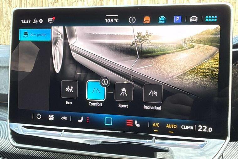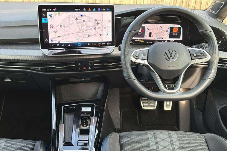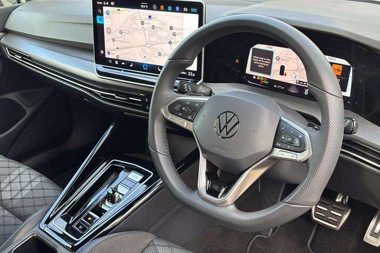 Activated carbon canister, Adaptive cruise control (ACC), Advanced driver attention and drowsiness monitor, Dynamic road sign display, Dynamic steering, E-Sim card for online connectivity, eCall emergency call system, Multi-color Digital cockpit pro, selection of different info profile possible, Multifunction front facing camera for distance control, Navigation system, Oncoming vehicle braking when turning including swerve support, Speed limiter, Speedo, rev counter, electronic odometer, trip, service interval display, exterior temperature and fuel gauge, Traffic jam assist, Voice enhancer and voice control, Warning signal and warning light for front and rear seatbelts not fastened, We connect plus preparation, We connect preparation, Wireless app connect, Hybrid propulsion system, Petrol Particulate Filter, Start-stop system with battery regeneration (recuperation - energy recovery during braking), XDS electronic differential lock for improved traction and handling, 2 USB C ports in front, 2 USB charging sockets on the centre console in the rear charging capacity upto 45W, Digital radio reception (DAB), Diversity antenna for FM reception, Gaming platform via car app, Infotainment system with 12.9" display, Mobile phone interface with inductive charging feature, 3rd brake light, Auto dimming rear view mirror, Automatic headlamp activation with Coming home and Leaving home feature, Body colored bumpers in R-Line style, Body colour door handles, Exterior ambient lighting, Exterior mirrors convex on the left and aspherical on the right, Front and rear electric windows, Heat insulating windshield made of laminated glass, LED separate daytime running light, Rain sensor, Rear exhaust tailpipe, Rear fog light on one side and reversing lights on both sides, Rear side wing doors, Rear windscreen washer and wiper with interval delay, Remote electrically foldable door mirrors, puddle lights and reverse activated passenger's door mirror, Volkswagen logo in front, illuminated lighting animation with wake up/goodbye scenario and illuminated door handles, Welcome light with surround lighting, 12V socket in front centre console, 12V socket in luggage compartment, 3 rear head restraints, 3 seat bench in 2nd row, Ambient lighting with 30 colour including LED light unit in front footwell with selectable light colour, Black roof lining, Brushed stainless steel pedals, Chrome plated radiator grille inserts, air vent surrounds and light switch surrounds, Door insert, side trim panel and arm support in leatherette, Front + rear black carpet mats, Front centre armrest, Front seat lumbar support adjuster, Integrated front head restraints, ISOFIX anchors for child seats on outer rear bench seats and on front passanger seat compatible for i-Size, Luggage compartment lighting, Manual height adjustable front passenger seat, Manually height adjustable driver seat, Plastic gear knob, Premium sports seats in front, Rear cupholder and loadthough, Sardegna cloth upholstery with front and outer rear seats Art Velour inner sides of bolsters, Single front passenger seat, Split folding backrest with centre armrest and unsplit rear seat bench, Sun visors with illuminated vanity mirrors, Titanium black instrument panel, Black exterior Styling package with Matrix LED headlights - Golf, Winter package - Golf DSG Estate/Hatchback, 3 point height adj front seatbelts + pretensioners, 3 rear three point seatbelts, ABS, Autonomous emergency braking front assist with pedestrian and cyclist monitoring, Child locks on rear doors, Driver and front passenger airbag with front passenger airbag deactivation, Electronic parking brake with auto hold, ESC (Electronic Stability Control), Extended pedestrian protection measures, Hill start assist, Rear disc brakes, Two tone horn, Tyre pressure loss indicator, Volkswagen roadside assistance, Anti theft wheel bolts, Preparation for alcohol interlock, Decorative inserts carbon grey for dashboard and front door trim panels, 18" Leeds alloy wheels, Tool kit for tyre mobility set, Tyre mobility kit Includes 12V compressor and tyre sealant,