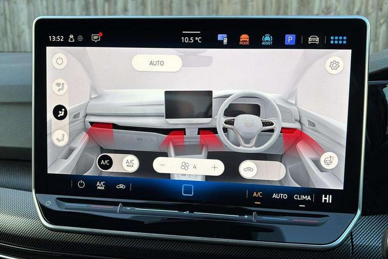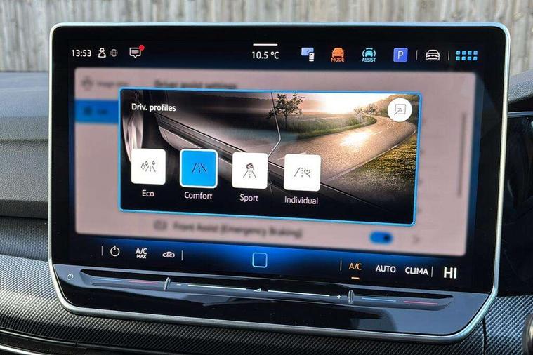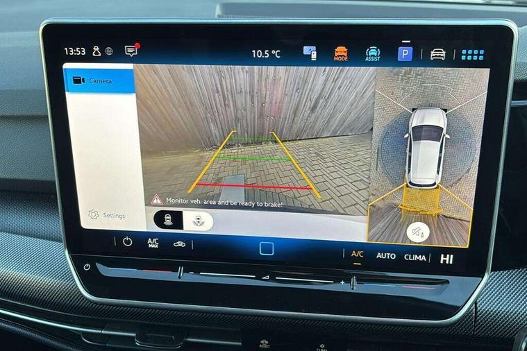 Activated carbon canister, Adaptive cruise control (ACC), Advanced driver attention and drowsiness monitor, Dynamic road sign display, Dynamic steering, E-Sim card for online connectivity, eCall emergency call system, Multi-color Digital cockpit pro, selection of different info profile possible, Multifunction front facing camera for distance control, Navigation system, Oncoming vehicle braking when turning including swerve support, Preparation for light assist system, Speed limiter, Speedo, rev counter, electronic odometer, trip, service interval display, exterior temperature and fuel gauge, Traffic jam assist, Voice enhancer and voice control, Warning signal and warning light for front and rear seatbelts not fastened, We connect plus preparation, We connect preparation, Wireless app connect, Diesel particulate filter, Hybrid propulsion system, Start-stop system with battery regeneration (recuperation - energy recovery during braking), XDS electronic differential lock for improved traction and handling, 2 USB C ports in front, 2 USB charging sockets on the centre console in the rear charging capacity upto 45W, Comfort telephony + wireless charging, without wireless aerial connection, Digital radio reception (DAB), Diversity antenna for FM reception, Gaming platform via car app, Infotainment system with 12.9" display, Mobile phone interface with inductive charging feature, 3rd brake light, Auto headlights, Automatic headlamp activation with Coming home and Leaving home feature, Body colored bumpers in R-Line style, Body colour door handles, Exterior ambient lighting with illuminated door handles, Exterior mirrors convex on the left and aspherical on the right, Front and rear electric windows, Heat insulating windshield made of laminated glass, LED daytime running lights, Rear exhaust tailpipe, Rear fog light on one side and reversing lights on both sides, Rear side wing doors, Rear windscreen washer and wiper with interval delay, Remote electrically foldable door mirrors, puddle lights and reverse activated passenger's door mirror, Welcome light with surround lighting, 12V socket in front centre console, 12V socket in luggage compartment, 3 rear head restraints, 3 seat bench in 2nd row, Ambient lighting with 30 colour including LED light unit in front footwell with selectable light colour, Brushed stainless steel pedals, Carpet mats, front and rear, Chrome plated radiator grille inserts, air vent surrounds and light switch surrounds, Front centre armrest, Integrated front head restraints, ISOFIX anchors for child seats on outer rear bench seats and on front passanger seat compatible for i-Size, Luggage compartment lighting, Plastic gear knob, Premium sports seats in front, Rear cupholder and loadthough, Single front passenger seat, Soul black instrument panel, Split folding backrest with centre armrest and unsplit rear seat bench, Storm grey roof lining, Sun visors with illuminated vanity mirrors, 3 point height adj front seatbelts + pretensioners, 3 rear three point seatbelts, ABS, Autonomous emergency braking front assist with pedestrian and cyclist monitoring, Child locks on rear doors, Driver and front passenger airbag with front passenger airbag deactivation, Electronic parking brake with auto hold, ESC (Electronic Stability Control), Extended pedestrian protection measures, Hill start assist, Rear disc brakes, Two tone horn, Tyre pressure loss indicator, Volkswagen roadside assistance, Anti theft wheel bolts, Preparation for alcohol interlock, Decorative inserts carbon grey for dashboard and front door trim panels,
