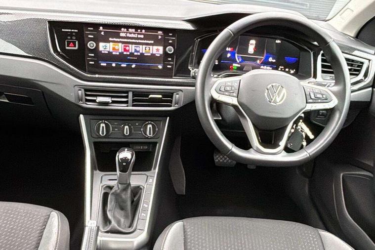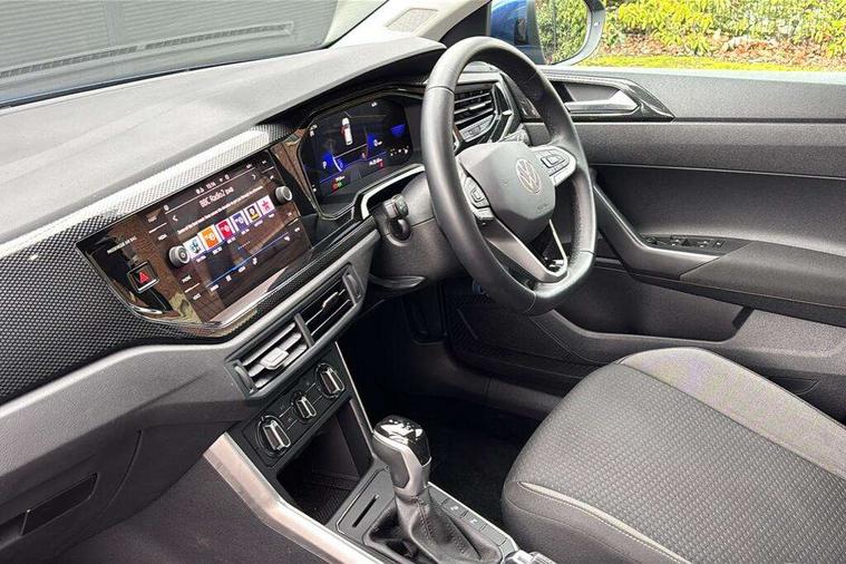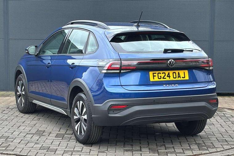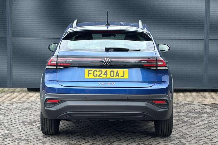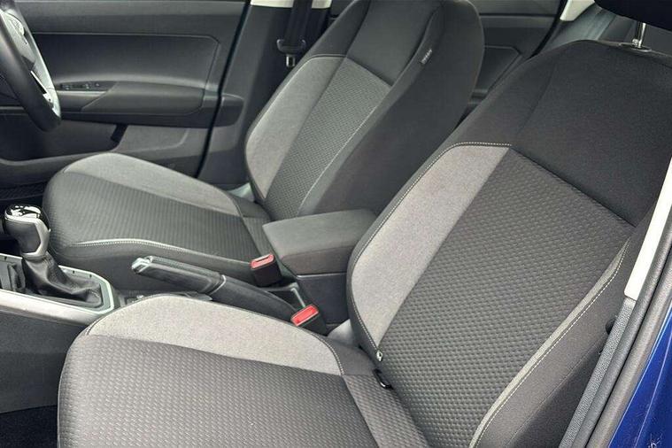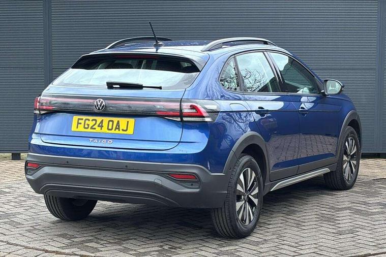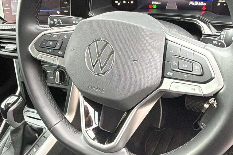 Advanced driver attention and drowsiness monitor, e-Call (emergency call), Power Steering, Travel assist including emergency assist, Washer fluid level indicator, Wireless Charging including Bluetooth, Start-stop system with battery regeneration (recuperation - energy recovery during braking), WeConnect plus, Ambient lighting with logo projection, Aspherical driver's exterior mirror, Auto headlights, Body coloured bumpers, Body coloured exterior mirror housings and door handles, Electric windows, External USB type C socket and charging sockets, Heat insulating glass windscreen, LED rear combination lamp, LED third brake light, Left convex exterior mirror, Power folding adjustable/heated exterior mirrors and front passenger exterior mirror lowering function, Rear fog light on one side, reversing light on both sides, Rear side wing doors, Rear wash/wipe with intermittent wipe setting, 'Slash/ Austin' Cloth upholstery, 12V socket in centre console, 2 front reading lights, 3 rear head restraints, 3 seat bench in 2nd row, Black carpets, Child seat anchor for child seat system i-Size, 2x top tether and child seat anchor in front on front passenger side, Door and side trim panels in titan black, Driver and front passenger seat height adjustment, Front centre armrest, Height and reach adjustable steering wheel, Leather trimmed gear knob, Leather wrapped multifunction steering wheel with paddle shift, Luggage compartment floor, Luggage compartment light, Lumbar support for driver's and front passengers seat, Seat covers in titanium black, Single front passenger seat, Split folding backrest with centre armrest and unsplit rear seat bench, Storage compartment under front seats, Sun visors with illuminated vanity mirrors, Chrome Package - Taigo, Drivers assistance pack - Taigo, Light and Sight pack including High beam assist - Taigo, 2 x 3-point seatbelts/outer rear seats with ECE label, 3-point seat belts in front with pretensioner and height adjustment, 3-point seatbelt for centre rear seat, Adaptive driver and front passenger airbags with passenger airbag deactivation function, Driver and front passenger safety-optimised head restraints, Electronic stability control, Extended and predictive pedestrian/ cyclist protection, Front and rear disc brakes, Front curtain and side airbags with center airbag, Hill start assist, Manual rear child locks, Single tone horn, Tyre pressure loss indicator, Anti-theft alarm system with interior monitoring, backup horn, and towing protection, Anti-theft wheel bolts, Lava stone black gloss/matt decorative inserts in dash and front door panels, Low rolling resistance tyres,