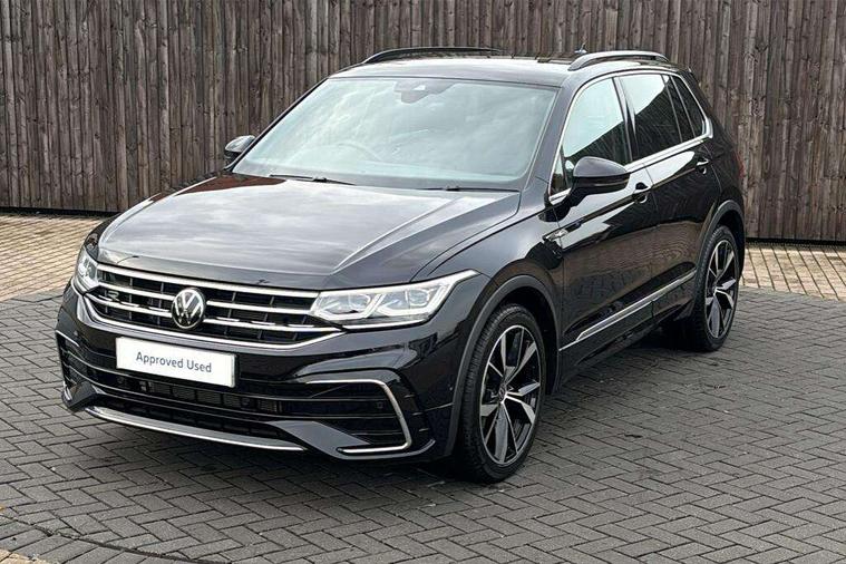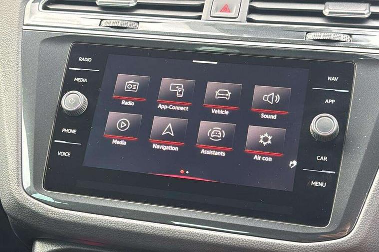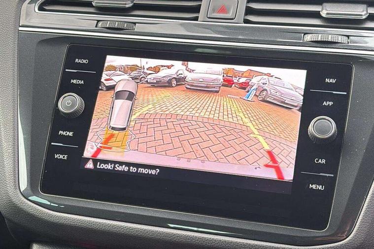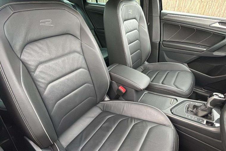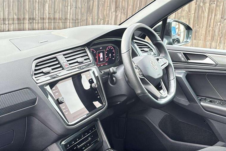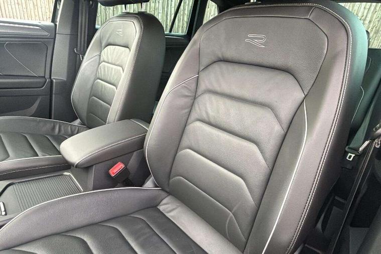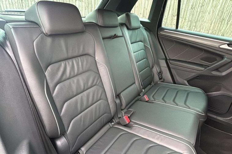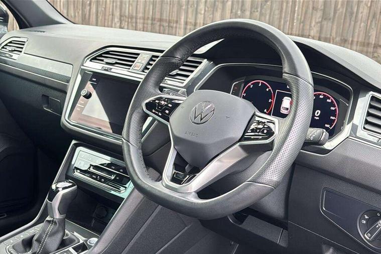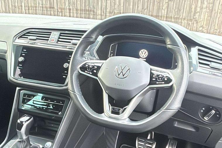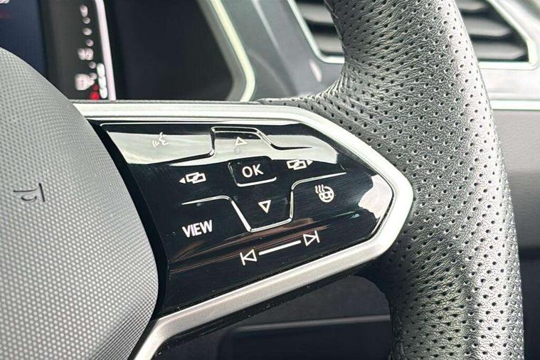 Adaptive cruise control ACC stop and go including speed limiter, App-Connect incl. App-Connect Wireless for Apple CarPlay and Android Auto, Bluetooth phone integration system, Comfort drive travel assist, Digital cockpit pro, Driver alert system, Driver profile selection, Dynamic road sign display, eCall emergency call system, Electromechanical speed sensitive power steering, Emergency assist, Front and rear parking distance sensors, Instrument cluster mph speedometer Great Britain, Lane keeping system Lane Assist, Lights on warning, Multifunction front facing camera, Outside temperature display, Premium multifunction display with multi colour display, Rev counter, Service interval indicator, Speed limit display, Start/stop system with regenerative braking, Trip computer, Warning sound and light for doors and tailgate open, Battery regeneration during braking, Digital radio reception DAB+, Diversity antenna for FM reception, Radio, Auto dimming interior rear view mirror, Automatic headlight control system, Body colored bumpers in R-Line style, Body colored exterior mirror housings, Body colour door handles, Chrome moldings on the side windows, Coming/leaving home lighting function, Dynamic headlight range control, Front and rear electric windows, Heated rear window, High level 3rd brake light, Laminated safety glass windshield, heat and sound insulating, LED rear combination lamps, LED rear number plate lights, License plate carrier in front and rear, Poor weather light and cornering light, Privacy glass for rear side windows and rear window, R Line body kit, R Line side sills, Rain sensor, Rear exhaust tailpipe, Rear fog lamp, Rear side wing doors, Rear spoiler in R style, Rear windscreen washer and wiper with interval delay, Side and rear windows in heat insulating glass, Trailer Stability Programme, Unique R Line badging, Windscreen wipers/ intermittent wipe + 4 position delay, 12V outlet in center console rear and in luggage compartment, 12V outlet in front and tray, 2 LED front reading lights, 2 LED rear reading lights, 3 bench rear seats in 2nd row, 3 rear headrests, Air Care Climatronic 3 zone automatic climate control with enhanced air filter and controls in the rear, Backrest release for left front seat, Black headlining, Brushed stainless steel pedals and footrest, Carpet mats in front and rear with decorative stitching in Gray, Climate control unit rear with touch function, Door and side trim panel in foam film, insert in leatherette, Front footwell illumination, Front scuff plates in aluminum with R-Line logo, Front seats head restraints (x-adjustment), Height/reach adjust steering wheel, Isofix Preparation 2 Rear child seats, Leather gear knob, Rear bench seat asymetrically split folding, longitudinally movable and folding with load-through hatch and center armrest, Remote unlocking for rear seat backrest, Single front passenger seat, Sun visors with illuminated vanity mirrors, Tool kit, Driver assistance pack plus - Tiguan DSG, 3 point seat belt for centre rear seats, 3 point seat belts with seat belt pretensioners for the outer rear seats, Curtain airbags for front and rear passengers, Driver/Front Passenger airbags, Drivers knee airbag, Electronic parking brake with auto hold, Electronic Stability Control with driver steering recommendation, ABS, ASR, EDL, EDTC and trailer stabilization, Front assist with autonomous emergency braking (for Adaptive Cruise Control ACC up to 130 mph), Front disc brakes, Front passenger airbag deactivation, Front side airbags, Height adjustable front 3 point seatbelts + pretensioners, Manual child proof rear door locks, Pedestrian monitoring system, Proactive passenger protection system in combination with front assist, Rear disc brakes, Two tone horn, Warning sound and light for front seat belts if unfastened, Warning triangle, Anti theft alarm system with interior monitoring, backup horn and towing protection, Anti theft wheel bolts, Electronic engine immobiliser, Chrome elements on the mirror switch power window switches and door pulls, Decorative inserts Carbon Gray for dashboard and front door trim panels, Interior door handle in matte chrome,