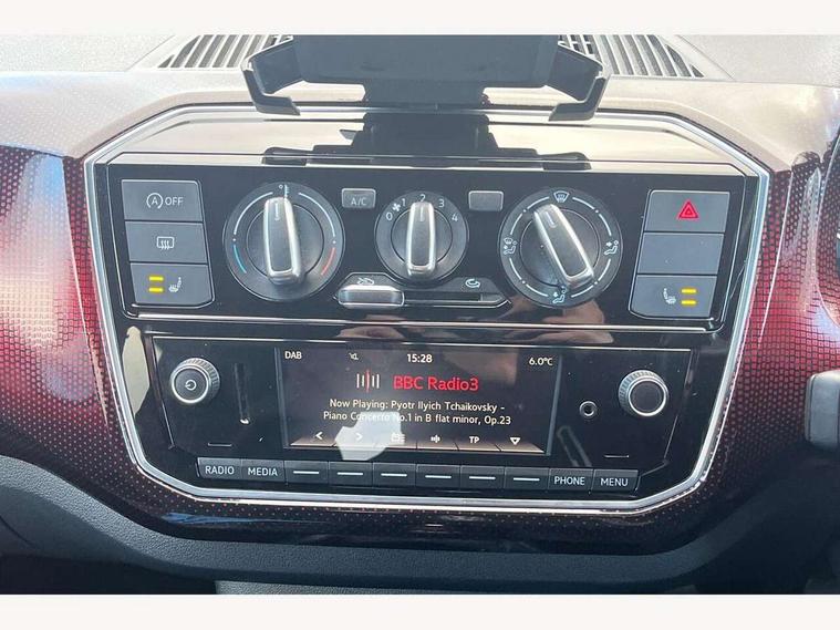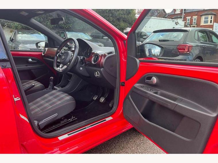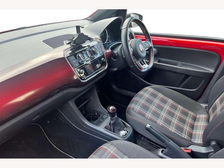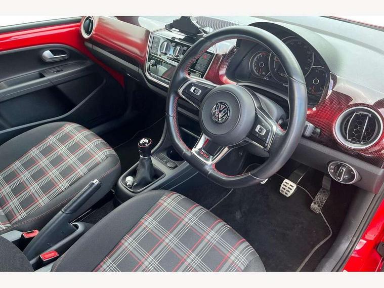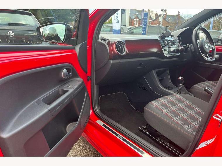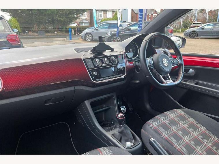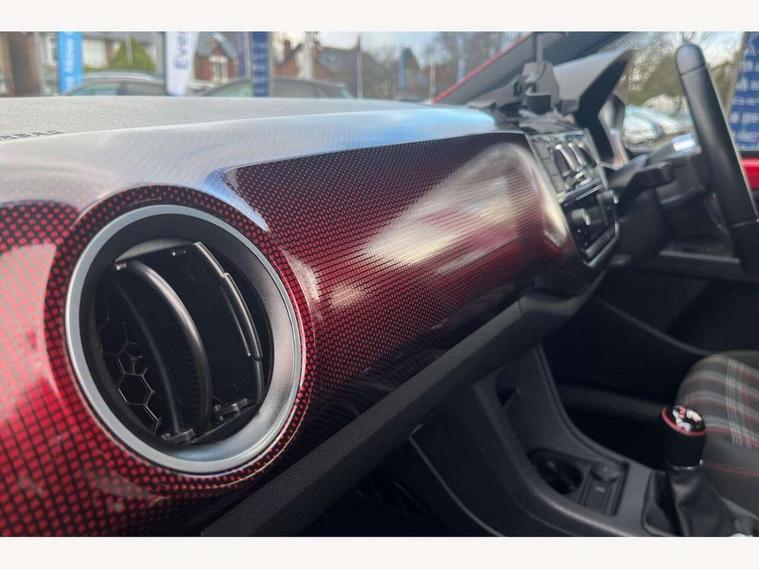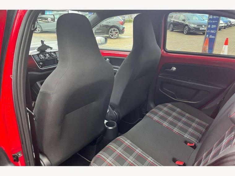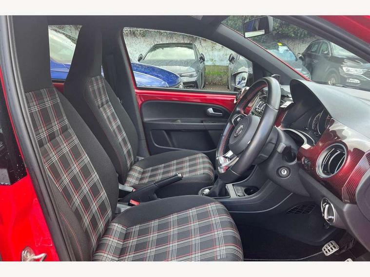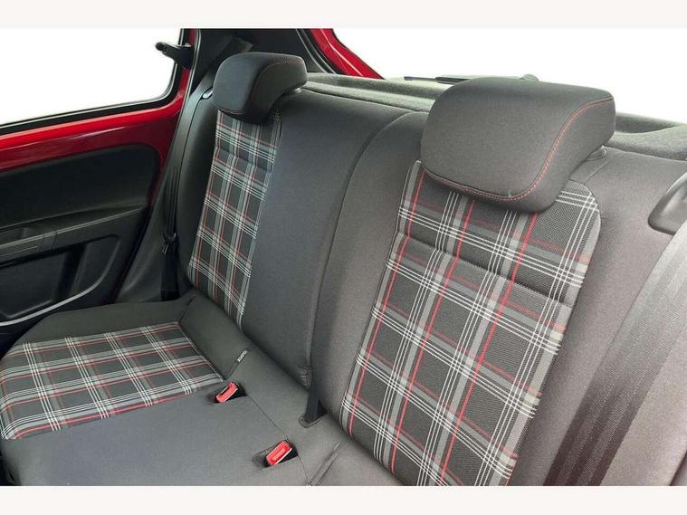 'Lights On' Reminder warning buzzer, Digital clock, Instrument cluster in chrome, Multi function computer, Rev counter, Service interval indicator, Speed sensitive power steering, Speedometer, electronic odometer and fuel gauge, Battery regeneration during braking, Galvanished body, Sports suspension, Composition colour system with 5" screen, DAB, AUX in socket, SD card, MP3/WMA/AAC, 4 X 20W, bluetooth, audio connection and USB connectivity, Smartphone interface navigation with USB Connection, Twin tuner, Aspherical driver's exterior mirror, Body colour door handles, Body coloured bumpers, Chrome exhaust tailpipe, Chrome headlight surround, Chrome trim on air conditioning panel, Electric front windows, Front wash/wipe with interval delay, Gloss black door mirrors, Gloss black rear tailgate spoiler, GTI badging on front wings, rear tailgate and front radiator grille, Halogen clear headlights with integrated indicators and range adjustable, Heat insulated tinted glass 65% light absorbing from B pillar back, Heat insulating tinted glass, Heated rear window, High level 3rd brake light, LED daytime running lights, LED rear number plate lights, Manually dimming rear view mirror, Rear fog lights, Rear windscreen washer and wiper with interval delay, Red Stripe on lower tailgate, Red stripe with chrome detailing on lower radiator grille, Sports bumpers, Stainless steel door sill protection, 12V accessory power point in centre console, 2 cupholders, 60/40 split folding rear seat, Ambient lighting, Black roof lining and sun visors, Chrome interior door handles, Delay courtesy light function, Driver seat height adjust, Dust/pollen filter, Front + rear carpet mats, Front head restraints, Front sports seats, Glovebox, Height adjustable rear head restraints, Height adjustable steering wheel, Isofix Preparation 2 Rear child seats, Jacara cloth upholstery, Luggage compartment cover, Luggage compartment lighting, Multifunction leather trimmed three-spoke steering wheel, gear knob and handbrake grip, Storage compartment in front doors, Tool kit, Variable boot floor, GTI styling pack - Up, Red 2D Pixels dash pack - Up, Winter pack - Up, 3 point height adj front seatbelts + pretensioners, ABS, Driver and passenger airbags, Driver/front passenger side airbags, ESP with EDL + ASR, Front thorax airbags, HBA (Hydraulic Brake Assist), Hill hold control, Red brake calipers, Seatbelt warning lamp and buzzer, Two 3 point rear seatbelts, Tyre pressure warning, Volkswagen roadside assistance, Electronic engine immobiliser, Locking fuel filler cap, Remote central locking with 2 remote folding keys, Chrome air vent surrounds, Chrome-plated light switch surround, 17" Oswald black diamond turned alloy wheels and anti theft wheel bolts, Full size wheel trims, Tyre mobility system,