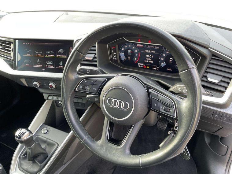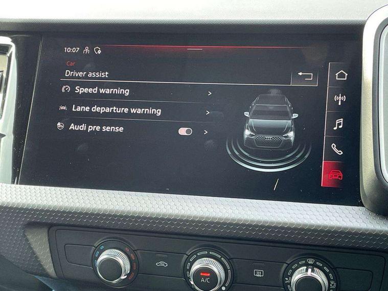 10.25" Digital instrument cluster display classis style instrument dials + speed, odometer, time, outside temperature, telephone menu + fuel level warning, Audi drive select - power steering assistance + engine, Audi smartphone interface with connect compatible smartphone via USB directly MMI display + Nav, music, third party apps controlled via MMI controller, Automatic start/stop system, Bluetooth interface, Cruise control, Driver's information system, Electromechanical power steering, Emergency e-call, Lane departure warning system, Rear parking sensor, Service interval indicator, Speed limiter, Voice control system, Washer fluid level indicator, Dynamic suspension, 2 x USB type C connection points, 6 passive loudspeakers, DAB Digital radio, MMI radio plus with 10.1" colour MMI display screen and MMI touch, Auto dimming rear view mirror, Body coloured bumpers, Body coloured door mirrors, Electric front and rear windows, Electrically adjustable, heated, folding door mirrors with integrated LED side indicator, Front side air inlets in grained matt black and C frame in anthracite black, Heat insulating glass windscreen and side windows, Heated rear windscreen, High level LED brake light, LED headlights with LED rear lights + dynamic rear indicators + headlight adjustment and high beam, turning light + LED daytime running lights, Radiator grille and rear diffuser in matt anthracite black, Radiator protective grille frame in matt aluminium silver, Rain and light sensors, Rear fog lights, Rear side wing doors, Rear wiper, Side front spoiler lips in grained matt black, 12V socket in centre console with two cup holders, 3 rear seats with headrests, 3 seat bench in 2nd row, 3 spoke leather multifunction plus steering wheel, 40:60 Split folding rear seat or folded fully, Black front and rear floor mats, Door sill trims with aluminium inlay, Driver and passenger seat with manual height adjust with forward and backwards adjustment, Front head restraints, Front passenger seat, Grey cloth headlining, Height and reach adjustable steering wheel, ISOFIX child seat mounting for front passenger and outer rear seats including top tether attachment point of outer rear seats, Leather gear knob with aluminium trim, Leather handbrake grip, Luggage compartment light with front and rear reading lights, Manual air conditioning, Manually adjustable lumbar support in front seats, Novum cloth upholstery with front sport seats, Luggage compartment pack - A1, 3x3 point rear seatbelts, Audi pre-sense front with pedestrain and cyclist recognition, Brake assist function, Driver and front passenger airbag with front side and head airbags, Electronic Stability Control including ABS, EBD, ASR and EDL, Front passenger airbag deactivation switch, Hill hold assist, Manual rear child locks, Seatbelt height adjustment for front seats, Seatbelt monitoring, Tyre pressure warning light, Warning triangle and first aid kit, Anti theft alarm, Anti theft wheel bolts and loose wheel warning, Immobiliser, Remote central locking with 2 foldaway keys, Aluminium trim for control switches, air vents and digital instrument cluster, Black dashboard, Silver grey accent areas including air vents, door handle recesses and centre console in diamond paint finish, Slate grey inlays polygon structure in fine paint finish,