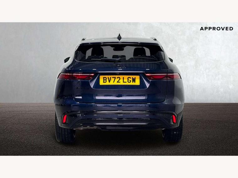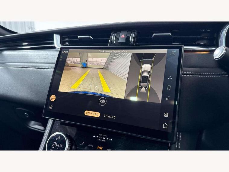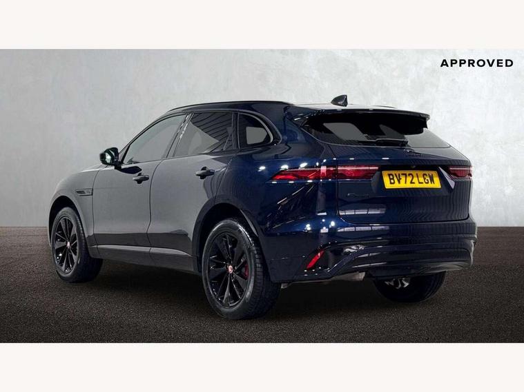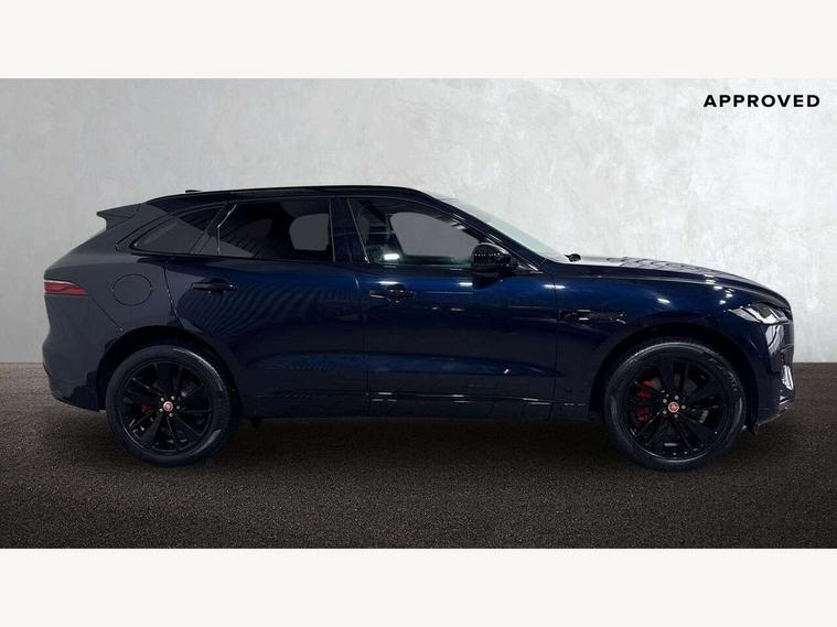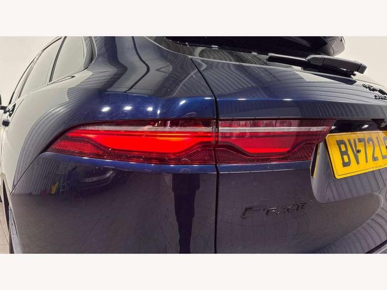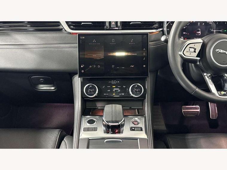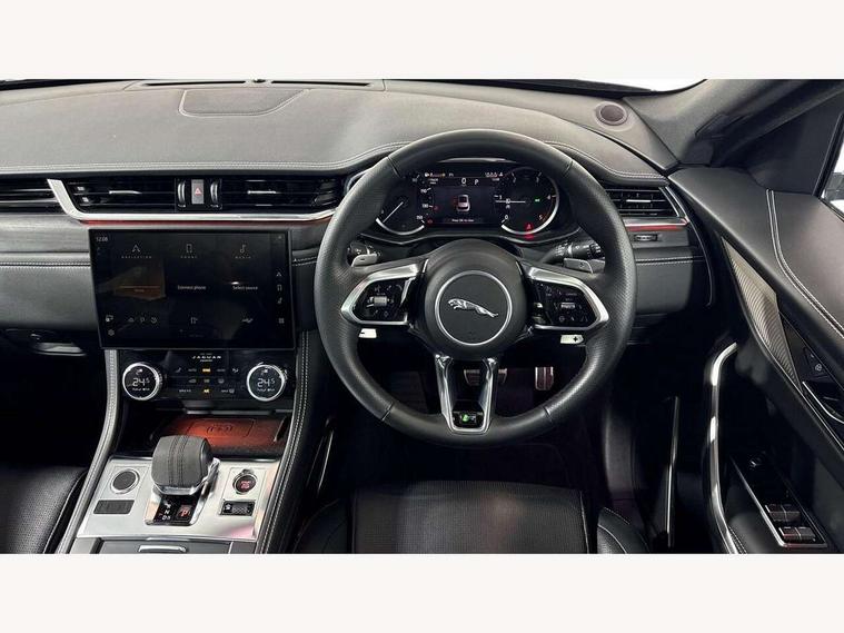 11.4" touchscreen, Android Auto, Apple car play, Bluetooth connectivity, Driver alert system, Driver condition monitor, eCall emergency call system, Eco driving style assistant, Electric power assisted steering, InControl remote, Jaguar Toggle shift selector, Lane departure warning system, Lane keep assist, Outside temperature gauge, Personalisation profile management, Pivi pro connected navigation system with app interface and media storage, Pro services and wifi hotspot, Push button starter, Service interval indicator, Speed proportional steering, Start up sequence with movement in dials and lighting, Traffic sign recognition with adaptive speed limiter, Trip computer, Voice control system, 8 speed automatic transmission, All terrain progress control, All Wheel Drive (AWD), Open differential with torque vectoring by braking, AM/FM radio, Bluetooth streaming, DAB Radio (Digital Audio Broadcasting), Dynamic volume control, InControl apps, InControl protect, iPod integration, 3 flash lane change indicators, Animated directional indicators, Approach Illumination, Auto dimming rear view mirror, Automatic headlights, Electric windows with one touch open/close and anti trap, F-Pace and R Dynamic badge, Gloss black door mirrors, Gloss black roof rails, Green tinted glass, Heated front windscreen + heated washer jets, Heated rear window with timer, Jaguar script and leaper, LED High level third brake light, LED tail lights, Non acoustic front windscreen, Privacy glass, R Dynamic badge on side door, Rain sensor windscreen wipers, Rear fog lights, Rear metal tread plates, Rear side wing doors, Rear wiper, Trailer stability assist, Variable front intermittent wipers, 12V power point front, 3 rear headrests, 3 seat bench in 2nd row, Air distribution speed, Bright metal foot pedals, Centre armrest console, Centre console with side storage, Deletion loadspace storage rails, Door sill tread plates, Fold flat front seats, Front centre armrest with storage compartment, Front door storage space, Glovebox finisher with jaguar script, Heated steering wheel, Hooks in loadspace, Illuminated glovebox, Interior front door handles with separate locking switches, ISOFIX on outer rear seats, Jaguar sense, Luggage tie downs in loadspace, Mist sensing, Multifunction steering wheel, Overhead lighting console, Overhead stowage for sunglasses, Passive front head restraints, Premium cabin lighting, Premium carpet mats, R-Dynamic branded leather steering wheel, Rear air vents, Rear armrest with twin cupholders, Rear centre headrest, Rear door storage space, Reversible boot floor, Satin chrome gearshift paddles, Shopping bag hook, Single front passenger seat, Sunvisors with illuminated vanity mirrors, Twin front cupholders with cover, Black Exterior pack - F Pace R-Dynamic/Sport, Exterior pack - F Pace R-Dynamic, Online Pack with data plan - F-Pace, 355mm front brakes and 325mm rear brakes, 3x3 point rear seatbelts, ABS, All surface progress control (ASPC), Brake pad warning light, DSC - Dynamic Stability Control, Electric parking brake (EPB), Emergency brake assist, Front airbags with passenger seat occupant detector, Front and rear seatbelt reminder, Front side airbags, Full length side window curtain airbag, Hill launch assist, Power operated child locks, Torque vectoring brake, Traction control, Tyre pressure monitoring system, Immobiliser, Keyless start, Locking wheel nuts, Perimeter alarm, Remote central locking, Valet mode,