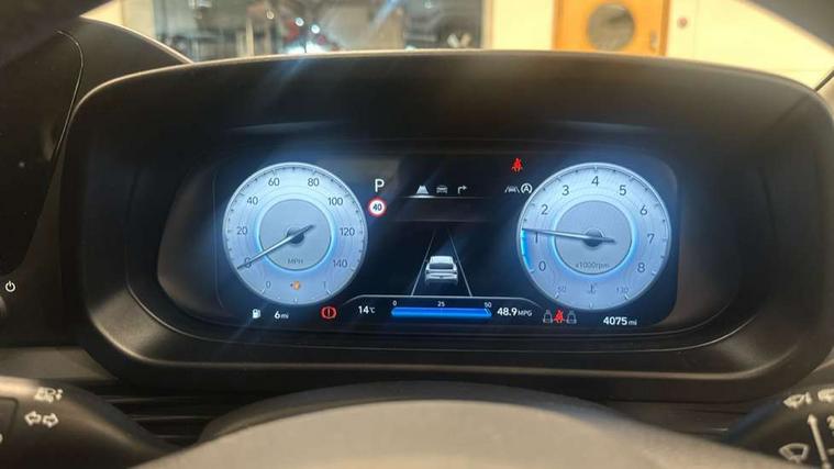 10.25" touchscreen + navigation, 2nd Gen eCall, 8" Touchscreen DAB Radio with android auto and apple carplay, Cruise control + speed limiter, Forward collision assist with car, pedestrian and cycle detection, Intelligent speed assist, Intelligent speed limit warning, Lane follow assist, Lane keep assist, PAS, Rear parking sensor, Rear view camera with dynamic guidelines, USB C port front, Automatic headlights with dusk sensor, Electric adjustable heated door mirrors, Front grille mesh pattern design, High beam assist, LED 3rd brake light, LED daytime running lights, LED Headlights, LED taillights, Rain sensor, Rear side wing doors, Rear wiper, Repositioned flat metal hyundai emblem, Trailer wiring, 3 seat bench in 2nd row, Adjustable head restraints, Air conditioning, Cloth upholstery, Floor mats, Leather steering wheel, Single front passenger seat, 3x3 point rear seatbelts, ABS with front and rear diagonally split, Autonomous emergency braking, Child locks on rear doors, Front ventilated disc brakes, Rear solid disc brakes, Tyre pressure monitoring system, 16" alloy wheels, Tyre repair kit,