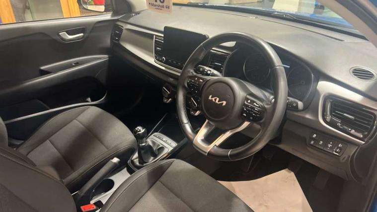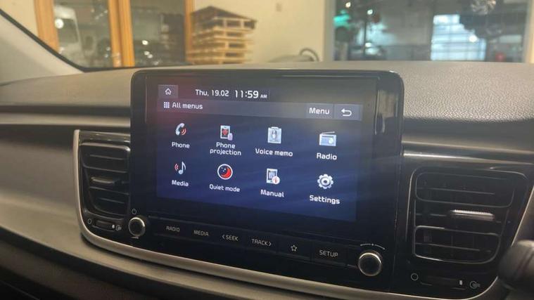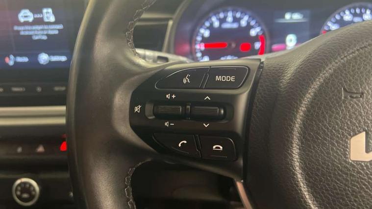 8" touch screen, Apple car play/Android Auto, Cruise control + speed limiter, Digital clock, Electric power steering, Emergency stop signalling system, Gear selection indicator, Manual speed limit assist (MLSA), Outside temperature display, Rear parking sensor, Reversing camera system with dynamic guidelines (Integrated into centre fascia screen), Tachometer, Trip computer, Voice control system, Windscreen washer level indicator, Intelligent Stop and Go, 6 speakers, Bluetooth connectivity including audio streaming, DAB Digital radio, Front USB port for media connection, Rear USB port, Steering wheel mounted audio controls, Aeroblade-type front wipers, Automatic lighting control, Bi-function projection headlights, Black grille with chrome surround, Body colour bumpers, Body colour door handles, Body coloured door mirrors, Cornering light, Electric adjustable/heated/folding door mirrors, Front electric windows with driver's auto up/down function, Headlamp levelling, Heated rear window, LED daytime running lights, LED indicators in door mirrors, Projection front fog lights, Projection headlights, Rear electric windows, Rear fog lamp, Rear wash/wipe, Speed variable front wipers, Tinted glass, Welcome home function, 3 passenger assist grips, 60/40 split/folding 2nd row of seats, Air conditioning, All round height adjustable headrests, Centre Console with Storage Box and Sliding Armrest, Dash illumination dimmer switch, Driver's seat height adjuster, Driver/passenger sunvisors and illuminated vanity mirrors, Front and rear door map pockets with bottle holder, Front passenger seatback pockets, Front USB charger port and 12V socket, ISOFIX top tethers and lower anchor points, Leather trimmed gearshift, Leather trimmed steering wheel, Load area light, Luggage area parcel shelf, Luggage hooks, Overhead console with sunglasses holder, Premium cloth upholstery, Silver interior door handles, Tilt/telescopic adjustable steering wheel, Advanced driving assistance pack - Rio, 3-point front seatbelts, 3x3 point rear seatbelts, ABS with Electronic Brakeforce Distribution (EBD) and Brake Assist System (BAS), Automatic unlocking of doors in case of impact, Cornering brake control (CBC) and Straight line stability (SLS), Electronic stability control (ESC) and vehicle stability management (VSM), Front seatbelt pretensioners + load limiters, Height adjustable front seatbelt anchors, Hill start assist control (HAC), Passenger airbag deactivate switch, Rear child proof door locks, Seatbelt warning, Traction control, Twin curtain airbags, Twin front airbags, Twin front side airbags, Tyre pressure monitoring system, Anti theft alarm, Deadlocking system, Engine immobiliser, Locking wheel nuts, Remote central door and tailgate locking with fold-away key, Speed sensitive auto door locking, Visible vehicle identification number, Silver fascia trim, 15" Alloy wheels, Tyre mobility system,