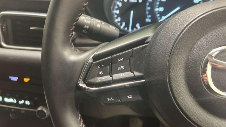 10.25" display with Mazda Connect infotainment, 7" colour TFT display, Advanced blind spot monitoring, Bluetooth connectivity with voice control, Collision prevention assist, Connected services, Cruising Traffic Support, Electric power steering, Emergency stop signalling system, Engine start/stop button, Forward collision warning, Front and rear parking sensors, Integrated navigation system, Intelligent speed assist, Lane departure warning system, Lane keep assist, Power liftgate, Qi wireless phone charging, Radar cruise control, Rear cross traffic alert, Reversing camera, Service indicator, Traffic sign recognition (TSR), Trip computer, Windscreen projected colour active driving display (HUD) with memory, Wireless apple car play/android Auto, Cylinder Deactivation, i-stop, AM/FM radio, Bluetooth audio streaming, Bose premium sound system with 10 speakers, DAB Digital radio, Multimedia Commander including separate volume dial, Steering wheel mounted audio controls, Adaptive front lighting system, Auto dimming rear view mirror, Automatic headlights, Black honeycomb door trim decoration panel, Black honeycomb interior decoration panel, Body colour roof spoiler, Coming/leaving home lighting function, Door mirror integrated indicators, Dual large chrome tailpipes, Dusk sensitive headlamps, Electric front/rear windows with one touch auto up/down, Front grille in gloss black finish, Front grille in gloss black with red accent + gloss black signature wing, Gloss black B and C pillars garnish, Gloss black door mirrors, Gloss black front and rear lower bumper mouldings, Gloss black tire arch and side mouldings, High beam assist, Intermittent rear wash/wipe, LED auto levelling, LED daytime running lights, LED front fog lights, LED Headlights, LED third brake light, Power folding and heated door mirrors, Power tilt/slide sunroof, Privacy glass (rear side windows only), Rain sensing front wipers, Rear side wing doors, Red front grille accent, Red stitching and accents on door trim, knee pad, console lid, steering wheel, shift boots, Scuff plates, Shark fin antenna, Signature LED rear combination lights, Variable intermittent front wash/wipe, Windscreen wiper de-icer, 12v electrical power outlet, 3 seat bench in 2nd row, 3 stage heated front seats, 40:20:40 Karakuri fold-flat seat system, 6 way electric adjustable passenger seat, 8 way electric driver seat with lumbar support + memory, Black roof lining, Cargo room flat floor board with waterproof undertray, Driver seat power slide, recline and height adjustment, Driver, Front passenger and two rear grab handles with coat hooks, Driver/passenger front seatback pockets, Driver/passenger sunvisors + illuminated vanity mirrors (drivers with ticket holder), Dual zone climate control, Folding centre armrest with 2 cup holders, Front and rear door pockets, Front centre storage with two cupholders, Front passenger seat power slide, recline and height adjustment, Gear shift indicator, Heated steering wheel, Humidity sensor, Illuminated glovebox, Interior dome light with integral spotlight, ISOFIX child seat anchorage points attached on outer rear seats, Karakuri tonneau cover, Leather upholstery, Leather wrapped steering wheel and gear knob, Luggage compartment LED lighting, Luggage compartment power outlet, Rear air vents, Rear headrests, Rear seat recline, Roof mounted sunglasses holder, Single front passenger seat, Three height adjustable head restraints, Tilt/height adjustable steering wheel, USB Connectivity (2x front Type-C, 2x rear Type-B), White interior LED illumination lighting, 3 point front seatbelts with pre-tensioners, 3 rear 3 point seatbelts, ABS, Advanced Smart City Brake Support - SCBS, Child locks on rear doors, Driver and front passenger side airbags, DSTC-Dynamic Stability and Traction Control, Dual front airbags, Electronic brake force distribution, Electronic parking brake with auto hold, ESP, Front and rear curtain airbags, Front passenger airbag deactivation, G-Vectoring control, Hill hold assist, Seatbelt reminder front and rear, Single stage passenger airbags, Smart brake support with forward obstruction warning, Tyre pressure monitoring system, Automatic door locking when moving off, Deadlock, Immobiliser, Power door locks, Remote central locking, Smart keyless entry, Thatcham Cat.1 alarm, 19" Black alloy wheels, Tyre repair kit,