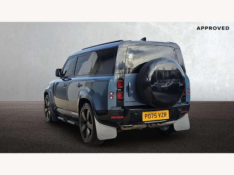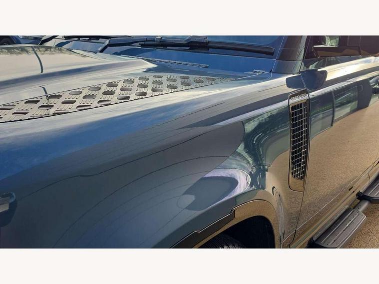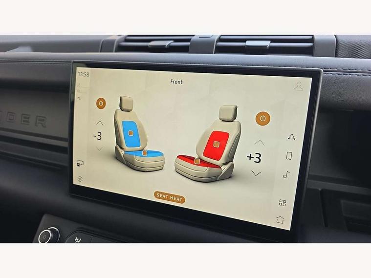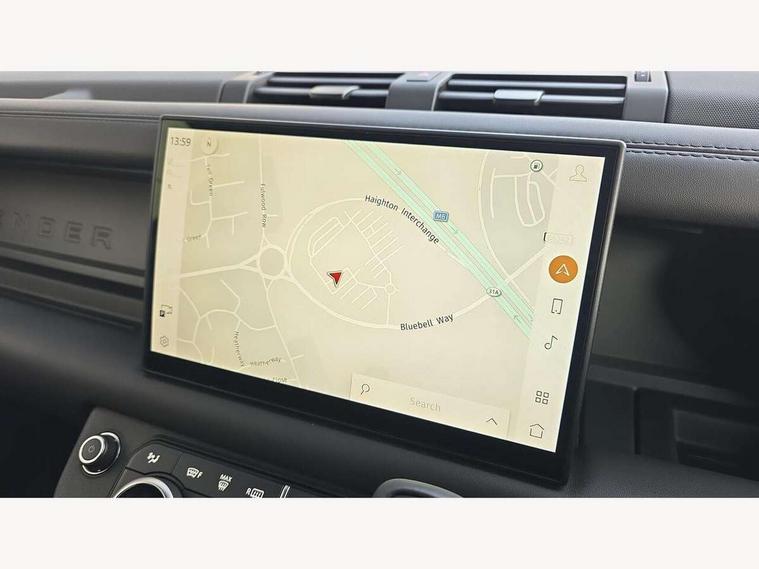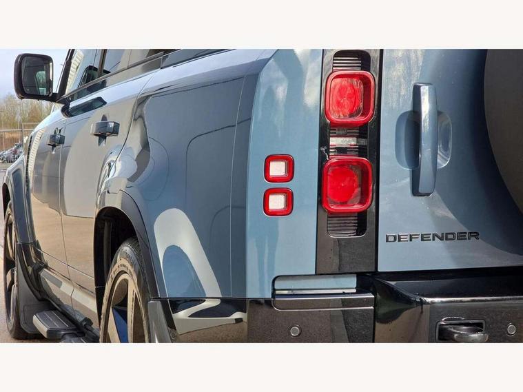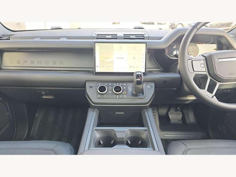 1 x USB-C (power only) & 1 x USB-C (power & data) in Row 1, 2 x USB-C in Row 2, 11.4" touchscreen, 2 x USB-C in Row 3, 360 degree parking aid, 3D Surround Camera with 360 View, 180 Rear View, Front Traffic Detection, Forward Vehicle Guidance, Tow Hitch Assist and clear sight Ground View, Adaptive cruise control, Android Auto, Apple CarPlay, Blind spot assist, Bluetooth system, Brake pad wear indicator, Clear exit monitor, Connected navigation pro, Driver condition monitor, Electric power assisted steering (EPAS), Interactive driver display, Lane keep assist, Push button start, Rear collision monitor, Rear traffic monitor, Traffic sign recognition with adaptive speed limiter, Trip computer, Wireless device charging, 8 speed automatic transmission, All wheel drive system, Twin speed transfer box, DAB Radio (Digital Audio Broadcasting), Meridian 700w surround sound audio system with 15 speakers, Pivi pro connected, Automatic headlight levelling, Automatic headlights, Black exposed rear recovery eyes, Body coloured bonnet, Centre high mounted stop light, Electric heated/power fold door mirrors with approach lights and auto dimming driver side, Electric windows with one touch open/close and anti-trap, Follow me home lighting, Front fog lights, Heated rear window with timer, Heated windscreen, Illuminated metal treadplates with brand name script, LED tail lights, Matrix LED headlights with signature DRL, Privacy glass, Puddle lights, Rain sensing windscreen wipers, Rear fog lights, Rear side wing doors, Rear wiper, Side hinged tailgate, Sliding panoramic roof, Standard tail door, Trailer stability assist, X-Dynamic badge, 12V power socket in loadspace, 2 seat bench in 3rd row, 3 seat bench in 2nd row, Alpine lights, Configurable cabin lighting, Durable rubber cabin flooring, Durable rubber loadspace flooring, Electric reach + rake adjustable steering column, Electrically adjustable steering column, Extended leather upgrade, Footwell lights, Front head restraints, Front passenger isofix child seat attachment, Heated steering wheel, Loadspace cover, Loadspace Hook, Multifunction steering wheel, No flat load floor storage, Overhead stowage for sunglasses, Rear headrests, Rear ISOFIX, Rear reading lights, Single front passenger seat, Soft close tail door, Storage glovebox, Sunvisors with illuminated vanity mirrors, Twin front cupholders, Air suspension pack - Defender SE/HSE/X-Dynamic SE/X-Dynamic HSE, Non-smoker package, Online pack with data plan - Defender, 7 three point seatbelts, ABS, Brake hold function, Cornering brake control (CBC), Customer configurable autolock, Driver and passenger airbags, DSC - Dynamic Stability Control, EBD - Electronic brakeforce distribution, Electric parking brake (EPB), Emergency brake assist, Emergency braking, ESP + traction control, Front airbags with passenger seat occupant detector, HDC - Hill descent control, Hill launch assist, Low traction launch, Power operated child locks, Remote for (e-Call, Optimised assistance call, InControl app, Climate, beep and flash and door), RSC - Roll stability control, Seat belt reminder, TPMS (Tyre pressure monitoring system), Alarm, Immobiliser, Intrusion sensor, Keyless entry, Locking wheel nuts, Secure tracker pro,