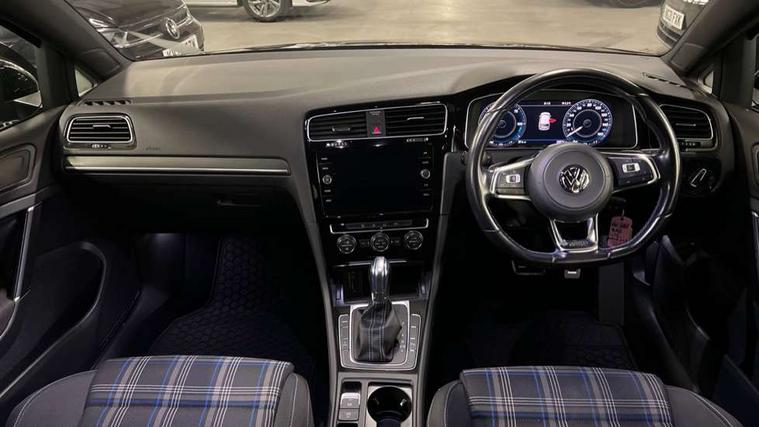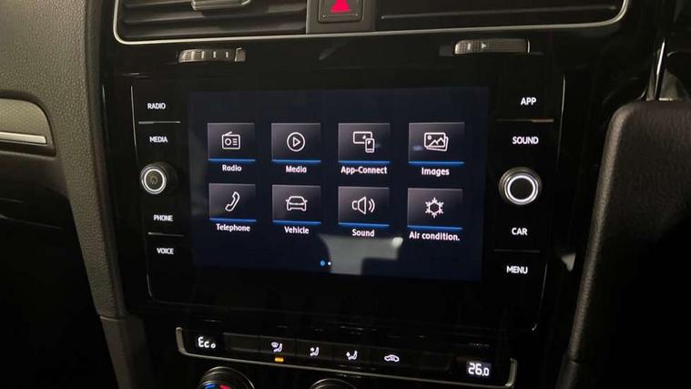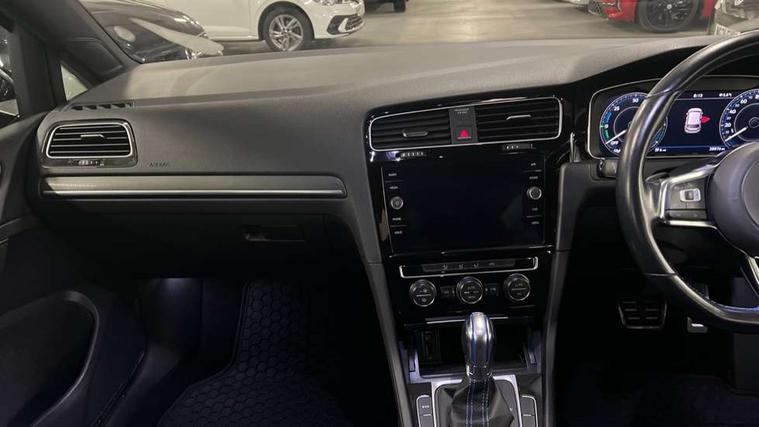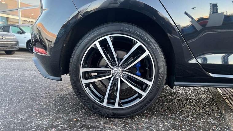 'Lights On' Reminder warning buzzer, 8" colour touch screen, ACC - Adaptive cruise control with front assist, forward collision warning, distance monitoring, city emergency brake and speed limiter, App-Connect, Bluetooth hands free telephone connection, Brake pad wear indicator warning light, Driver alert system, Driver profile selection, Exterior temperature gauge, Front assistant collision mitigation, Instrument cluster in white, Multifunction computer, PAS - speed related, Power assisted speed sensitive electro-mechanical steering, Rev counter, Stop/start system, Trip and service interval display, Ultrasonic front and rear optical and audible parking sensors, Warning buzzer and light for front seatbelts unfastened, Battery regeneration during braking, XDS electronic differential lock, CD/MP3/WMA, USB and SD card reader, aux-in, Composition media system, DAB Digital radio receiver, 3D-LED tinted rear light clusters with indicator sweep function, Automatic coming/leaving home lighting function and rain sensor, Automatic dimming rear view mirror/rain sensor, Automatic headlights, Black front air intake and radiator grille with chrome insert, Black rear diffuser, Body colour bumpers, Body colour door handles, Body colour door mirrors with integrated indicators, Chrome grille surround, Electric front windows, Electric rear windows, Electrically adjustable and heated door mirrors, Halogen headlights range adjustable via infotainment system with LED daytime running lights, Heated rear windscreen, High level 3rd brake light incorporating LED Technology, LED rear lights, Rain sensor, Rear number plate lights incorporating LED technology, Rear window aerial, Rear window wash/wipe with intermittent wipe, Reflectors in all doors, Side skirts, Tailgate with integrated rear roof spoiler, Twin exhaust tailpipe, Windscreen wipers/ intermittent wipe + 4 position delay, 12V socket in luggage compartment, 3 rear headrests, 60/40 split folding rear seat backrest, Air conditioning - 2 zone electronic climate control, Aluminium/leather gear knob, Bag hook in luggage compartment, Black headlining, Boot lashing points, Cooled glovebox, Courtesy light delay, Cover for storage compartment in centre, Driver/front passenger seat height adjustment, Dust/pollen filter, Front + rear carpet mats, Front centre armrest with storage compartment and two rear air vents, Front seat back storage pockets, Grab handles front x 2, rear x 2 with integrated coat hooks, Height/reach adjust steering wheel, Illuminated vanity mirrors, Instrument lighting white adjustable panel illumination, Isofix preparation for 2 rear child seats, Load through provision with rear centre armrest and cupholders x2, Luggage compartment cover, Luggage compartment light, Multifunction leather steering wheel with blue stitching, Multifunction leather steering wheel with leather trimmed gear knob including paddle shift, Overhead storage box, Stainless steel pedals, Storage box in luggage compartment, Storage compartments in doors, Storage compartments in front doors, Storage compartments in rear doors, Sun visors, Three spoke multi-function leather trimmed steering wheel and gearknob, Three spoke steering wheel, Ambient lighting pack - Golf, Mirror pack - Golf, 3 rear three point seatbelts, Anti-lock braking system (ABS), Automatic post collision braking system, Blue brake callipers, Child locks on rear doors, Driver/Passenger optimised head restraints, Drivers and Front Passengers airbags with front passengers airbag deactivation switch, Drivers knee airbag, Electronic stability control (ESC) including Electronic differential lock (EDL) and ASR (Traction control) with deactivation via infotainment system, Front and rear curtain airbags, Front seat side impact airbags, Hydraulic Brake Assist (HBA), Pre crash preventive occupant protection, Three point height adjustable front seatbelts with tensioners, Tyre pressure loss indicator, Alarm with interior protection, Electronic engine immobiliser, Remote central locking with 2 remote folding keys, Honeycomb black decorative inserts, Piano black centre console, 17" Rio de Janeiro alloy wheels with anti theft wheel bolts, Tyre repair kit,
