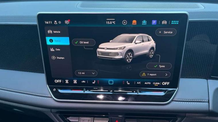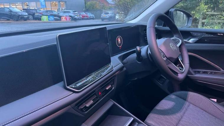 Adaptive cruise control (ACC), Advanced driver attention and drowsiness monitor, Bluetooth mobile phone interface, Car2X technology, Digital Cockpit Pro - 10.25" high resolution dash display screen with customisable menus and information, Dynamic road sign display, E-Sim card for online connectivity, eCall emergency call service, Front Assist - Autonomous emergency braking with pedestrian and cyclist monitoring, Lane change system, Side assist, Rear traffic alert and Exit warning system, Lane keeping system Lane Assist, Oncoming vehicle braking when turning including swerve support, Park assistance plus with front and rear parking sensors, Power assisted steering with speed sensitive, Start/stop system with regenerative braking, Warning signal and warning light for front and rear seatbelts not fastened, Wireless App-Connect, Adaptive chassis control DCC pro includes driving mode selection, Charging cable Mode 3 Type 2 / 3 (16A), Front shock absorption, Front wheel drive, Rear shock absorption, Digital radio reception (DAB), Diversity antenna for FM reception, Auto dimming interior rear view mirror, Automatic headlight control system, Body coloured bumpers and air intake with chrome trim, Body coloured door handles, Body-coloured exterior mirror housings, Coming/leaving home lighting function, Heat insulating glass in side and rear windows, Heat insulating windshield, Heated rear window, High level 3rd brake light, Illuminated door handle recesses, Illuminated lightline between headlamps, Puddle lights and reverse activated passengers door mirror, Rain sensor windscreen wipers, Rear fog light on one side, reversing light on both sides, Rear side wing doors, Rear wiper, 12V outlet in center console rear and in luggage compartment, 12V socket in centre console, 3 bench rear seats in 2nd row, Air care climatronic 3 zone air conditioning system with rear air conditioning control panel, Carpet mats, front and rear, Ceramique headlining, Door and side trim panel in foam film and woven fabric, Front centre armrest, ISOFIX anchors for child seats on outer rear seats and front passenger seat compatible with i-Size, Mechanical rear seat release, Power adjustable lumbar support in front, Rear bench seat, split folding, longitudinally movable and folding with load-through hatch and centre armrest, Safety optimised front head restraints, Single front passenger seat, Sun visors with illuminated vanity mirrors, Three rear head restraints, Variable luggage compartment floor, Comfort package with park assist plus and Safelock - Tiguan, Design package - Tiguan Life/Match, 3 point seat belt for centre rear seats, 3 Point seat belts in front with pretensioners, 3 point seatbelts in outer rear with ECE label, Driver and front passenger airbag with front passenger airbag deactivation, Electronic parking brake with auto hold, Front and rear curtain airbags, Front and rear side airbags, Front centre airbag, Front disc brakes, Hill start assist, Manual child proof rear door locks, Rear disc brakes, Two tone horn, Warning triangle, Soul instrument panel, Tyre mobility kit including compressor and sealing foam,