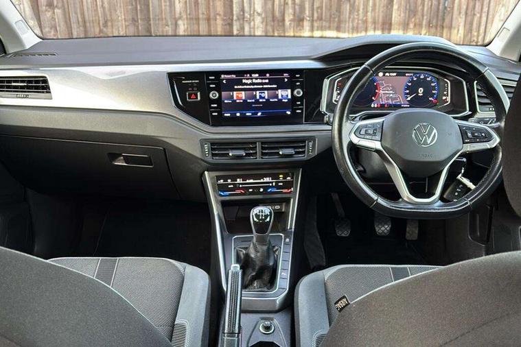 Adaptive cruise control without follow-to-stop and speed limiter, Bluetooth mobile phone interface, Digital Cockpit Pro with 10.25" Display, Driver alert system, Dynamic road sign display, Emergency call service, Power assisted speed sensitive steering, Preparation for We connect and We connect plus, Speedo and rev counter, electronic odometer, trip, service interval display and fuel gauge, Standard rear axle, Travel Assist - Lane keeping system and traffic jam assist, Travel assist including emergency assist, Trip computer, Warning signal and warning light for front and rear seatbelts not fastened, Washer fluid level indicator, Wireless app connect, Front wheel drive, Rear shock absorpion, Start-stop system with battery regeneration (recuperation - energy recovery during braking), DAB Digital radio, Diversity antenna for FM reception, Front and rear 6 speakers, Automatic dimming interior rear view mirror, Automatic headlights, Body colour door handles, Body coloured bumpers and radiator grille with chrome trims, Electric front windows, Heat insulating darkened glass in side and rear windows, Heat insulating glass windscreen, LED separate daytime running lights with coming/leaving home function, Power folding adjustable/heated exterior mirrors and front passenger exterior mirror lowering function, Rain sensor, Rear electric windows, Rear fog light, Rear side wing doors, Rear windscreen washer and wiper with interval delay, Third brake light, 12V power socket in centre console, 2 USB-C ports in the front, 2 USB-C charging sockets on the center console in the rear, 3 rear head restraints, 60/40 split folding rear seat and rear seat bench not split, Air care climatronic air conditoning system with active combination filter and 2-zone temperature control, Ambient lighting, Chrome plated radiator grille inserts, air vent surrounds and light switch surrounds, Door and side trim panel, Driver and front passenger seat height adjustment, Driver/passenger sunvisors with illuminated vanity mirrors, Front + rear carpet mats in recycled material, Front centre armrest, Front footwell illumination, Front seat backrest storage pockets, Front sports comfort seats, Handbrake lever handle in leather, Headliner in recycled material, Isofix child seat preparation easy-fit (for two outer rear seats, and front passenger seat) compatible with I-size, Leather trimmed gear knob, LED interior light with switch off delay and dimmer, 2 reading lights front and rear, Luggage compartment cover, Luggage compartment floor, Luggage compartment lighting, Lumbar adjustment for front seats, Multifunction steering wheel, Single front passenger seat, Standard pedal cluster, IQ LED matrix headlights pack - Polo, Light and vision pack - Polo, 3 point height adj front seatbelts + pretensioners, 3x3 point rear seatbelts, ABS, Driver and front passenger airbag with front passenger airbag deactivation, Drivers and front passengers safety optimised head restraints, ESC (Electronic stability control) + EDL (Electronic Differntial lock) and ASR (Traction control), Extended and predictive pedestrian/ cyclist protection, Front curtain and side airbags with center airbag, Front disc brakes, Hill hold control, Manual child lock in rear doors, Rear drum brakes, Single tone horn, Tyre pressure loss indicator, Alarm with interior protection, Anti-theft alarm system with interior monitoring, backup horn, and towing protection, Anti-theft wheel bolts, Electronic engine immobiliser, Chrome applications on rotary light, mirror adjustment, window regulator switches, outlet with frame in black, Low rolling resistance tyres,