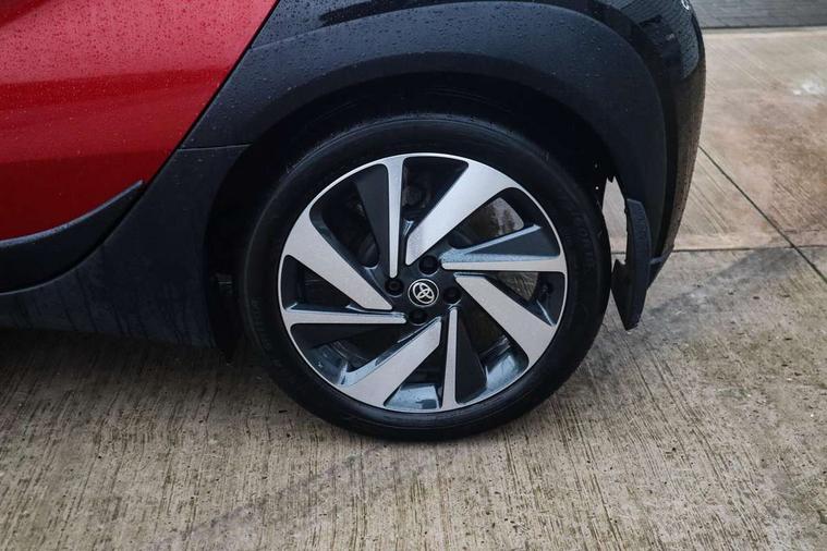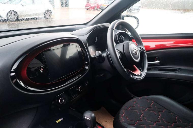 4.2" TFT colour screen, Adjustable speed limiter, Analogue speedometer, Bluetooth connectivity, Digital tachograph, Driver attention alert system, eCall emergency call system, ECO-driving indicator, Electric power steering, Front and rear parking sensors with auto brake, Intersection turn assist, Key reminder warning, Noise reduction kit, Pre collision system with emergency steering assist, Remote boot door release on key, Reversing camera with static guide lines, Smart entry and push button start, Speed limit display, Start and stop, Wireless charger, Wireless Smartphone Integration includes Apple CarPlay and Android auto, Vehicle Stability Control (VSC), 4 speakers, 9" HD multimedia display touch screen with Toyota smart connect, DAB digital audio broadcast, USB connector, Auto headlights, Auto wipers, Automatic headlights cut-off, Automatic high beam On/Off switch, Bicycle towing hook, Black fog light surrounds, Black side protection mouldings, Black wheel arch mouldings, Body colour door handles, Body coloured front bumper, Boot door scuff plate, Eclipse black rear bumper, Electric heated door mirrors, Follow me home headlights, Front and rear underruns in silver, Front fog lights, Front power windows, Gloss black door mirrors, Gloss black upper front grille, Headlight cut-off reminder, LED daytime running lights guide, LED front light guide, LED High mounted stop lamp, LED projector headlights, Manual day/night rear view mirror, Manual headlight levelling, Pagoda roof, Power adjustable door mirrors, Power back door, Privacy glass, Rain sensor, Rear combination lights LED bulb type, Rear side wing doors, Rear windscreen defogger, Rear windscreen wiper, Remote hazard lights system, Short antenna, Variable intermittent windscreen wipers, 12v power outlet - front, 2 seat bench in 2nd row, 3 spoke leather steering wheel, 50/50 split folding rear seat, Adhesive roof headlining, Adjustable speed limiter switch on steering wheel, Audio and telephone switches on steering wheel, Auto air conditioning, Black roof lining, Body colour satin anodised insert on steering wheel, Boot light, Centre room light, Chrome interior door handles, Chrome surround on air conditioning buttons, Clean air filter, Console box storage, Floor mats, Front and rear cup holders, Front head rest deco art, Front head restraints, Gear shift indicator, Height adjustable driver seat, Intelligent adaptive cruise control switch on steering wheel, ISOFIX child restraint system on rear seats, Lane departure alert switch on steering wheel, Leather gearshift knob, Light blue ambient lighting in centre console, Manual tilt steering wheel, Manually reclining and sliding driver seat, Manually reclining and sliding front passenger seat, Multimedia switches on steering wheel, Paddle shift levers on steering wheel, Partial synthetic leather upholstery, Pollen filter, Rear door pockets, Rear head restraints, Remote air-conditioning system, Satin silver insert on gear shift knob, Single compartment glovebox with lights, Single front passenger seat, Soft tonneau cover, Sun visors with mirror on driver and passenger side, Voice recognition switch on steering wheel, Toyota safety sense pack - Aygo X, Anti lock braking system + Electronic brake force distribution, Child safety door lock, Emergency brake light signal (EBS), Hill start assist control (HAC), Passenger airbag on/off switch, Seat belt reminder for front and rear seats, Supplement restraints system (SRS) - 6 airbags, Traction control, Tyre pressure warning system, Immobiliser, Remote power door locks, Black wheel centre caps, Tyre repair kit,