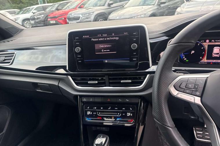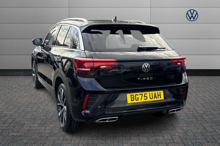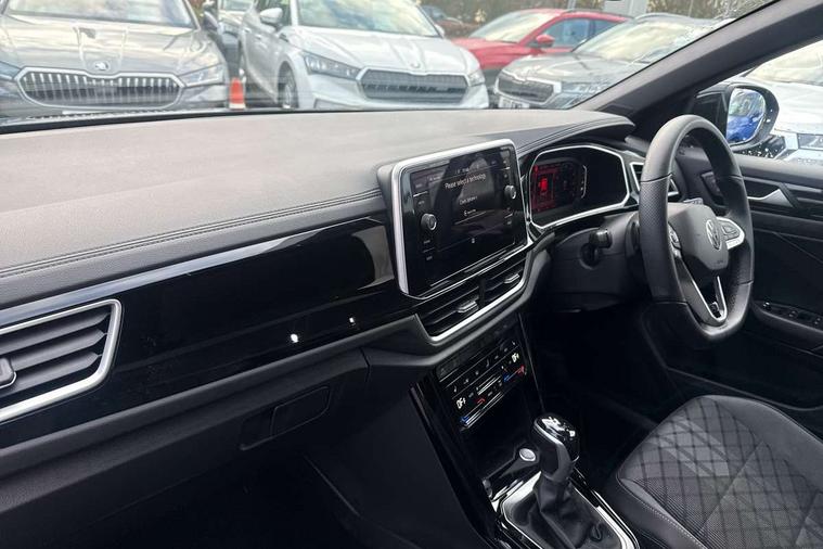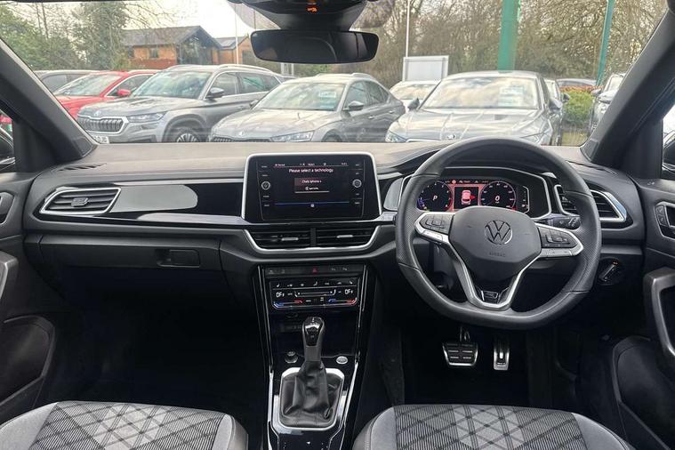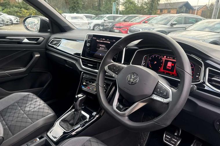 10.25" Digital cockpit pro, Advanced driver attention and drowsiness monitor, Emergency call service, Lane keeping system Lane Assist, Mobile phone interface, Modified key software - reduce switch off time for key status change to Long no motion, Online services, Park assist including front and rear parking sensors, Service interval indicator, Tailgate/trunk lid release from outside, Think blue trainer driver tips and journey analysis, Warning sound and light for front seatbelts unfastened, Wireless app connect, Battery regeneration during braking, Start/stop function with battery regeneration, DAB Digital radio, Diversity antenna for FM reception, Front and rear 6 speakers, Music playback - MP3, WMA and AAC files, Premium USB cable in choice of either Apple or Android smartphone compatibility, SD card slot, Simultaneous pairing of 2 compatible mobile devices, Title and cover art display, We Connect and We Connect Plus functionality, Auto dimming interior rear view mirror, Automatic hazard lights activation under emergency braking, Automatic headlight control with LED separate daytime running lights with coming/leaving home function, Body coloured exterior mirror housings and door handles, Electrically adjustable and heated door mirrors, Extended roof spoiler, Exterior mirrors aspherical on driver side, convex on front passenger side, External USB type C socket and charging sockets, Front windscreen wiper with intermittent wipe and 4 position delay, Heated rear window, LED 3rd brake light, LED rear combination lamps, LED rear number plate lights, Power windows with comfort operation and circuit breaker, Privacy glass for rear side windows and rear window, R-Line design body coloured bumpers, Rain sensor, Rear exhaust tailpipe, Rear fog light on one side and reversing lights on both sides, Rear side wing doors, Rear wash/wipe with intermittent wipe setting, Remote electrically foldable door mirrors, puddle lights and reverse activated passenger's door mirror, 12V power socket in centre console, 3 rear head restraints, 3 seat bench in 2nd row, 4 load lashing points in luggage compartment, Air care climatronic air conditoning system with active combination filter and 2-zone temperature control, Black roof lining, Chrome plated decorative trims, Chrome plated radiator grille inserts, air vent surrounds and light switch surrounds, Door and side trim panel with leatherette insert, Front + rear carpet mats, Front centre armrest, Front cupholders x 2, Front footwell illumination, Front reading light, Front scuff plates with R Line logo, Front seat back storage pockets, Glove compartment door with light, Instrument lighting, white adjustable panel illumination, Interior ambient lighting and surround lighting, Interior light delay, Isofix child seat preparation, Leather gearshift handle, Load-through provision with cup holder when folded down ('Unsplit rear seat bench, split folding backrest, with centre armrest), Luggage compartment lighting, Single front passenger seat, Stainless steel pedals, Storage compartment in left and right luggage area, Storage compartment in rear doors, Storage compartments in driver and front passenger doors, Sunvisors with illuminated vanity mirrors, Variable boot floor, height adjustable and removable, Driver assistance pack without proactive passenger protection - T-Roc, 3 point height adj front seatbelts + pretensioners, 3 point seatbelts in outer rear with ECE label, ABS, Child locks on rear doors, City emergency braking and pedestrian monitoring, Driver and front passenger airbag with front passenger airbag deactivation, Driver and front passenger safety-optimised head restraints, Drivers seatbelt reminder, Electronic parking brake, Electronic Stability Control (ESC) inc EDL (Electronic Differential Lock) and ASR (Traction Control), Front and rear passengers curtain airbag system including front side airbags, Hill start assist, Predictive pedestrian protection, Rear disc brakes, Two tone horn, Tyre pressure loss indicator, Volkswagen roadside assistance, Piano black decorative inserts in dashboard and front door trim panels, Trims for alloy wheels,
