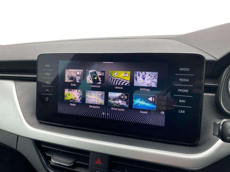 Amundsen satellite navigation with 9.2" glass colour touchscreen display, web radio, voice control and traffic sign recognition, Bluetooth system, E-call, Front assist system, Gesture control, PAS, Service indicator, Speed limiter, Wireless SmartLink for apple car play, android auto and mirrorlink, 8 Speakers, Auxiliary input socket, DAB Digital radio, Body colour bumpers, Body colour door mirrors and handles, Chrome grille surround, Dimming rear view mirror with black surround, Electrically adjustable and heated door mirrors, Front and rear electric windows, Headlight range control, Heated rear window, LED rear lights - low functionality, Light sensors, Privacy glass, Rear fog lights, Rear side wing doors, Rear wiper, 12V Accessory socket in centre console, 3 seat bench in 2nd row, Chrome inner door handles, Cloth upholstery, Front head restraints, Glove compartment with illumination, Height adjustable driver and front passenger seats - manual, Ice scraper, Isofix child seat fittings on outer rear seats, ISOFIX on front passenger seat, Manual lumbar support for front seats, Rake/reach adjustable steering wheel, Reading lights, Single front passenger seat, Sun visors with illumination on front passenger, Textile floor mats, Third rear headrest, Top tether for front passenger seat, Umbrella in driver's door, 3x3 point rear seatbelts, Airbags - driver and front passenger, ESP, Front passenger airbag deactivation switch, Front side airbags with curtain airbags, Hill hold control, Manual parking brake, Manual rear child locks, One tone horn, Rear disc brakes, Seatbelt reminder for driver an co-driver, Traction control, Tyre pressure monitor, Anti-theft alarm system with interior monitoring, backup horn, towing protection and remote central locking with SAFE system, Anti-theft wheel bolts, Electronic engine immobilizer, Silver haptic decorative insert on the dashboard with hot stamping in glossy black,