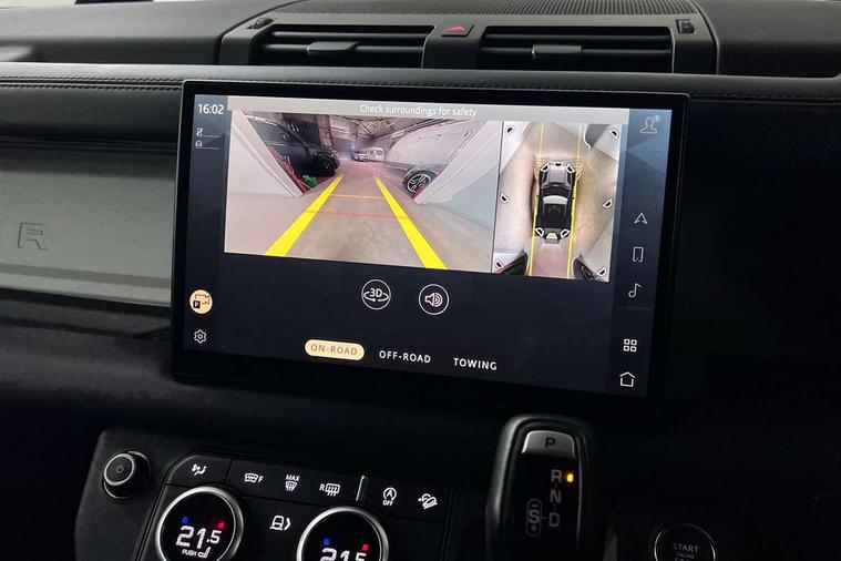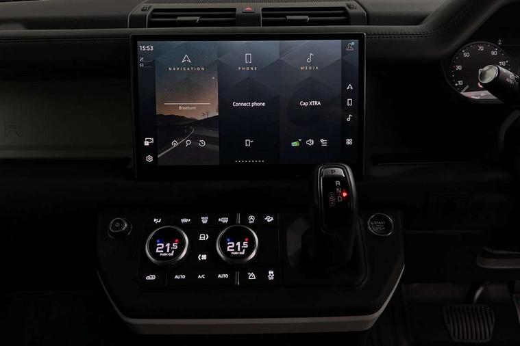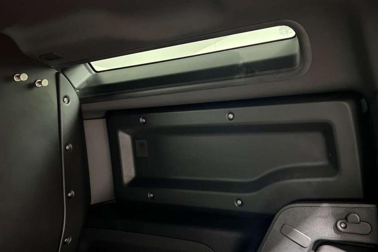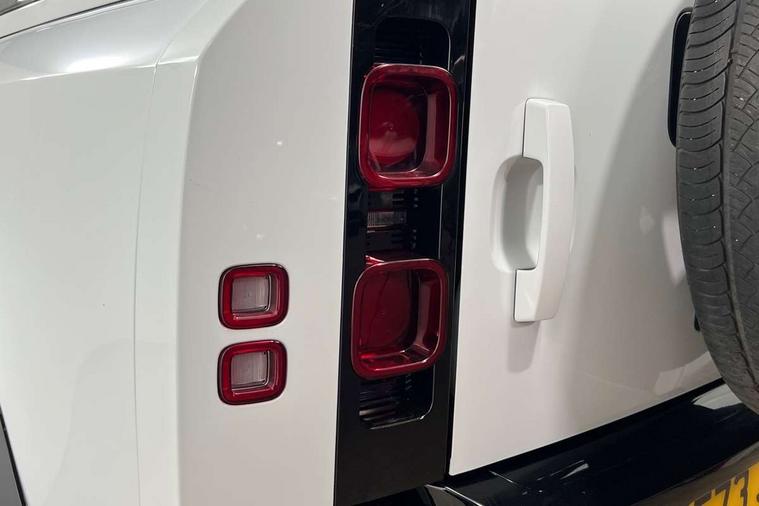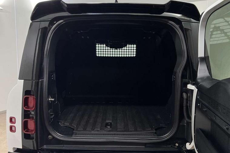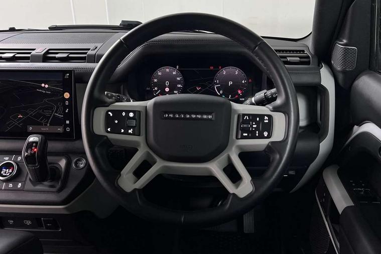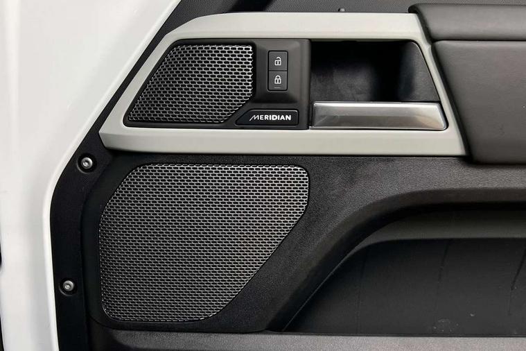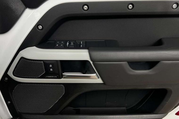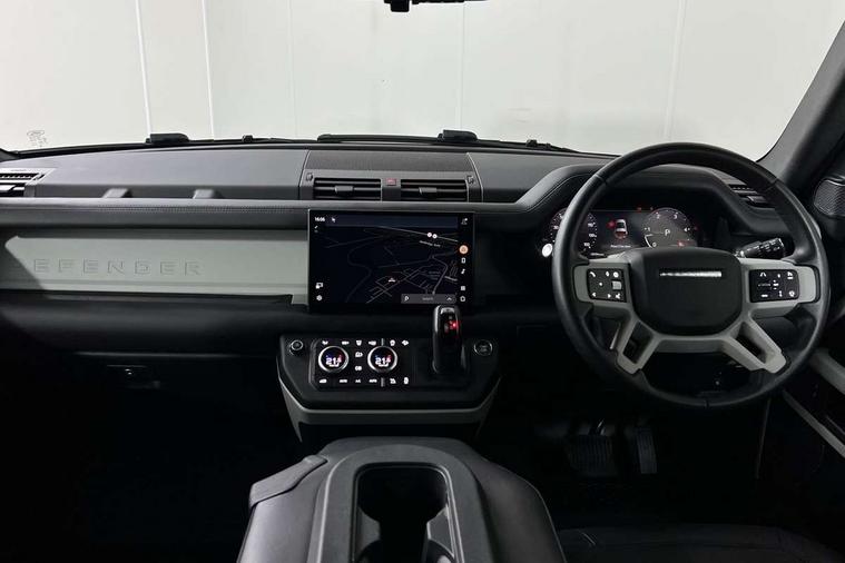 Customer Configurable Autolock, 11.4" touchscreen, 360 parking aid, 3D Surround Camera with 360 View, 180 Rear View, Front Traffic Detection, Forward Vehicle Guidance, Tow Hitch Assist and clear sight Ground View, Adaptive cruise control, Blind spot assist, Brake Hold, Driver condition monitor, Electric power assisted steering (EPAS), Lane keep assist, Low traction launch, Pivi pro connected, Rear collision monitor, Rear traffic monitor, Traffic sign recognition adaptive speed limiter, Trip computer, Tyre pressure monitor, Wade Sensing, Android Auto, Apple CarPlay, DAB Radio (Digital Audio Broadcasting), Meridian 280W sound audio system with 7 speakers with subwoofer, Alpine lights, Assisted tailgate, Auto High Beam Assist, Automatic headlight levelling, Automatic headlights and rain sensitive front wipers, Centre high mounted stop light, ClearSight interior rear view mirror, Electric heated/power fold door mirrors with approach lights and auto dimming driver side, Electric windows with one touch open/close and anti-trap, Exterior signage panel, Follow me home lighting, Front fog lights, Heated rear window with timer, Heated windscreen, LED tail light, Privacy glass, Puddle lights, Rear fog lights, Rear wash wiper, Side-hinged tailgate, Standard roof, Standard tread plates, 14 way heated and cooled electric adjustable memory front seats with 4 way manual headrests, Additional lashing points, Dual zone climate control, Durable rubber cabin flooring, Electric adjustable steering column, Footwell lights, Front jump seat and folding front centre armrest, Full height bulkhead behind row 1 seats, Glovebox storage, High sided rubber mats, Loadspace cover, Loadspace hooks, Loadspace rubber mat, Overhead stowage for sunglasses, Rear centre headrest, Rear reading light, Standard seating configuration, Sunvisors with illuminated vanity mirrors, Twin front cupholders with cover, Upgraded loadspace LED lighting, Online pack - Defender with data plan, Brake pad wear indicator, Electronic traction control, Emergency braking, Front airbags, with passenger seat occupant detector, Power operated child locks, Remote for (e-Call, Optimised assistance call, InControl app, Climate, beep and flash and door), Seat belt reminder, Intrusion sensor, Keyless entry system, Locking wheel nuts, 8 speed automatic transmission, ABS and EBA, All wheel drive, CBC - (Cornering brake control), Dynamic stability control, Electronic brake force distribution, Electronic park brake, Gradient acceleration control, Hill Descent Control, Hill start assist, Particulate filter (DPF), Push button start, Roll stability control, Trailer stability assist, Twin speed transfer box (high/low range), Extended leather upgrade,
