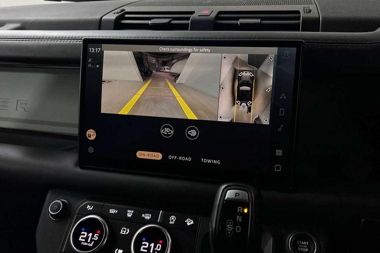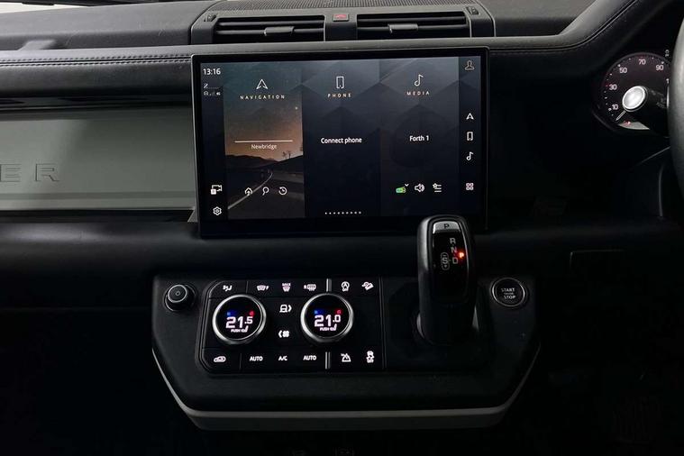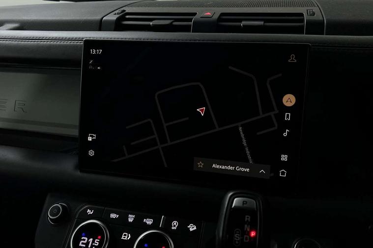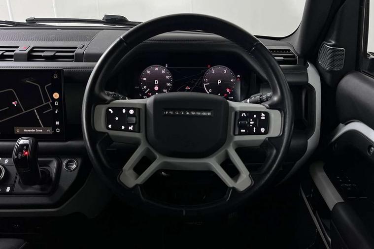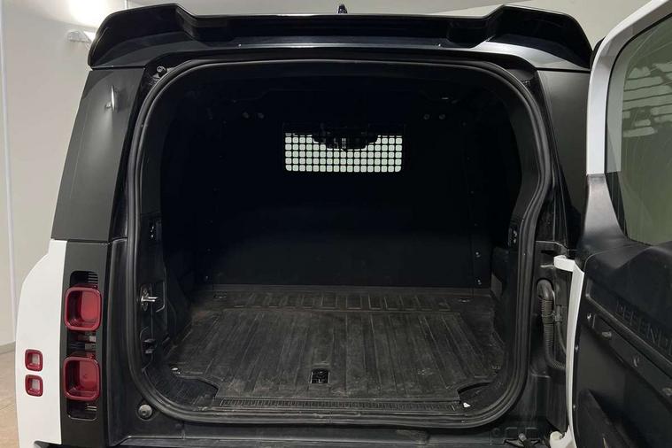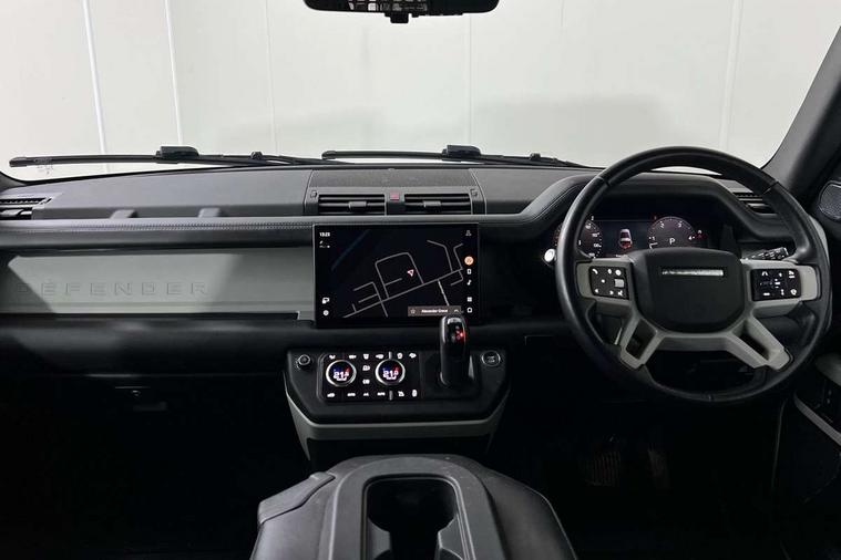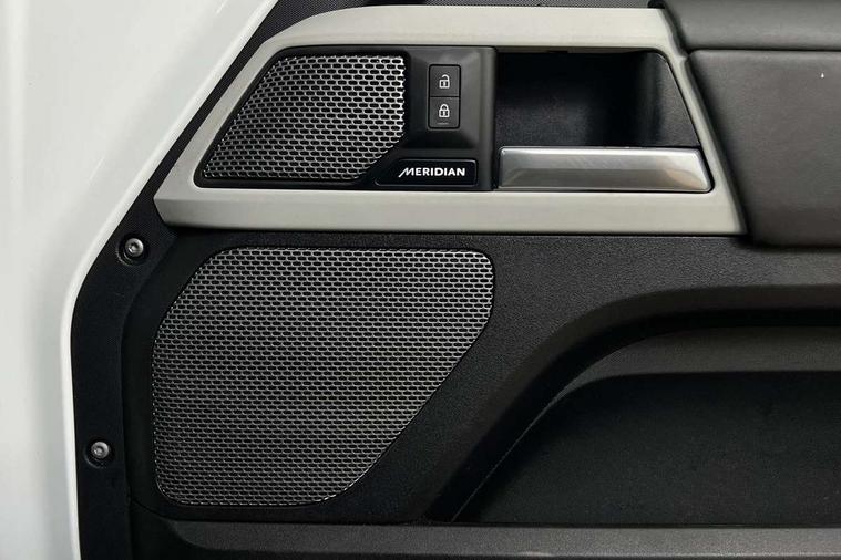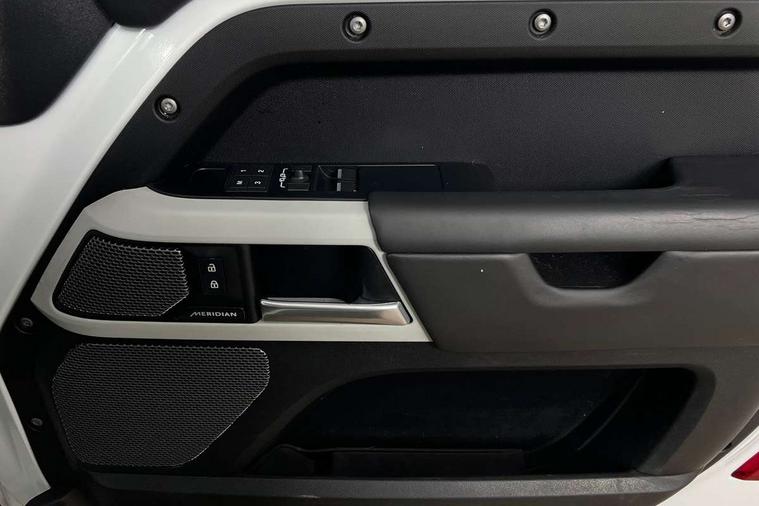 Customer Configurable Autolock, 11.4" touchscreen, 360 parking aid, 3D Surround Camera with 360 View, 180 Rear View, Front Traffic Detection, Forward Vehicle Guidance, Tow Hitch Assist and clear sight Ground View, Adaptive cruise control, Blind spot assist, Brake Hold, Driver condition monitor, Electric power assisted steering (EPAS), Lane keep assist, Low traction launch, Pivi pro connected, Rear collision monitor, Rear traffic monitor, Traffic sign recognition adaptive speed limiter, Trip computer, Tyre pressure monitor, Wade Sensing, Android Auto, Apple CarPlay, DAB Radio (Digital Audio Broadcasting), Meridian 280W sound audio system with 7 speakers with subwoofer, Alpine lights, Assisted tailgate, Auto High Beam Assist, Automatic headlight levelling, Automatic headlights and rain sensitive front wipers, Centre high mounted stop light, ClearSight interior rear view mirror, Electric heated/power fold door mirrors with approach lights and auto dimming driver side, Electric windows with one touch open/close and anti-trap, Exterior signage panel, Follow me home lighting, Front fog lights, Heated rear window with timer, Heated windscreen, LED tail light, Privacy glass, Puddle lights, Rear fog lights, Rear wash wiper, Side-hinged tailgate, Standard roof, Standard tread plates, 14 way heated and cooled electric adjustable memory front seats with 4 way manual headrests, Additional lashing points, Dual zone climate control, Durable rubber cabin flooring, Electric adjustable steering column, Footwell lights, Front jump seat and folding front centre armrest, Full height bulkhead behind row 1 seats, Glovebox storage, High sided rubber mats, Loadspace cover, Loadspace hooks, Loadspace rubber mat, Overhead stowage for sunglasses, Rear centre headrest, Rear reading light, Standard seating configuration, Sunvisors with illuminated vanity mirrors, Twin front cupholders with cover, Upgraded loadspace LED lighting, Online pack - Defender with data plan, Brake pad wear indicator, Electronic traction control, Emergency braking, Front airbags, with passenger seat occupant detector, Power operated child locks, Remote for (e-Call, Optimised assistance call, InControl app, Climate, beep and flash and door), Seat belt reminder, Intrusion sensor, Keyless entry system, Locking wheel nuts, 8 speed automatic transmission, ABS and EBA, All wheel drive, CBC - (Cornering brake control), Dynamic stability control, Electronic brake force distribution, Electronic park brake, Gradient acceleration control, Hill Descent Control, Hill start assist, Particulate filter (DPF), Push button start, Roll stability control, Trailer stability assist, Twin speed transfer box (high/low range), Extended leather upgrade,
