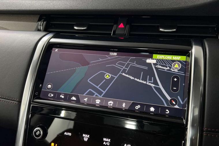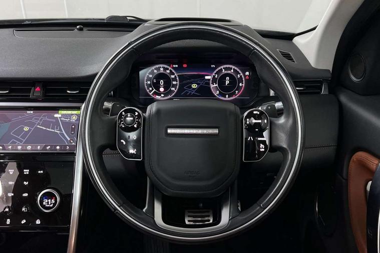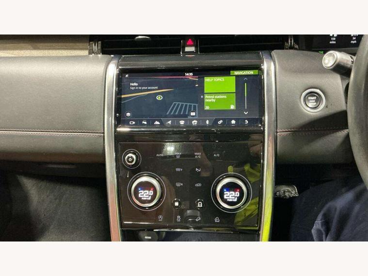 Android Auto, Apple CarPlay, Blind spot assist, Connected navigation pro, Driver condition monitor, InControl remote premium, Interactive driver display, Lane keep assist, PAS, Powered tailgate/boot lid, Service interval indicator, Traffic sign recognition with adaptive speed limiter, Trip computer, All terrain progress control, Coil suspension system, Terrain Response 2, Bluetooth connectivity including audio streaming, Digital Audio Broadcast radio-DAB, Steering wheel mounted audio controls, Automatic headlight levelling, ClearSight interior rear view mirror, Door mirror memory, Electric front/rear windows, Illuminated metal front treadplates with R dynamic branding, Power fold, auto-dimming, heated door mirrors with approach lights, Rain sensing windscreen wipers, Rear wiper, Black gearshift paddles, Bright metal pedals, Front passenger isofix child seat attachment, Illuminated vanity mirrors, Rear headrests, Third row dual adjustable individual seats, Tilt/reach adjustable steering wheel, Online pack - Discovery sport, 3 point seatbelts on all seats, ABS, Brake hold function, Collision mitigation braking system, Cornering brake control (CBC), Driver/Front Passenger airbags, Drivers knee airbag, Electronic brake force distribution, Electronic parking brake, ESP + traction control, High speed emergency braking, Hill descent control, Hill launch assist, Pedestrian airbag system, Roll stability control, Side and curtain airbags for front and 2nd row seats, Tyre pressure monitoring system, Battery Back Up System (BBUS) with tilt sensor, Intrusion sensor, Keyless entry, Locking wheel nuts, Centre stack rails in noble chrome,