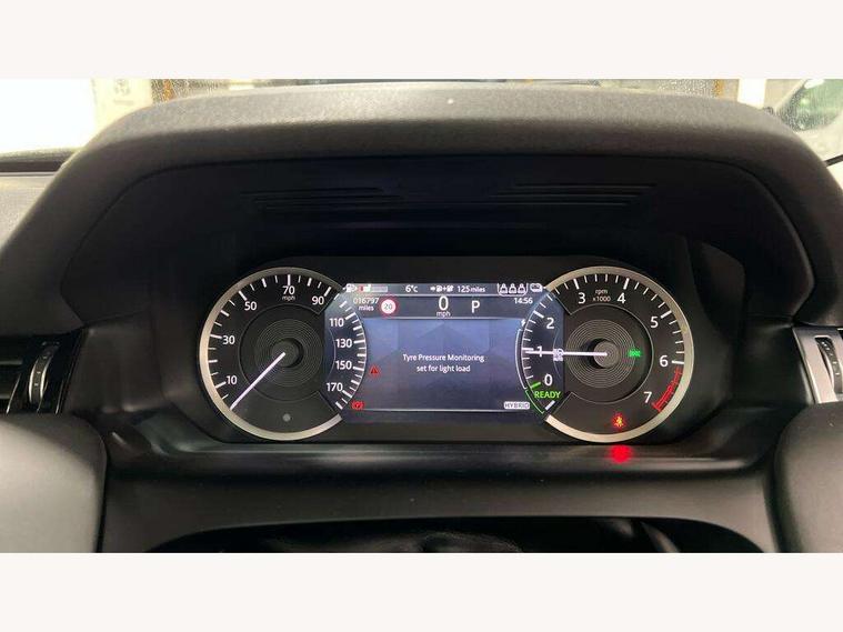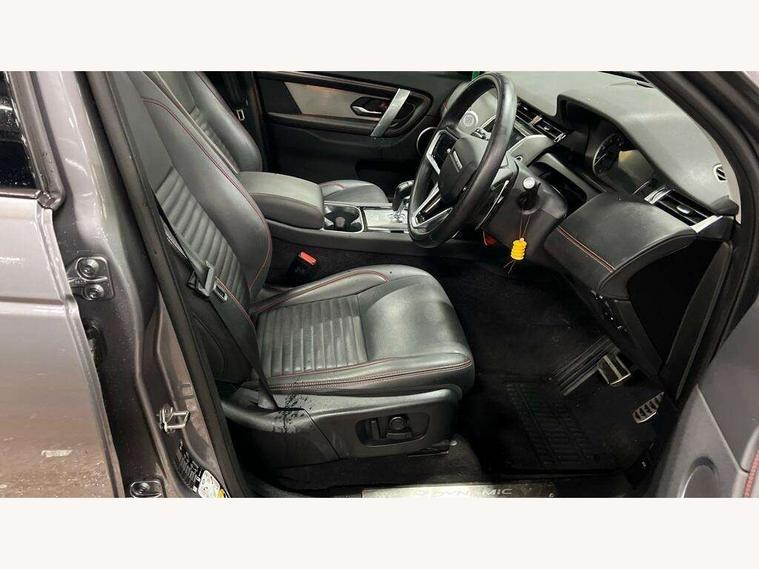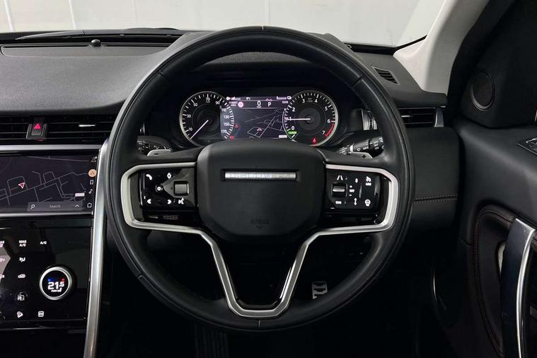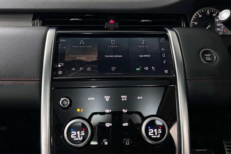 10" touch screen, Adaptive cruise control, Android Auto, Apple CarPlay, Blind spot assist, Clear exit monitor, Driver condition monitor, eCall emergency call system, Front and rear parking aid, InControl remote premium, Lane keep assist, Locking fuel flap, PAS, Pivi Pro connected navigation system with upgraded Infotainment, Powered tailgate/boot lid, Push button start, Rear collision monitor, Rear traffic monitor, Service interval indicator, Traffic sign recognition with adaptive speed limiter, Trip computer, Wade Sensing, 7 kW onboard charger, All terrain progress control, Coil suspension system, Configurable dynamics, Dynamic stability control, Home charging cable, Public charging cable, Terrain Response 2, Bluetooth connectivity including audio streaming, Digital Audio Broadcast radio-DAB, Steering wheel mounted audio controls, 3rd brake light, Automatic headlight levelling, Automatic headlights, Electric front/rear windows, Electric heated/power fold door mirrors with approach lights and auto dimming driver side, Front and rear recovery eyes, Front fog lights, Heated rear window, Heated windscreen including heated washer jets, Illuminated metal front treadplates with R dynamic branding, P300e badge, Privacy glass, R Dynamic badge, Rain sensing windscreen wipers, Rear fog lights, Rear side wing doors, Rear wing door, Rear wiper, 5 standard seating configuration, Bright metal pedals, Centre console with armrest, Configurable cabin lighting, Electrically adjustable steering column with memory, Footwell lights, Front and rear grab handles, Front passenger isofix child seat attachment, Heated steering wheel, Loadspace cover, Loadspace light, Overhead lighting console, Overhead stowage for sunglasses, Rear headrests, Satin chrome gearshift paddles, Sunvisors with illuminated vanity mirrors, Tilt/reach adjustable steering wheel, Black exterior pack - Discovery sport R-Dynamic SE/HSE, Online pack with data plan - Discovery, 3 point seatbelts on all seats, ABS, Brake hold function, Child locks on rear doors, Collision mitigation braking system, Cornering brake control (CBC), Driver/Front Passenger airbags, Drivers knee airbag, Electronic brake force distribution, Electronic parking brake, Emergency brake assist, ESP + traction control, Hill descent control, Hill launch assist, Pedestrian airbag system, Rear seat ISOFIX, Roll stability control, Side and curtain airbags for front and 2nd row seats, Trailer stability control, Tyre pressure monitoring system, Battery Back Up System (BBUS) with tilt sensor, Global lock and unlock switch on driver door, Intrusion sensor, Keyless entry, Locking wheel nuts, Centre stack rails in noble chrome,