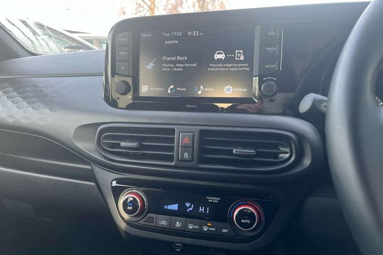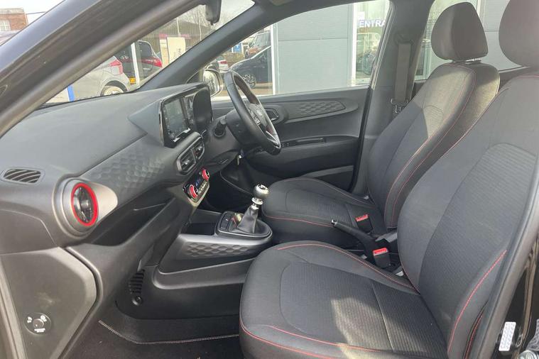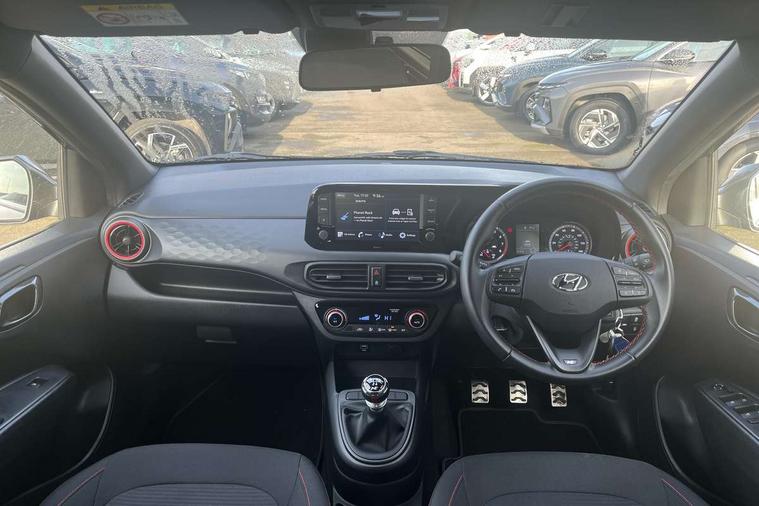 8" Touchscreen centre console display audio with smart device integration and DAB, Apple car play/Android Auto, Bluetooth connectivity with voice recognition, Cruise control + speed limiter, Driver attention alert system, eCall emergency call system, ISG - Idle stop and go, Lane departure warning system with lane keep assist - LKAS, PAS, Rear view camera, Roadside assistance, Trip computer, 2 front/2 rear speakers, Steering wheel audio, phone and cruise controls, USB socket, 1 speed non intermittent rear windscreen wiper, Bi-function projection headlights, Black finish on B pillars, Body colour door handles, Body coloured bumpers, Body coloured door mirrors, Differentiated DRL design with red stripe detail, Dual exhaust tailpipe, Electric front windows, Electric rear windows, Electrically adjustable and heated door mirrors, Front fog lights, Front intermittent wipers, Halogen headlights, Heated rear window, High beam assist, Indicator light on door mirrors, N Line Badging, N Line design front grille, Privacy glass - Rear windows and tailgate, Rear combination lights - LED, Rear roof spoiler with integrated LED brake light, Rear side wing doors, Unique LED daytime running lights, 12v power outlet - front, 3 seat bench in 2nd row, 60/40 split folding flat to floor rear seats, Auto light control, Black roof liner, Bottle holders in front/rear doors + front centre console, Cabin and luggage compartment interior lighting, Climate control, Cloth upholstery, Driver + passenger vanity mirrors, Driver's seat height adjustment, Driver/passenger sunvisors with ticket holders, Front door pockets, Front Head Restraints - Vertical and Horizontal Adjustment, Glove compartment, Height adjustable steering column, Isofix child seat preparation, Metal paint effect interior door handles, N Line branded leather gear stick, N Line branded leather steering wheel, Rear door pockets, Single front passenger seat, Vertical adjustment rear head restraints, 3x3 point rear seatbelts, Airbags - front, front side and curtain airbags, Anti-lock brake system (ABS), Autonomous emergency braking (AEB) with forward collision warning system, Brake assist function, Childproof rear door locks, Electronic stability control, Front and rear seatbelt reminder, Front seatbelt pretensioners, Hill start assist control (HAC), Passenger airbag deactivate switch, Rear disc brakes, Traction control, Tyre pressure monitoring system, Immobiliser, Perimeter alarm, Remote central locking, Second remote key, Speed sensitive auto door locking, Honeycomb design in dashboard and door, 16" N Line design alloy wheels, Tyre repair kit,