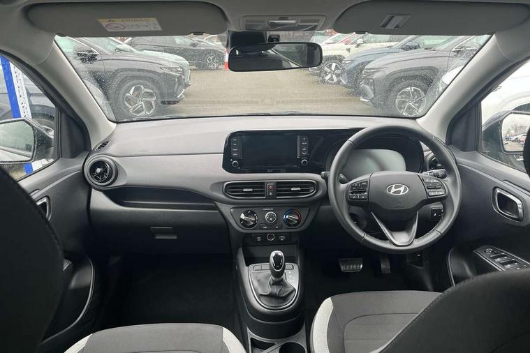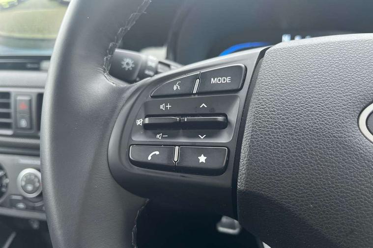 Apple car play/Android Auto, Bluelink mobile remote connectivity, Bluetooth connectivity with voice recognition, Cruise control, Driver attention alert system, eCall emergency call system, Forward Collision-Avoidance Assist (FCA) - Pedestrian/Cyclist, Front USB-C charging and USB-A data, Full-width 4.2" LCD instrument cluster, Intelligent speed limit assist, Lane departure warning system with lane keep assist - LKAS, Lane follow assist, PAS, Rear parking sensors, Rear view camera with guidelines, Roadside assistance, Start/Stop function, Tailgate, Trip computer, 2 front/2 rear speakers, Rear USB-C device charger, Steering wheel audio, phone and cruise controls, 1 speed non intermittent rear windscreen wiper, Black finish on B pillars, Body colour door handles, Body coloured bumpers, Body coloured door mirrors, Electric front windows, Electric rear windows, Electrically adjustable and heated door mirrors, Flat metal emblem, Front grille in matte black, Front intermittent wipers, Halogen daytime running lights, Halogen headlights, Headlights inner with Black Blade design, Heated rear window, High beam assist, Indicator light on door mirrors, Rear roof spoiler with integrated LED brake light, Rear side wing doors, 12v power outlet - front, 3 seat bench in 2nd row, 60/40 split folding flat to floor rear seats, Air conditioning, Auto light control, Bottle holders in front/rear doors + front centre console, Cabin and luggage compartment interior lighting, Cloth upholstery, Driver + passenger vanity mirrors, Driver's seat height adjustment, Driver/passenger sunvisors with ticket holders, Floor mats, Front door pockets, Front Head Restraints - Vertical and Horizontal Adjustment, Glove compartment, Height adjustable steering column, Isofix child seat preparation, Leather multifunction steering wheel, Rear door pockets, Single front passenger seat, Vertical adjustment rear head restraints, 3x3 point rear seatbelts, Airbags - front, front side and curtain airbags, Anti-lock brake system (ABS), Autonomous emergency braking (AEB) with forward collision warning system, Brake assist function, Childproof rear door locks, Electronic stability control, Front and rear seatbelt reminder, Front seatbelt pretensioners, Hill start assist control (HAC), Passenger airbag deactivate switch, Traction control, Tyre pressure monitoring system, Immobiliser, Perimeter alarm, Rear occupant alert, Remote central locking, Second remote key, Speed sensitive auto door locking, 15" Alloy wheels, Tyre repair kit,