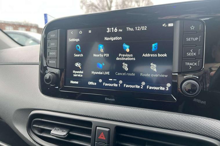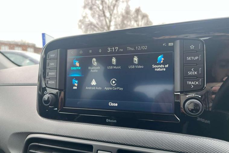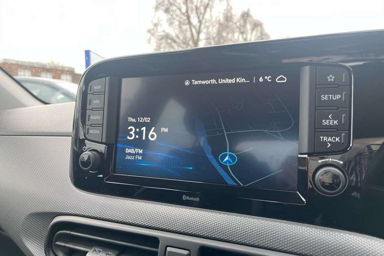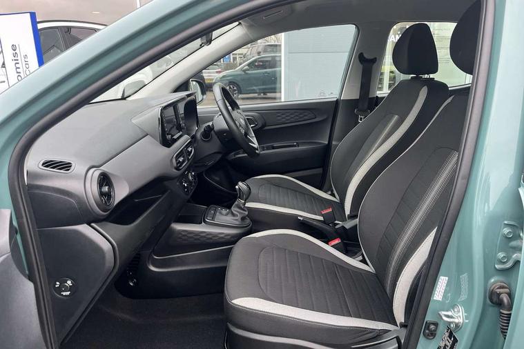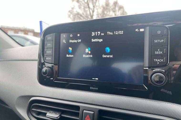 Apple car play/Android Auto, Bluelink mobile remote connectivity, Bluetooth connectivity with voice recognition, Cruise control, Driver attention alert system, eCall emergency call system, Forward Collision-Avoidance Assist (FCA) - Pedestrian/Cyclist, Front USB-C charging and USB-A data, Full-width 4.2" LCD instrument cluster, Intelligent speed limit assist, Lane departure warning system with lane keep assist - LKAS, Lane follow assist, PAS, Rear parking sensors, Rear view camera with guidelines, Roadside assistance, Start/Stop function, Tailgate, Trip computer, 2 front/2 rear speakers, Rear USB-C device charger, Steering wheel audio, phone and cruise controls, 1 speed non intermittent rear windscreen wiper, Black finish on B pillars, Body colour door handles, Body coloured bumpers, Body coloured door mirrors, Electric front windows, Electric rear windows, Electrically adjustable and heated door mirrors, Flat metal emblem, Front grille in matte black, Front intermittent wipers, Halogen daytime running lights, Halogen headlights, Headlights inner with Black Blade design, Heated rear window, High beam assist, Indicator light on door mirrors, Rear roof spoiler with integrated LED brake light, Rear side wing doors, 12v power outlet - front, 3 seat bench in 2nd row, 60/40 split folding flat to floor rear seats, Air conditioning, Auto light control, Bottle holders in front/rear doors + front centre console, Cabin and luggage compartment interior lighting, Cloth upholstery, Driver + passenger vanity mirrors, Driver's seat height adjustment, Driver/passenger sunvisors with ticket holders, Floor mats, Front door pockets, Front Head Restraints - Vertical and Horizontal Adjustment, Glove compartment, Height adjustable steering column, Isofix child seat preparation, Leather multifunction steering wheel, Rear door pockets, Single front passenger seat, Vertical adjustment rear head restraints, 3x3 point rear seatbelts, Airbags - front, front side and curtain airbags, Anti-lock brake system (ABS), Autonomous emergency braking (AEB) with forward collision warning system, Brake assist function, Childproof rear door locks, Electronic stability control, Front and rear seatbelt reminder, Front seatbelt pretensioners, Hill start assist control (HAC), Passenger airbag deactivate switch, Traction control, Tyre pressure monitoring system, Immobiliser, Perimeter alarm, Rear occupant alert, Remote central locking, Second remote key, Speed sensitive auto door locking, 15" Alloy wheels, Tyre repair kit,