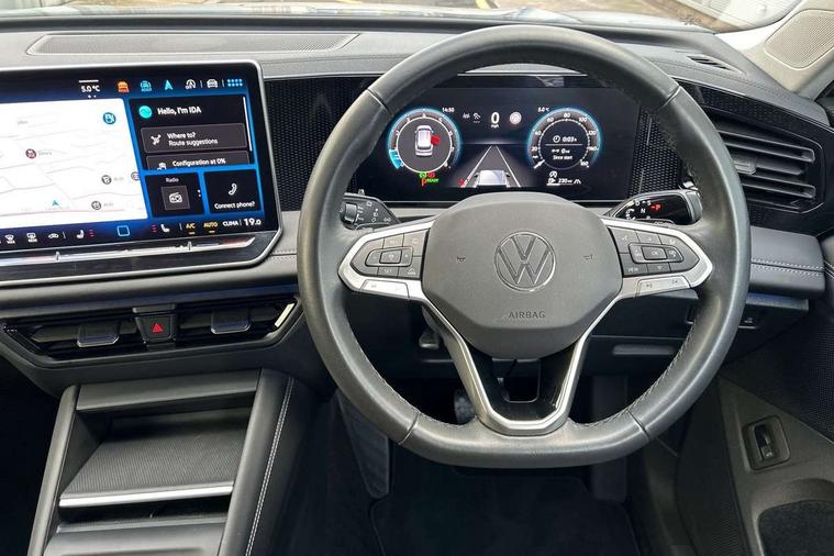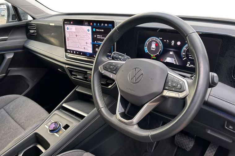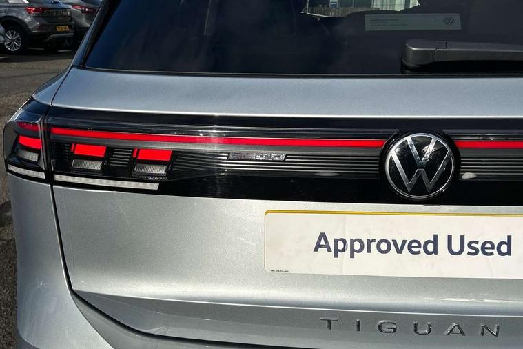 Adaptive cruise control (ACC), Advanced driver attention and drowsiness monitor, Bluetooth mobile phone interface, Car2X technology, Digital Cockpit Pro - 10.25" high resolution dash display screen with customisable menus and information, Dynamic road sign display, E-Sim card for online connectivity, eCall emergency call service, Front Assist - Autonomous emergency braking with pedestrian and cyclist monitoring, Lane change system, Side assist, Rear traffic alert and Exit warning system, Lane keeping system Lane Assist, Multifunction front facing camera, Oncoming vehicle braking when turning including swerve support, Park assistance plus with front and rear parking sensors, Power assisted steering with speed sensitive, Start/stop system with regenerative braking, Warning signal and warning light for front and rear seatbelts not fastened, Wireless App-Connect, Front wheel drive, Digital radio reception (DAB), Diversity antenna for FM reception, Ambient lighting with logo projection, Auto dimming interior rear view mirror, Automatic headlight control system, Body coloured bumpers and air intake with chrome trim, Body coloured door handles, Body-coloured exterior mirror housings, Coming/leaving home lighting function, Heat insulating glass in side and rear windows, Heat insulating windshield, Heated rear window, High level 3rd brake light, Illuminated door handle recesses, Illuminated lightline between headlamps, Rain sensor windscreen wipers, Rear fog light on one side, reversing light on both sides, Rear side wing doors, Rear wiper, 12V outlet in center console rear and in luggage compartment, 12V socket in centre console, 3 bench rear seats in 2nd row, Air care climatronic 3 zone air conditioning system with rear air conditioning control panel, Carpet mats, front and rear, Centre console with illuminated storage compartment with sliding cover and two drinks holders, Ceramique headlining, Door and side trim panel in foam film and woven fabric, Front centre armrest, ISOFIX anchors for child seats on outer rear seats and front passenger seat compatible with i-Size, Mechanical rear seat release, Power adjustable lumbar support in front, Rear bench seat, split folding, longitudinally movable and folding with load-through hatch and centre armrest, Safety optimised front head restraints, Single front passenger seat, Sun visors with illuminated vanity mirrors, Three rear head restraints, Variable luggage compartment floor, Comfort package with park assist plus and Safelock - Tiguan, Design package - Tiguan, 3 point seat belt for centre rear seats, 3 Point seat belts in front with pretensioners, 3 point seatbelts in outer rear with ECE label, Driver and front passenger airbag with front passenger airbag deactivation, Electronic parking brake with auto hold, Front and rear curtain airbags, Front and rear side airbags, Front centre airbag, Front disc brakes, Manual child proof rear door locks, Rear disc brakes, Two tone horn, Warning triangle, Anti theft wheel bolts, Soul instrument panel,