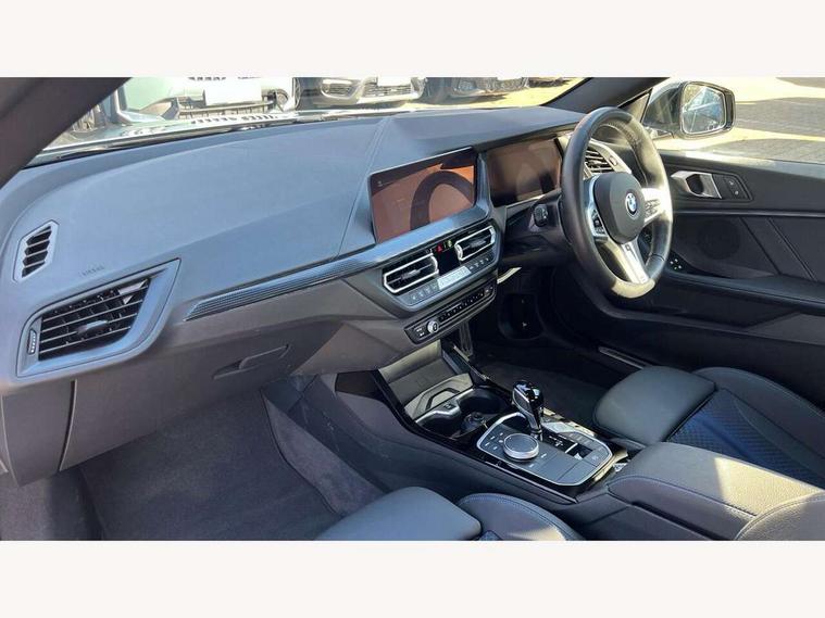 Active guard plus, Attentiveness assist, Auto start-stop, BMW ConnectedDrive online services, BMW Intelligent Personal Assistant, BMW Live Cockpit Professional with 10.25" high resolution instrument and control display, BMW Online services, BMW operating system with 7.0 mid interface, BMW Teleservices, Check Control warning system for monitoring of lights and door/luggage compartment open warning, Cruise control with braking function, iDrive controller with 7 short cut favourite buttons on centre console, Integrated navigation data with map data via USB +features such as 3D landmarks and micro city models, Integrated owners handbook, Intelligent voice assistant, Lane departure warning system, M Sports steering, On board computer - average speed+fuel consumption, service interval, clock/date, odometer/trip meter, outside temperature display and ice warning, Optimum shift indicator, Personal Profile, Pull away assistant, Speed limiting function, Aluminium lightweight construction, Balancer shaft, Double VANOS, Drive performance control with ECO PRO comfort + sport mode, Dual clutch automatic transmission, Electronic differential lock, High precision injection, M Sport suspension with stiffer spring/damper set-up and vehicle lowered by 10mm + twin tube gasfilled shock absorbers and Anti roll bars, Performance Control, Petrol Particulate Filter, VALVETRONIC engine management, 2x USB Type C ports (for charging and data transfer), 4G LTE Connectivity with hard wied 4G network sim card, DAB digital radio, MP3 players and RDS double tuner, Auto wipers, Automatically dimming rear view mirror, Body colour door handles, Body colour mirror caps, Chrome 'M' logo side designation, Chrome exhaust single tailpipe, round, Direction indicator side lights integrated exterior mirrors, Electric windows - front and rear, with open/close fingertip control and trap release, Exterior mirrors - electrically folding with anti-dazzle, Fading support, Follow me home headlights, Front and rear bumper system with replaceable deformation elements, Front door sill finishers in black plastic with M designation in metallic look, Heated, electrically adjustable exterior mirror aspheric on driver side, convex on passenger side, High gloss black B pillar finish, High gloss shadow line exterior trim, High level third brake light, LED daytime running lights, LED front fog lights, Lightweight engineering, Model designation on right side of tailgate, Preparation for high beam assistant, Rain sensor with automatic headlight activation, Rear boot, Rear fog lights, Rear side wing doors, Reversing light in rear light cluster, Welcome lighting, 12V power socket in centre console, 2 cupholders in front centre console, 3 rear seat head restraints, 3 rear seats, 3 spoke M sports design leather steering wheel finished in nappa leather with specific M badge, Anthracite finished floor mats with contrasting surround, Anthracite headlining, Automatic two zone climate control air conditioning, Child seat ISOFIX attachment for two outer rear seats and front passenger seat with anchorage points, Conditioned based service, Driver and front passenger seat heating, Front and rear door pockets including bottle trays, Front and rear side armrests integrated into door trim, Front armrest foldable with integrated storage compartment, Front centre interior light over interior mirror and rear centre automatic interior light when door is opened/ignition switched off or via remote key, Front head restraints, Front passenger seat, Front sports seats with electric side bolster adjustment, Glove compartment, Luggage compartment lighting, Manually adjustment steering wheel column, Multi-function controls for steering wheel, Sun visors with vanity mirrors and insert tab, Through loading system with 40/20/40 split folding rear seat, Two lashing eyes, Additional interior lighting pack - 2 Series Gran Coupe, Connected pack professional - 2 Series Gran Coupe, Extended storage pack - 2 Series Gran Coupe, M Sport exterior styling aerodynamics pack - 2 Series Gran Coupe, 2 tone horn, Airbag - Front driver and passenger, front and rear head, front side, curtain head protection, manual deactivation of front passenger airbag possible, Anti lock braking system (ABS) with cornering brake control, BMW emergency call, Brake drying, Braking readiness, City braking function, Crash sensor activating of airbags, Unlocking doors, hazard warning lights, interior light, safety battery terminal, Dynamic stability control + (DSC+), Dynamic Traction Control - DTC, Electrically operated hand brake, Rear brake discs, Rear child proof door locks, Seat belt security check for driver and front passenger, Seatbelt warning, Side impact protection, Three point seat belts on all seats including front belt stopper, pyrotechnic belt tensioners and belt force limiters, Trailer stability control, Tyre pressure monitoring system, Ventilated front disc brakes, Warning triangle and first aid kit, Central locking switch for all doors, fuel filler cap and luggage compartment, Deadlocking function system to all doors, Drive away locking system on all doors and luggage compartment, Locking wheel bolts, Start/Stop button (illuminated) in centre console with keyless engine start and Auto Start-Stop deactivation button, Thatcham Cat.1 alarm and immobiliser, Two remote control key with integrated key - open/close doors/fuel flap/tailgate +1 button for unlock compartment with M design high gloss black inlay, Contrast stitching on instrument panel, 18" Burnished M double spoke bi-colour alloy wheels finished in orbit grey - style 819M, Reduced rolling resistance tyres,