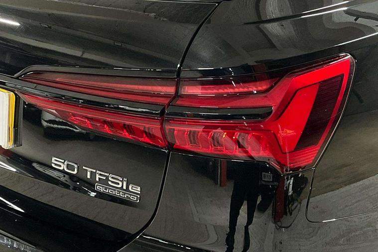 7" high resolution colour driver information display system, Audi connect safety and service (e-call), Audi connect with Amazon Alexa Integration, Audi drive select, Audi smartphone interface includes wireless Apple carplay/Android Auto, Automatic start/stop system with coasting functionality, Bluetooth interface, Electric boot lid release, Lane departure warning system, Progressive steering, Service interval indicator, Voice control system, 3 pin 10 amp domestic charging cable, 52 litre fuel tank, 7.4 kW onboard charger, Hybrid propulsion system, Quattro on demand, Sports suspension, Type 2 mode 3 32 amp charging cable, Type 2 socket for AC charging, Audi front music interface, Auxiliary input socket, DAB Digital radio, USB connection, Black roof rails, Electric front/rear windows, Frameless auto dimming interior rear view mirror, Front intermittent wipers, Gloss black highlights on the exterior area of the Audi Single frame, Gloss black highlights on the front and rear bumpers, Gloss black highlights on the radiator grille, Gloss black highlights on the side windows trim strips, Headlight washers, Heat insulating darkened glass in side and rear windows, Heat insulating glass in windshield, LED signature front daytime running light, LED third brake light, Matrix LED headlights, Matt black rear diffuser with diffuser strip and tailpipes in chrome, Matt black side air intake grille with inlay in matt aluminium, Privacy glass, Rain and light sensors, Rear side wing doors, Rear wiper, Signature rear LED light design, 4 way electric lumbar support for driver and front passenger, 4 zone deluxe automatic climate control, 40/20/40 split folding 3 rear seat bench in 3 parts with rear centre armrest, Black cloth headlining, Black front and rear carpet floor mat, Black steering wheel insert, Electrically adjustable front seats with driver memory, Front centre armrest, Front head restraints, Heated front seats, Height/reach adjust steering wheel, Illuminated door sill trims with S logo, Illuminated sun visors with vanity mirrors, ISOFIX child seat mounting and Top Tether with front passenger airbag deactivation, Leather gear knob, Rear headrests, Single front passenger seat, Stainless steel pedals and foot rest, Tool kit, Comfort and sound pack - A6, Non smoking pack - A6, Technology pack - A6, 3 point seatbelts on all seats, Airbags - Front side, front and rear including head, Audi pre-sense front, Black seatbelts, EBD - Electronic brakeforce distribution, Electromechanical parking brake, Electronic Stability Control (ESC) including ABS, ASR and EDL, Extended pedestrian protection measures, Manual child proof rear door locks, Seatbelt monitoring, Tyre pressure warning light, Warning triangle and first aid kit, Anti theft alarm with tow away protection, Anti-theft wheel bolts and wheel loosening detection, Immobiliser, Remote central locking, Carbon twill inlays, 20" 5 V spoke star design Audi sport cast aluminium alloy wheels in matt grey look, Tyre repair kit,