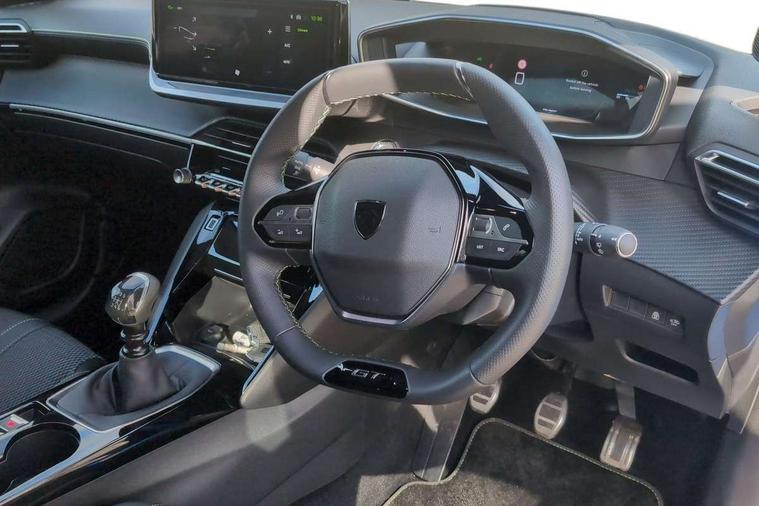 Bluetooth telephone facility, Drive mode select (Eco/Normal/Sport), Driver attention warning, Emergency call service, Exterior temperature indicator with ice warning, Front and rear parking sensors, Multi function trip computer, PEUGEOT i-Cockpit with 10" configurable 3D colour head up instrument panel, PEUGEOT i-Cockpit with 10" HD capacitive colour touchscreen, PEUGEOT i-Cockpit with compact steering wheel, PEUGEOT SOS and assistance, Push button start, Smart phone docking station, Smartphone 15W wireless charging plate, Speed limit recognition and recommendation, Start/stop system, Wireless mirror screen with apple carplay and android auto, 6 Speakers - 2 tweeters and 4 door speakers, DAB Digital radio, Peugeot i-connect infotainment system - 10in HD touchscreen, AM/FM/DAB digital radio, Wifi Mirroring, Bluetooth & 2 USB connection, USB-A socket (x1) and USB-C socket (x1) - rear, USB-C data and charge socket and USB-C charge socket in front, Voice recognition for radio, navigation and telephony features, 2 X Rear number plate lights, Acoustic windscreen, Antenna - Gloss Black 'fin' design, Automatic hazard light activation upon heavy brake application, Body coloured exterior door handles, Dark tinted rear side and tailgate windows, Diamond black rear spoiler (roof), Door sills protection with PEUGEOT signature lettering, Electric heated and power folding door mirrors with courtesy floor lighting, Frameless electrochrome interior rear view mirror, Full LED headlights with automatic height adjustment and PEUGEOT smartbeam assist, Gloss black B pillar, Gloss black door mirror shells, Gloss black front bumper grille with body colour accents, Gloss black rear cluster connecting strip, Gloss black wheel arch extensions, Gloss black window weatherstrips, GT model designation badging on C pillar, GT model designation badging on tailgate, Headlights left on audible warning, LED 3 claw horizontal rear lighting signature (with daylight function) and LED brake lights, indicators and reversing lights, LED daytime running lights with distinctive 3 claw signature, LED front indicators, LED third brake light, Model designation badges front and rear in basalt grey, One touch electric front/rear windows with pinch protection, Rear bumper with gloss black finish, Rear reversing lights, Rear side wing doors, Rear windscreen wiper triggered automatically in reverse gear, Roof spoiler, Tailgate with heated rear windscreen and wiper blade, Variable front intermittent wipers, 1/3 to 2/3 split folding rear seats, 12V socket, 3 seat bench in 2nd row, 8 Colour personalisable ambient lighting, Adamite green contrast stitching to front and rear armrest, front centre console, dashboard facia, Aluminium pedals, Automatic mono zone climate control air condition, Boot lighting, Driver and front passenger dynamic seats, Driver and front passenger seat manual adjustment in longitudinal and back rest angle, Driver and front passenger seat mechanical height adjustment, Driver and passenger sun visors, front footwells and central storage with LED lighting, Electric power steering with reach and rake adjustable steering column, Front centre armrest with storage compartment, Front LED interior light, front LED reading spotlights(x2), rear LED reading spotlight(x2), Gear shift indicator, High centre console with 2 cup holders, Luxury carpet mats, Map pockets on the backs of the front seats, Multi function full grain perforated leather steering wheel with adamite green stitch detail and 'GT' emblem, Passenger seat height adjuster, Piano keys gloss black plated toggle switches to access main functions of the vehicle, Rear centre headrest, Roof lining - Mistral black, Seatbelt unfastened on the move audible and visual alert for front and rear seats, Single front passenger seat, Visibility pack - 208, 2x Isofix child seat fitting on outer rear seats, 3 rear 3 point seatbelts, ABS (Anti-lock Braking System) with EBD (Electronic Brakeforce Distribution) and EBA (Emergency Braking Assistance), Active safety brake with night function/cyclists/pedestrians, Child locking functionality on rear doors, Driver and front passenger airbag with passenger airbag deactivation, Driver/front passenger side airbags, Electric parking brake, ESP with Hill Assist, Front and rear curtain airbags, Front and rear disc brakes, Front optimised safety headrests and 3 x rear retractable headrests with height adjustable, Front three point retractable seatbelts with force limiters, Remote plip(x2) for locking, unlocking, includes emergency key blade, Tyre pressure monitoring system, Acoustic vehicle alert system (AVAS), Alarm - Connected, volumetric , perimetric, anti lift sensor, Automatic door locking when moving off, Deadlock, Electronic code immobiliser, Peugeot Open and Go System, Remote central locking, Carbon effect Dashboard, front and rear door panel finish, 17" Yanaka two tone diamond cut alloy wheels wheels includes gloss black inserts, Space saver spare wheel,