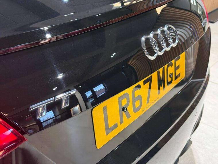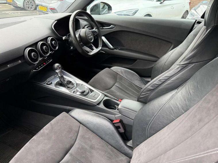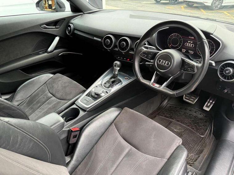 Audi drive select, Audi virtual cockpit - 12.3" high-resolution LCD display with fully customisable instrument cluster, Cruise control + speed limiter, MMI touch panel, Mobile phone preparation with bluetooth interface, Progressive power assisted steering, Service interval indicator, Audi music interface, Auxiliary input socket, Bluetooth audio streaming, DAB Digital radio, MMI Radio with CD player and SD/XC card slot, Auto headlight range control, Black door mirrors, Body colour bumpers, Electric front windows, Front fog lights, Green tinted heat insulating glass, High gloss black front grille, LED daytime running lights, LED rear lights, Matt black radiator grille and number plate holder, Privacy glass, Rear diffuser, Retractable rear boot spoiler, S Line body styling, Sunband for windscreen, 3 spoke leather multi-function sport steering wheel including paddle shift, Aluminium door sill trims, Black headlining, Electric lumbar support, Extended aluminium look with stainless steel pedals, Front centre armrest, Front head restraints, Front passenger seat isofix location point, Height/reach adjust steering wheel, ISOFIX on outer rear seats, Split folding rear seat, Top tether anchor plate for isofix child seat, Auto dimming rear view mirror with light and rain sensors pack - TT, Non smoking pack - TT/TT RS, 3 point front seat belts, ABS, ASR traction control, Curtain airbags, Driver/Front Passenger airbags, EDL traction control, Electromechanical parking brake, ESP, First aid kit, Front passenger airbag deactivation, Front side airbags, Head airbags, Seatbelt warning, Tyre pressure warning, Warning triangle, Anti theft alarm, Immobiliser, Keyless start, Locking wheel bolts, Remote central locking, Matt brushed aluminium inlays, Tyre repair kit,