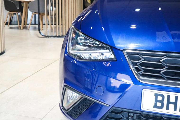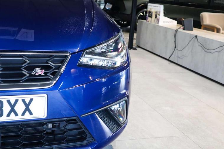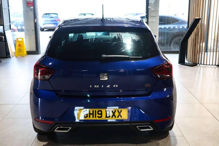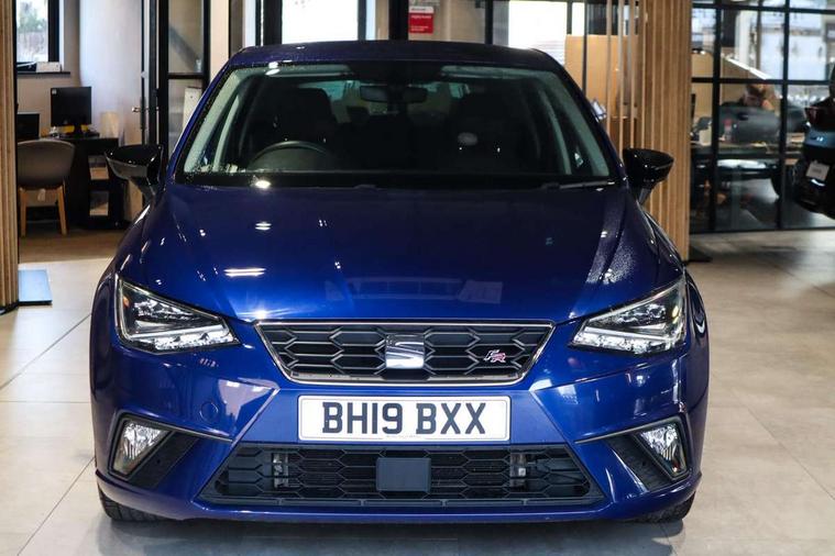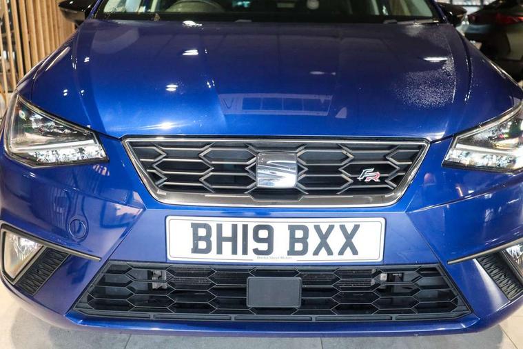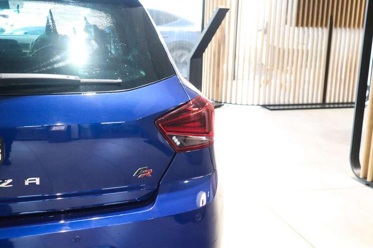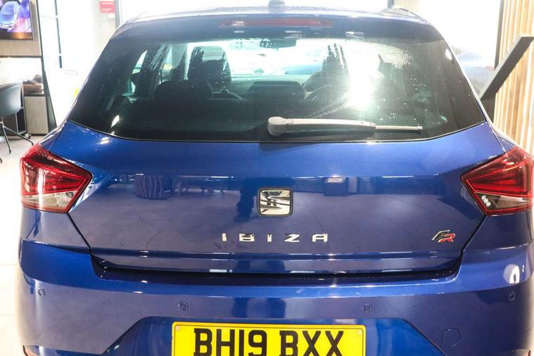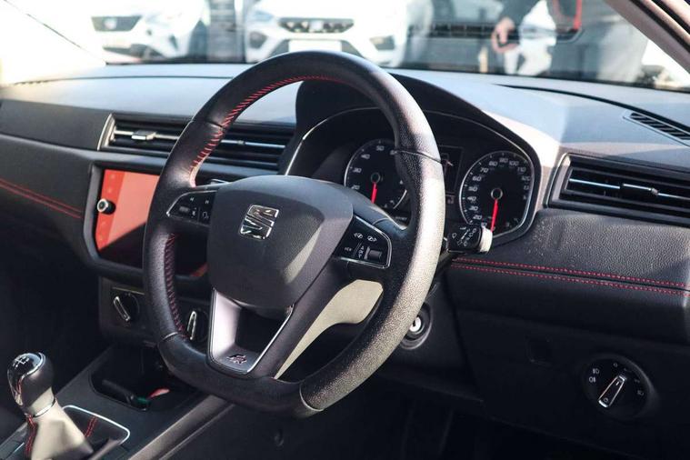 'Lights On' Reminder warning buzzer, Bluetooth Handsfree Phone Connection, Cruise control, Digital clock, Full Link Smartphone Integration with Mirror Link, Apple Car Play, Google Android Auto, Low fuel warning light, Outside temperature gauge, Power Steering, Satellite navigation system with 3D mapping, 8" touch screen, voice control and additional USB port, SEAT Drive profile, SEAT logo boot release, Trip computer, Sports suspension, 6 speakers, Auxiliary input socket, CD player, Digital Audio Broadcast (DAB) Tuner, Radio/MP3 player, SD card slot, SEAT USB media cable, Steering wheel mounted controls, USB port, Anti theft roof antenna, Auto dimming rear view mirror, Automatic headlights, Automatic rain sensing wipers, Body colour bumpers, Body colour door handles, Brilliant black door mirrors, Chrome front grille frame, Chrome grille, Coming/leaving home lighting function, Cornering front fog lights, Dark tinted rear windows, Electric folding door mirrors, Electric front windows, Electric headlight adjustment, Electrically adjustable and heated door mirrors, Exclusive FR rear bumper, Full LED headlights, LED daytime running lights, LED tail lights, Rear fog lights, Twin exhaust pipes, 3 rear headrests, 60/40 split folding rear seat, Air conditioning, Door and steering wheel ice metal decorative inserts, Driver's sunvisor with ticket holder/vanity mirror, Dust/pollen filter, Flat bottomed perforated leather steering wheel with red stitching and FR logo, Front courtesy lights, Front cupholders x 2, Front reading lights, Gear shift indicator, Glovebox, Height adjustable driver's seat, Height adjustable front/rear head restraints, Height adjustable passenger seat, Height/reach adjust steering wheel, Illuminated boot, Instrument lighting with brightness control, Leather dashboard, Leather handbrake, Multi-colour ambient interior lighting, Nora cloth upholstery, Passenger sunvisor, Rear top tether child seat ISOFIX attachment, Sports seats, Full LED headlight pack - Ibiza, 3 point seatbelts on all 3 rear seats, ABS, Active front headrests, Child locks on rear doors, Curtain airbags, Driver/Front Passenger airbags, ESP+EBA, Front assist (AEB), Front passenger airbag deactivation, Front side airbags, Hill hold control, Multi-Collision braking, Seatbelt warning, Tiredness recognition system, Tyre pressure monitoring system, Electronic engine immobiliser, Locking wheel bolts, Remote central locking + deadlocks, Volumetric alarm with back up horn, 17" Dynamic alloy wheels,