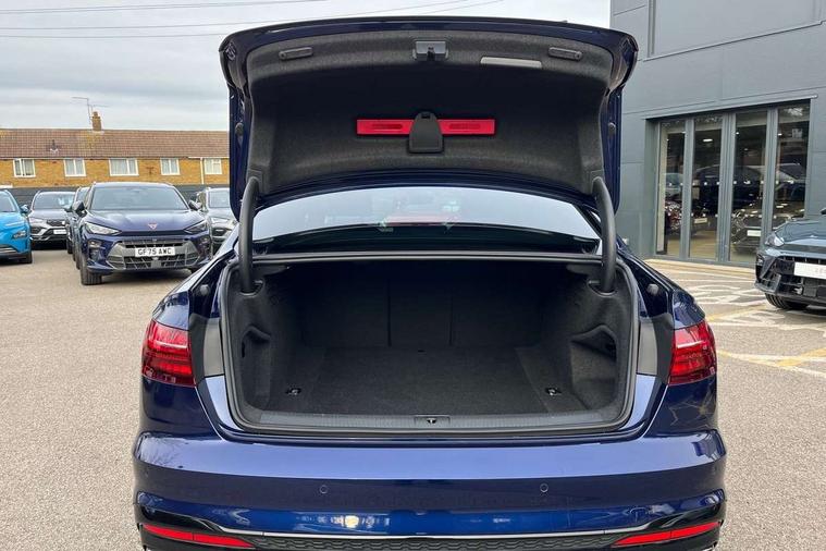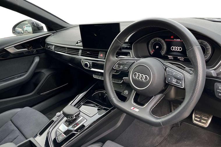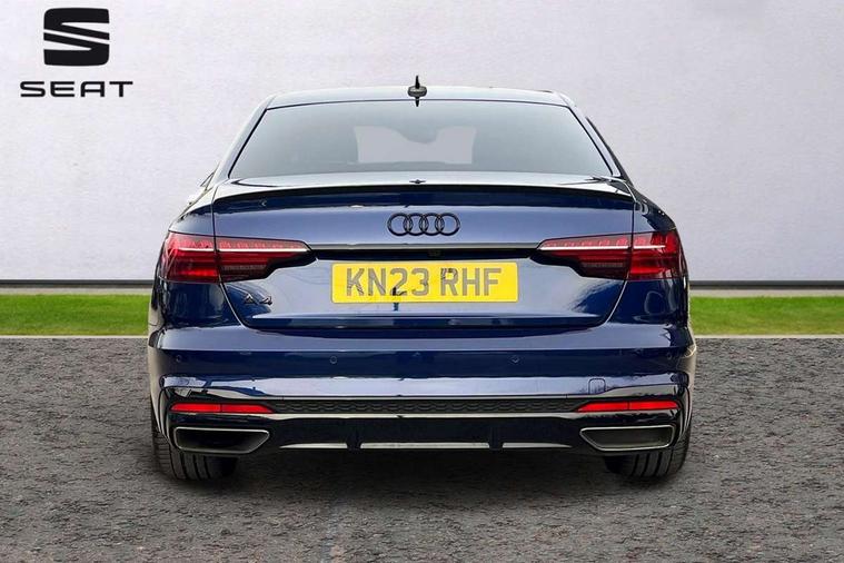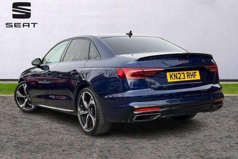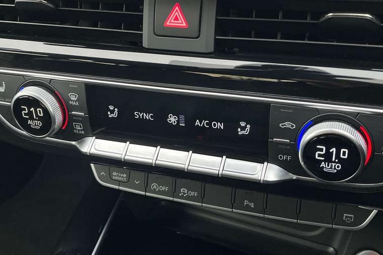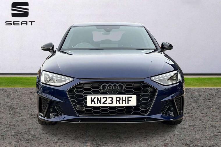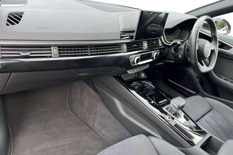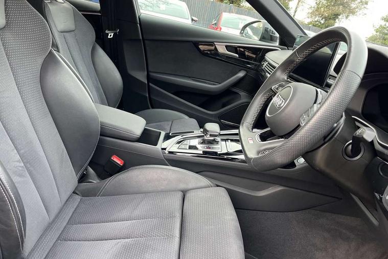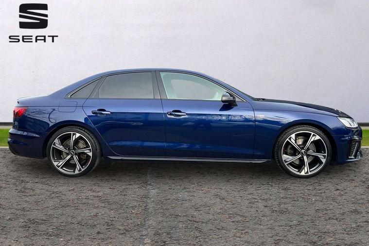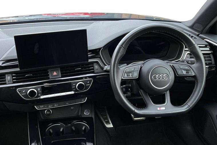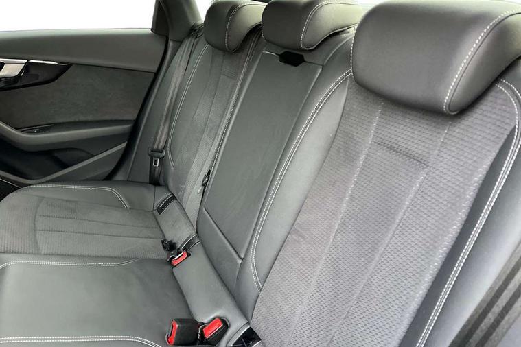 Audi connect safety and service (e-call), Audi drive select, Audi smartphone interface, Audi virtual cockpit, Automatic start-stop system with coasting functionality and efficiency programme, Bluetooth interface, Camera based traffic sign recognition, Electric boot lid release, Electromechanical power steering, Email, calendar and text messages displayed via MMI, Front and rear parking sensors, Lane departure warning, MMI Navigation plus with MMI touch includes 10.1" high resolution colour MMI display, 3D map, Rear view camera, Voice control system, Sports suspension lowered by 23mm, 2 USB charging ports, 8 passive loudspeakers, DAB digital radio reception, Audi beam uses LEDs to project the audi logo onto the ground as you exit your A4, Auto dimming rear view mirror, Black Audi rings and black badging (model name in black badging, no engine badging), Body colour door handles, Body colour front spoiler lip, Body colour side sill trim, Electrically folding auto dimming/adjustable/heated door mirrors with LED side indicators and kerb view function for passenger side, Exhaust tailpipes in high dark chrome, Grained matt black side air inlets with matt aluminium silver inlay, High beam assistant, High gloss black B pillar trims and triangular rear door trim, LED headlights with LED rear lights + dynamic rear indicators + headlight adjustment and high beam, turning light + LED daytime running lights, LED third brake light, Privacy glass, Rain and light sensors, Rear boot, Rear diffuser in matt black with trim strip in matt aluminium silver, Rear side wing doors, Sport front and rear bumpers with side skirts, Variable intermittent front wash/wipe, Windscreen with acoustic glazing, 4 way electric lumbar support for driver and front passenger, 40/20/40 split folding 3 rear seat bench in 3 parts with rear centre armrest, Black cloth headlining, Black perforated leather gearknob, Contrast stitching on seats, steering wheel and gear lever gaiter, Deluxe 3 zone electronic climate control, Door sill trims with aluminium inlay, Front and rear head restraints, Front centre armrest, Heated front seats, Illuminated door sill trims with S logo, ISOFIX child seat mounting and top tether, Manual seat adjustment, Single front passenger seat, Stainless steel pedals and foot rest, Tool kit, Black styling pack - A4 Saloon, LED Interior light pack - A4/S4, 3 rear seatbelts, 6 airbags - Driver, front passenger, curtain and side windows, Attention and drowsiness assist, Electronic Stabilisation Control (ESC) including ABS, ASR and EDL, Hill hold assist, Multi collision brake assist, Pop-up bonnet for pedestrian protection, Pre sense city, Rear door child safety locks, Seatbelt monitoring, Warning triangle and first aid kit, Anti theft alarm, Anti theft wheel bolts, Central locking, Keyless Go, Piano black finish inlay, Tyre repair kit,